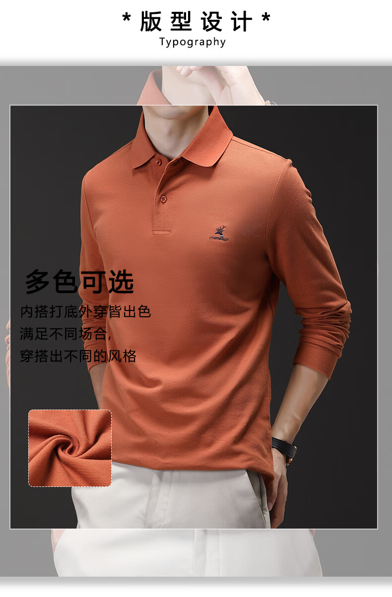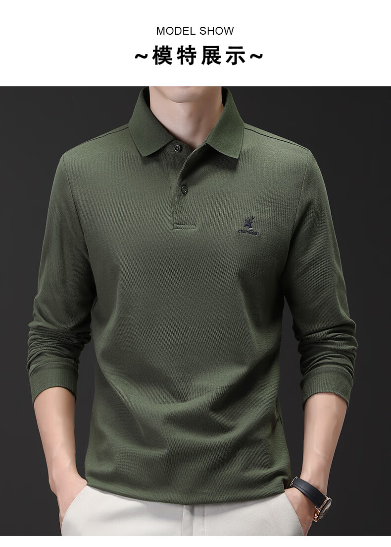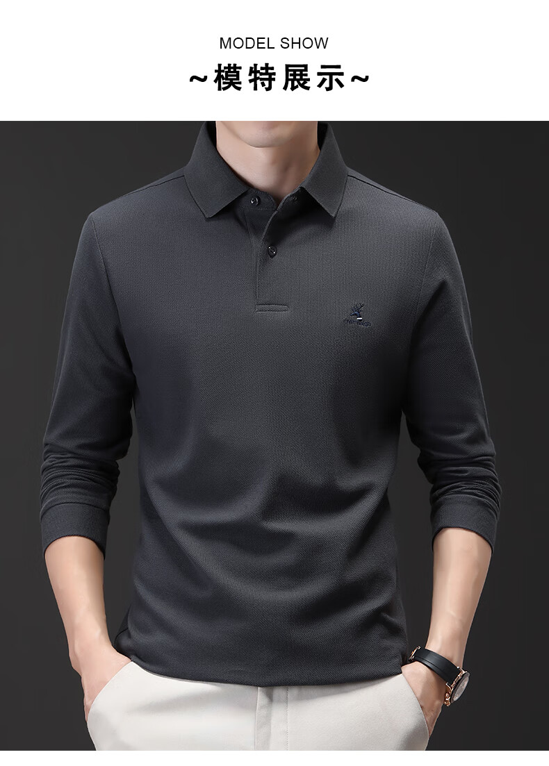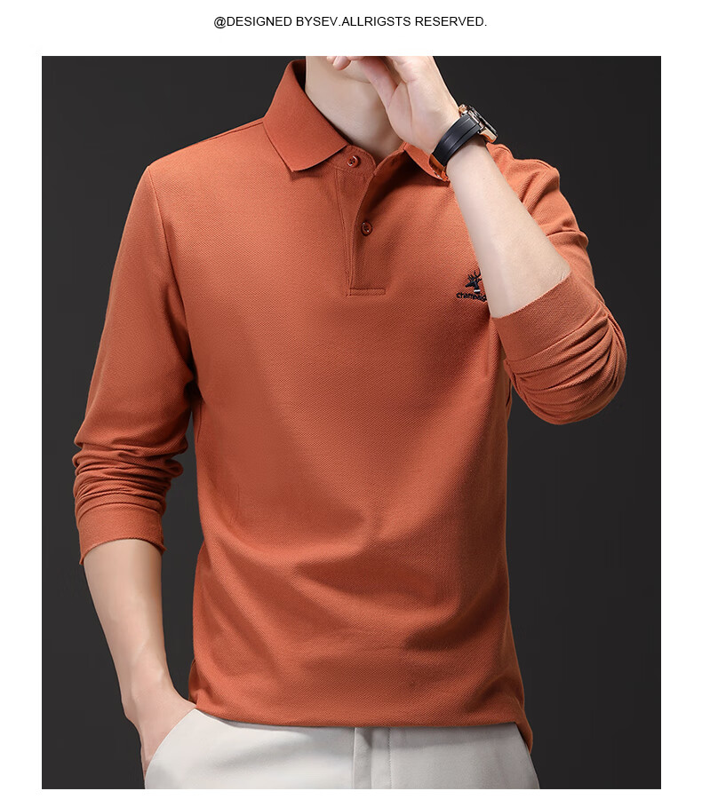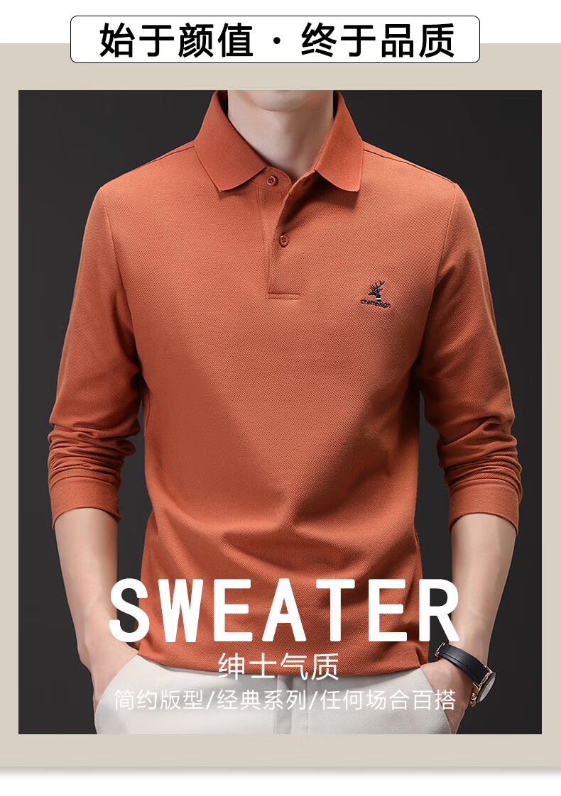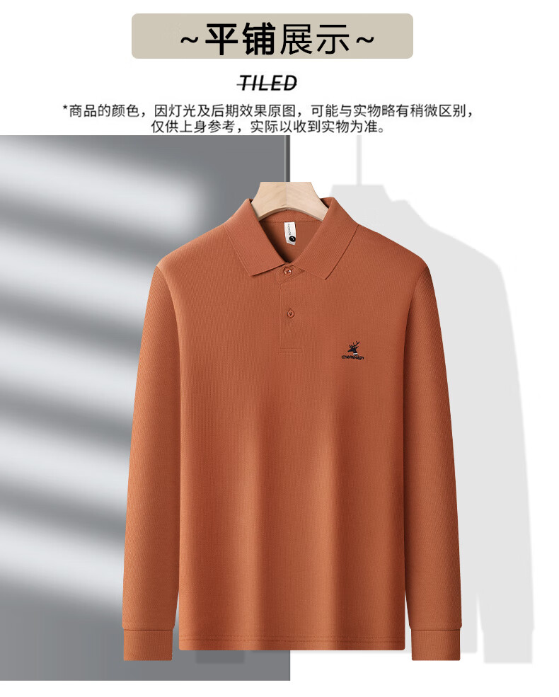 罗蒙(ROMON)2024秋季新款纯棉长袖t恤男翻领加绒保暖上衣男装体恤打底polo衫 24549-咖色 XL 【建议140-160斤】