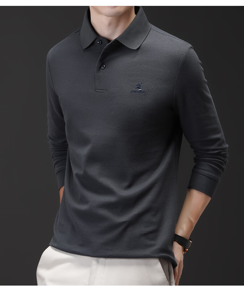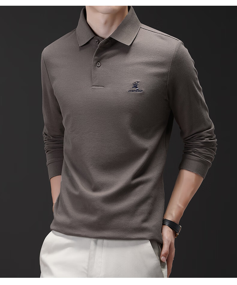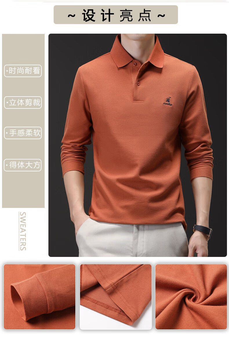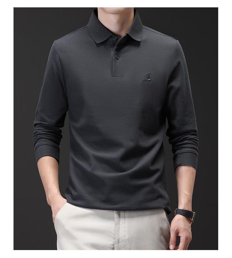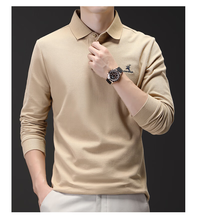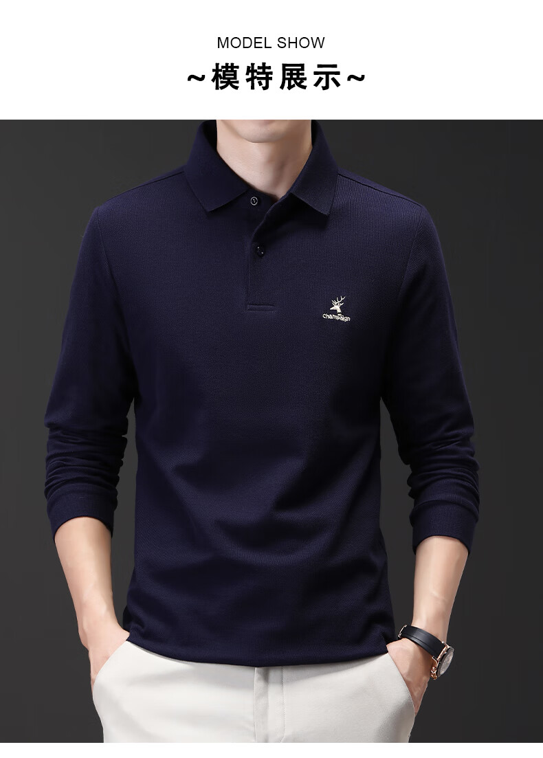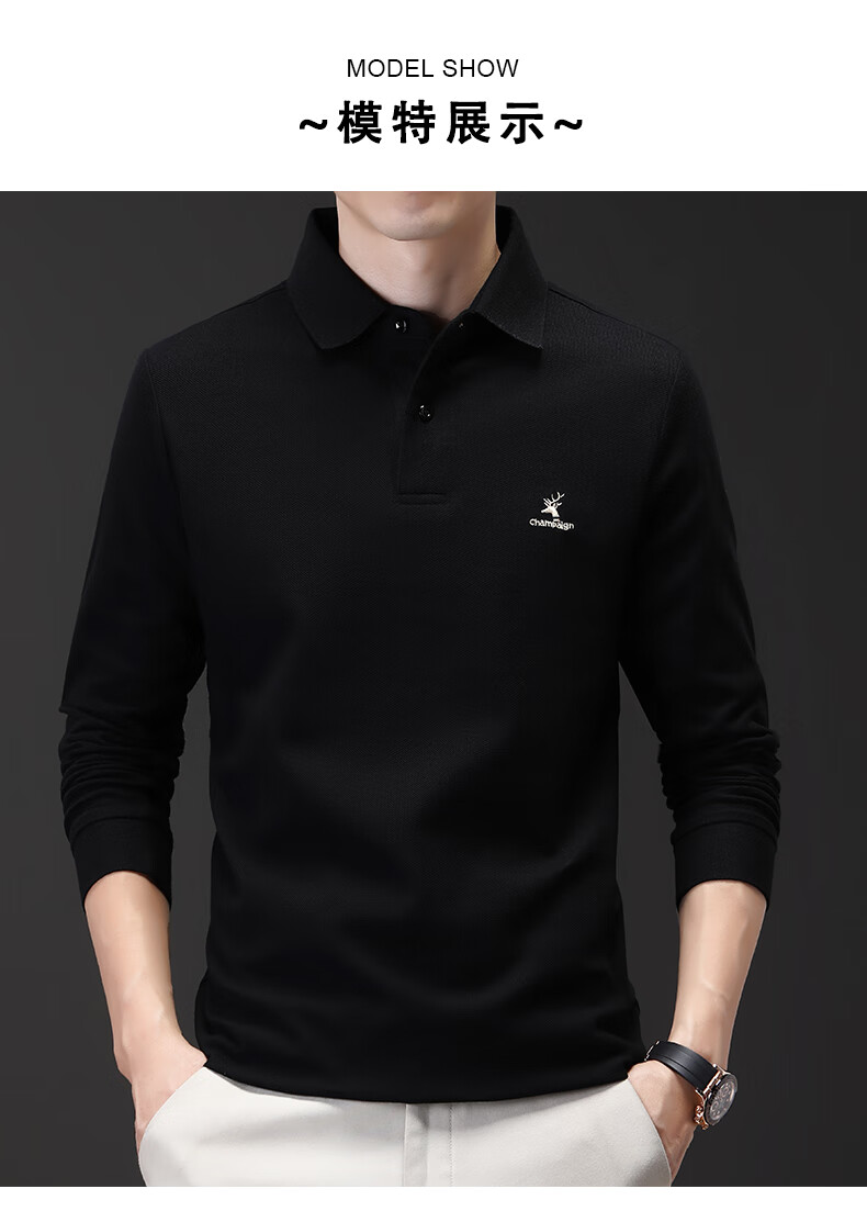 罗蒙(ROMON)2024秋季新款纯棉长袖t恤男翻领加绒保暖上衣男装体恤打底polo衫 24549-咖色 XL 【建议140-160斤】