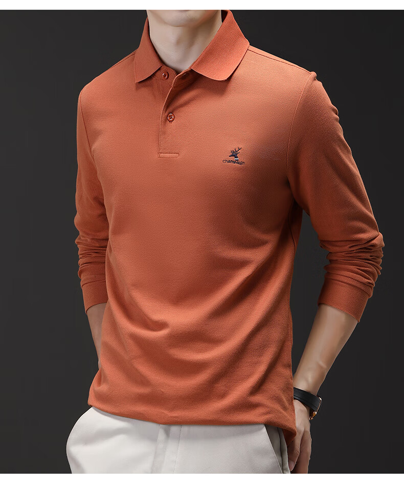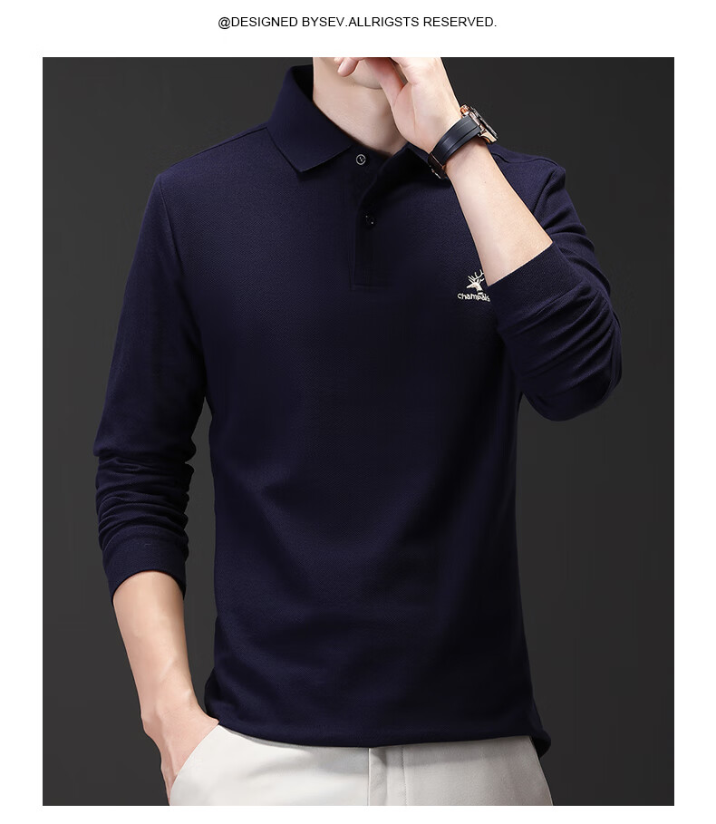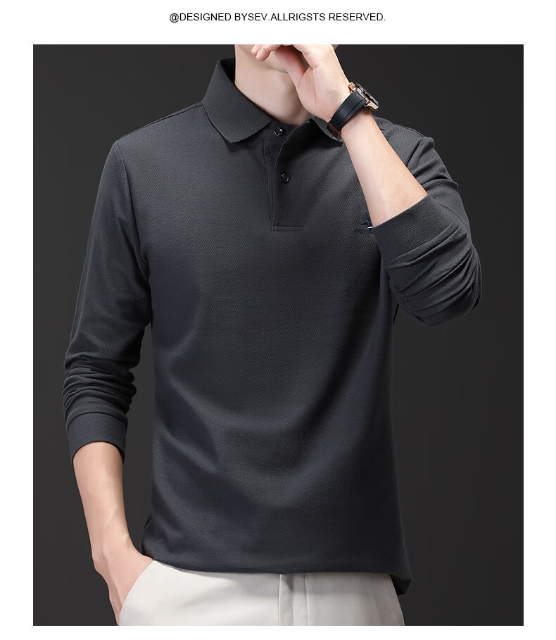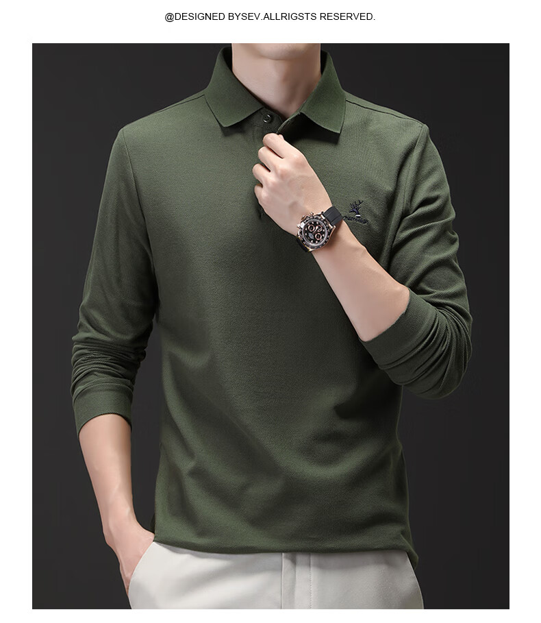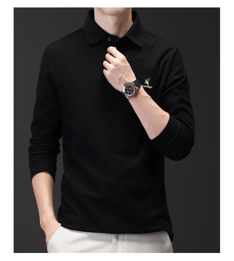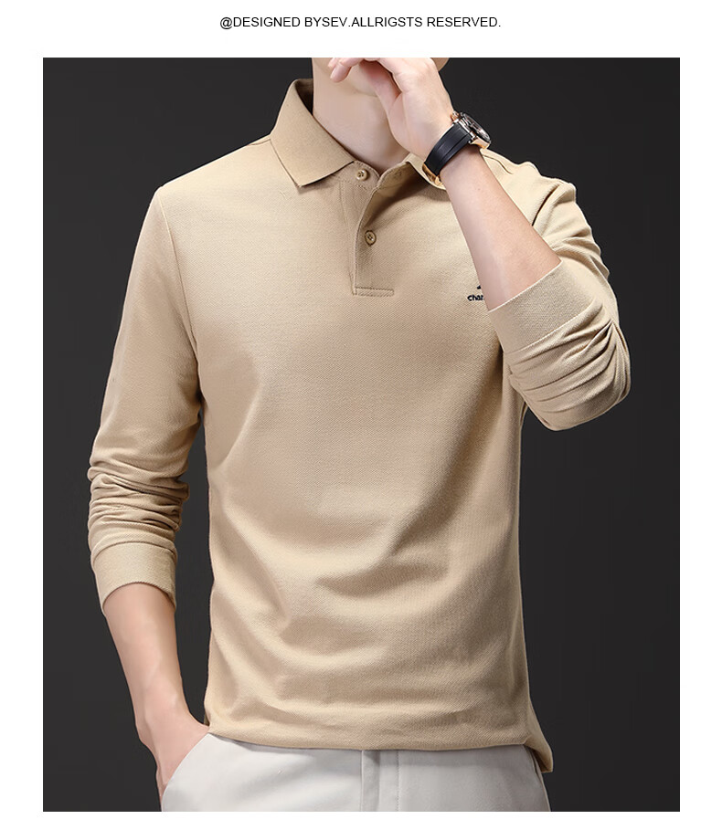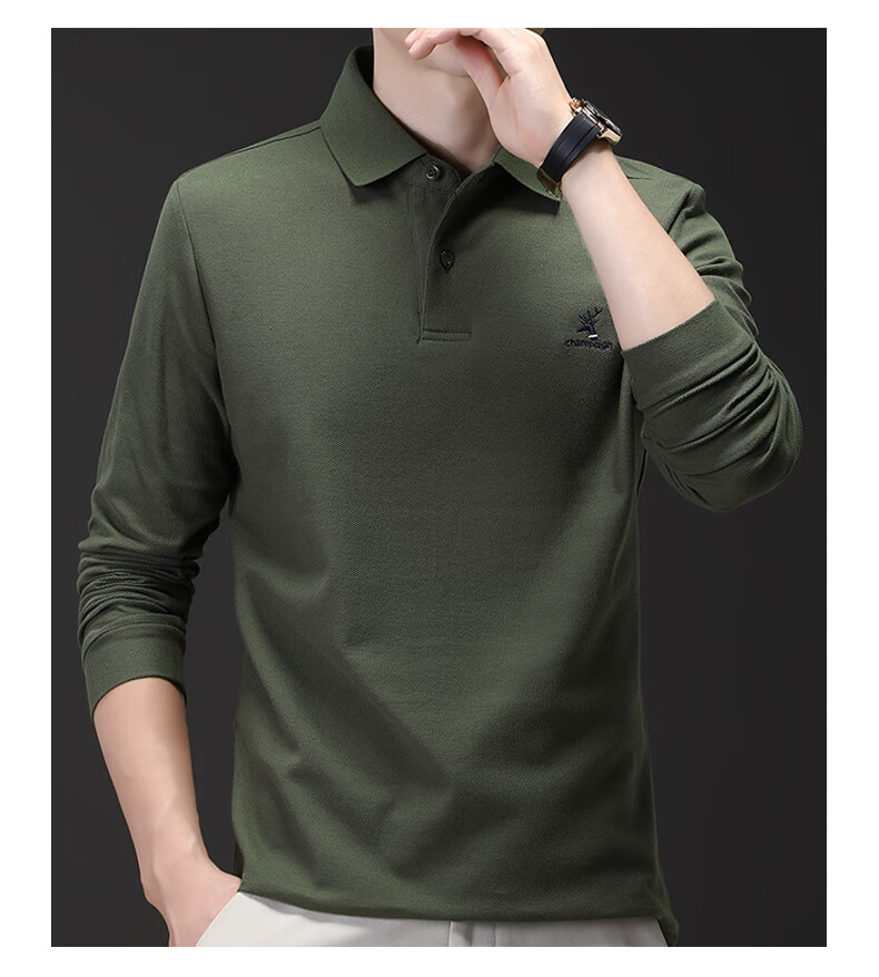罗蒙(ROMON)2024秋季新款纯棉长袖t恤男翻领加绒保暖上衣男装体恤打底polo衫 24549-咖色 XL 【建议140-160斤】