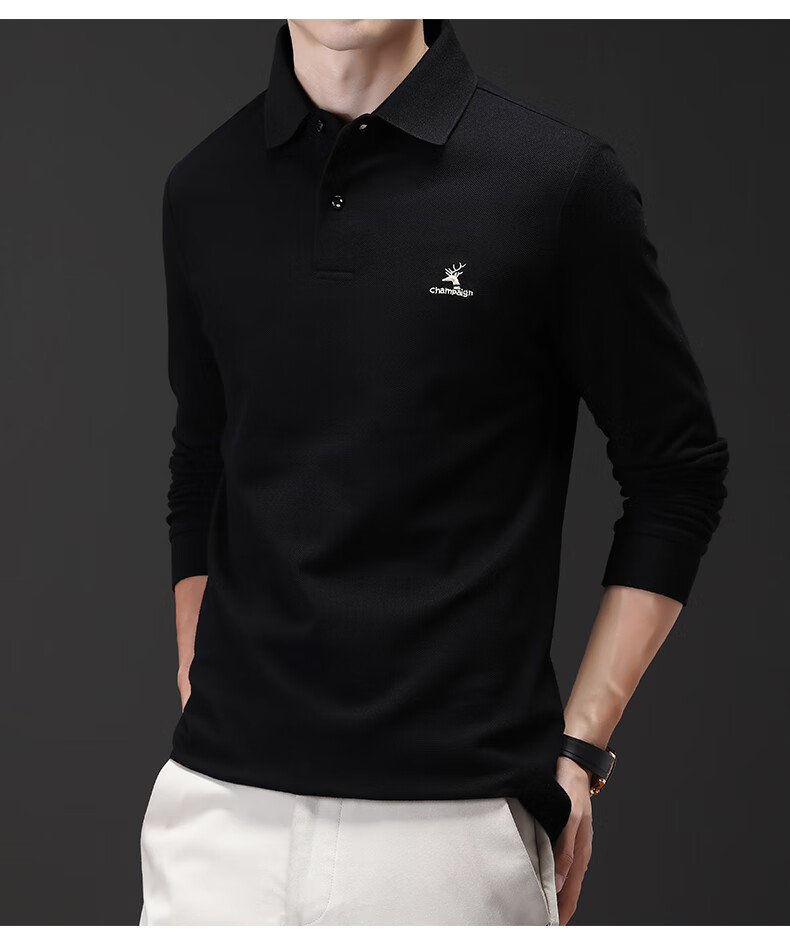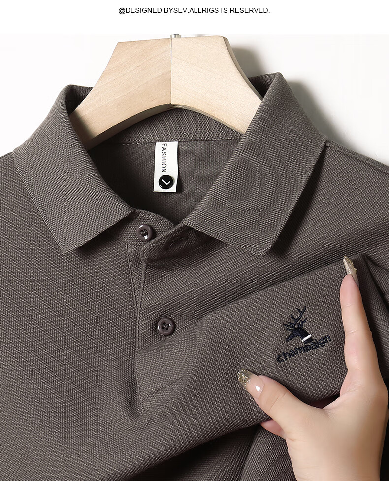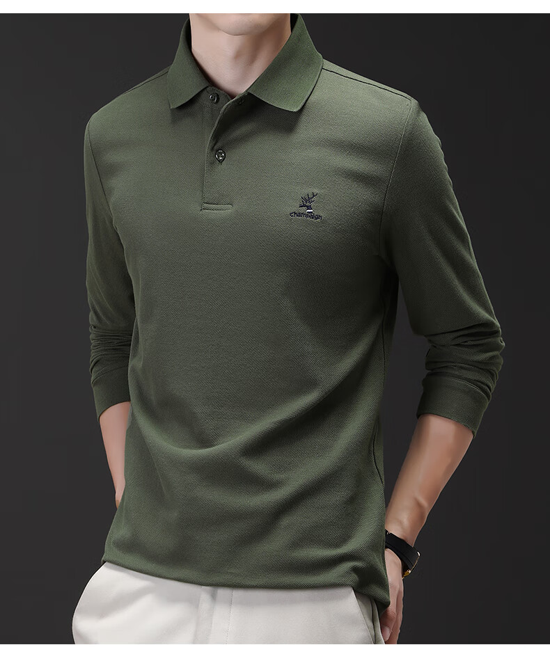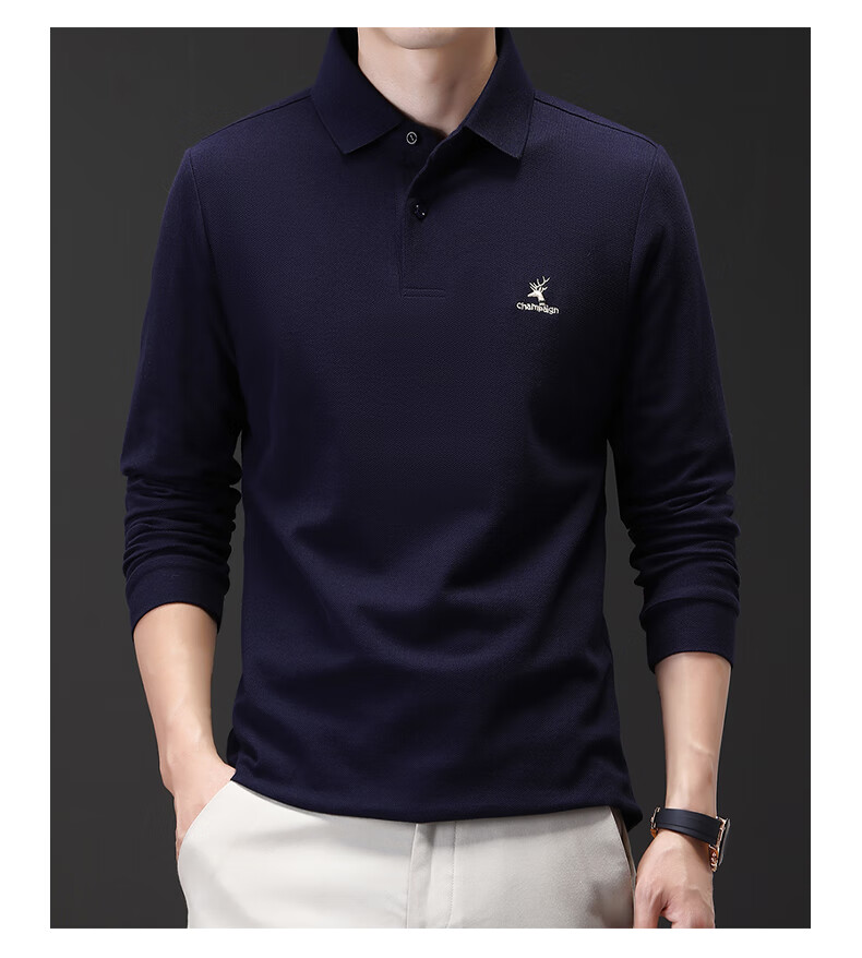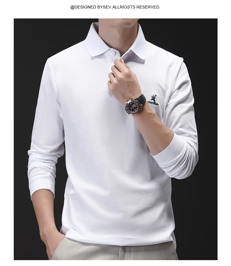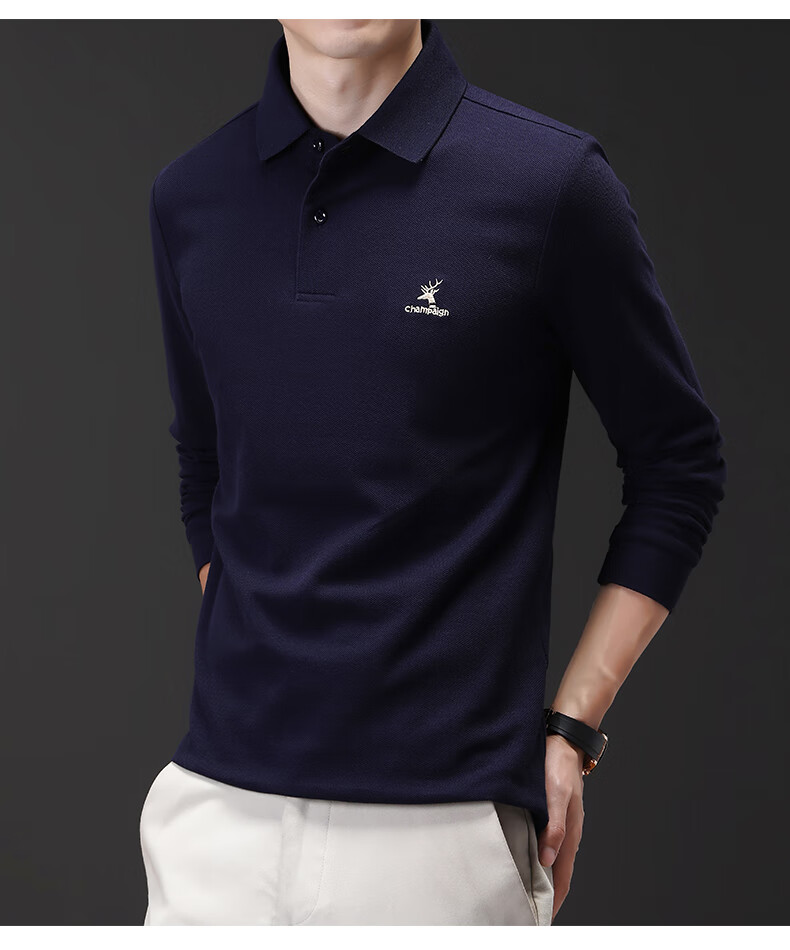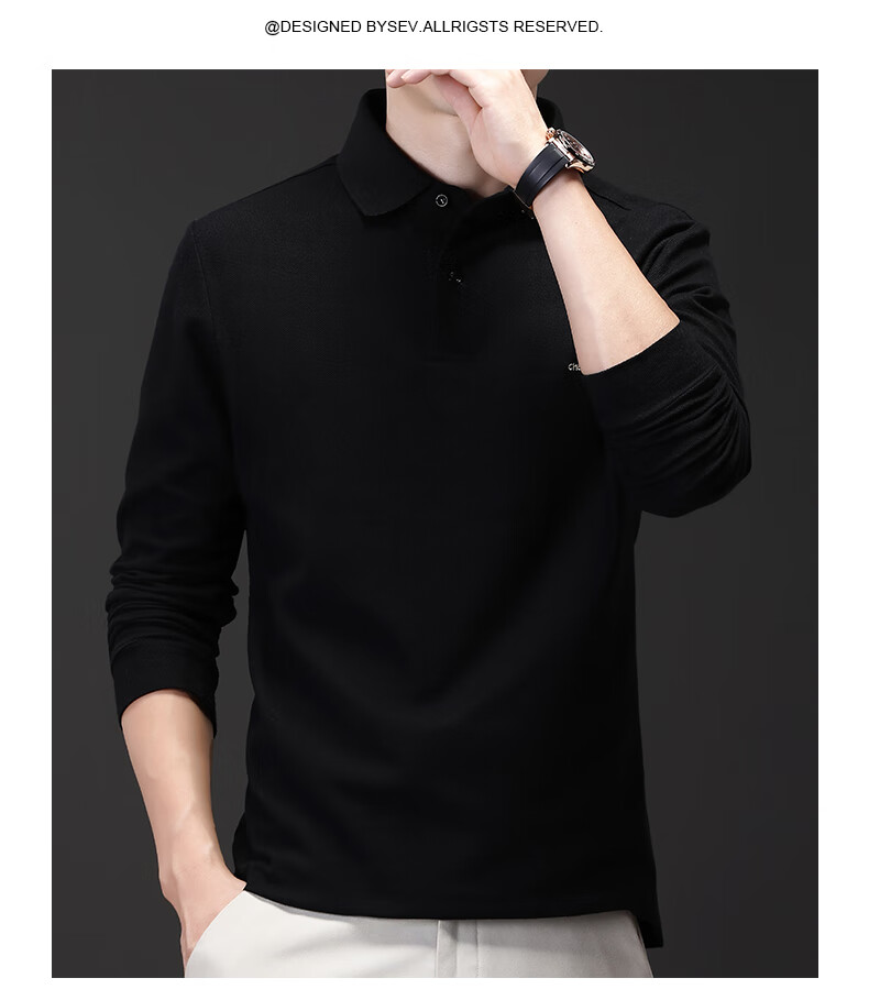 罗蒙(ROMON)2024秋季新款纯棉长袖t恤男翻领加绒保暖上衣男装体恤打底polo衫 24549-咖色 XL 【建议140-160斤】