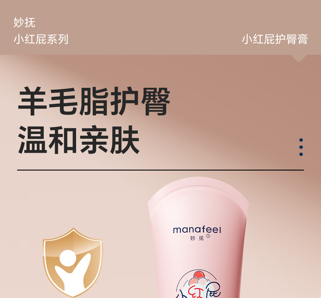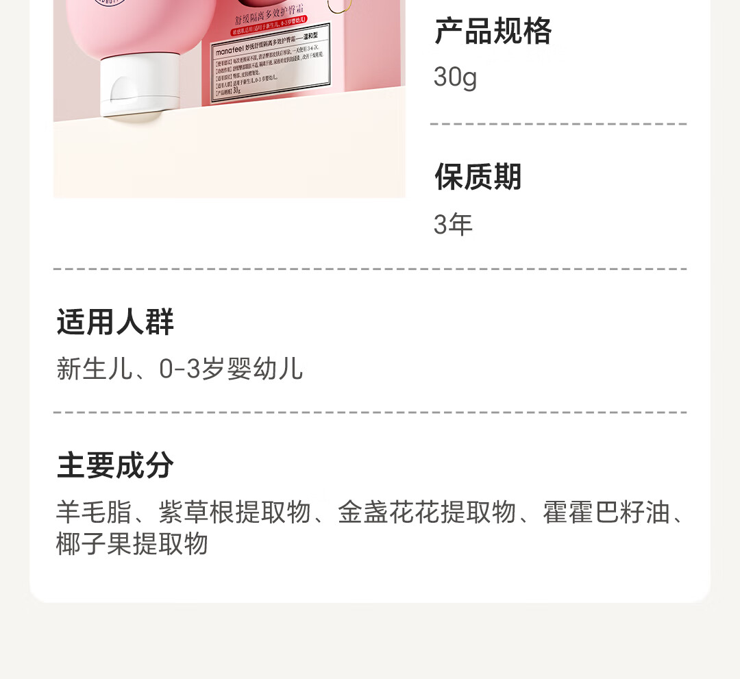 妙抚(MANAFEEL)湿湿乐婴儿护臀膏新生儿红屁屁乐专用宝宝护臀霜防小红屁股pp霜 【羊毛脂配方】护臀霜128g