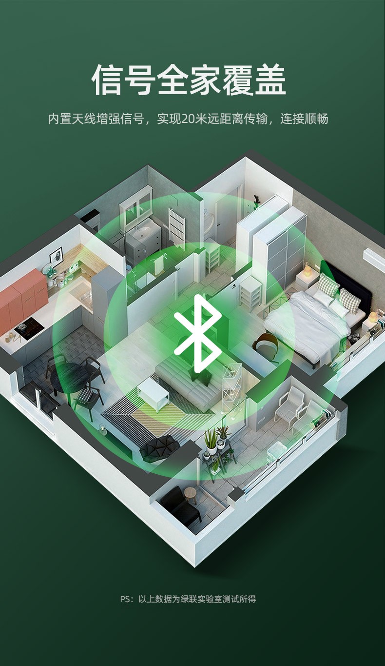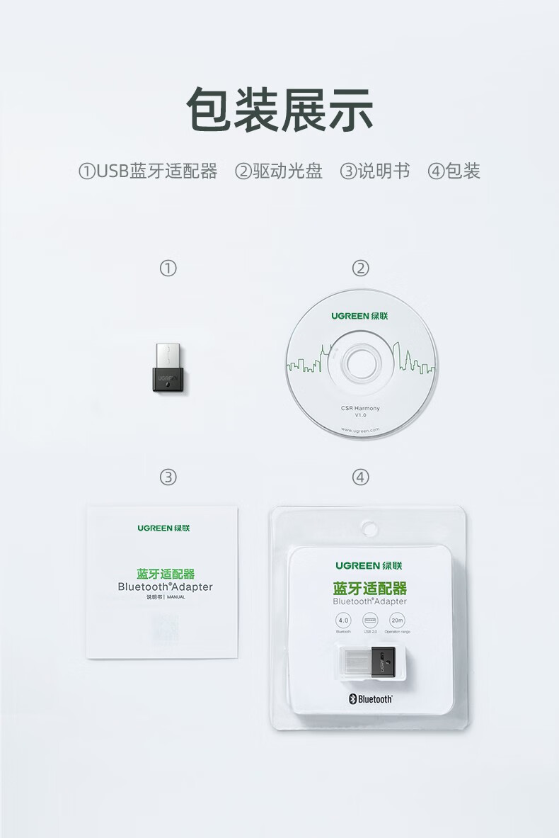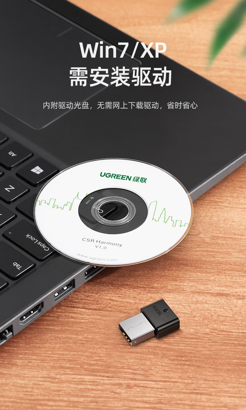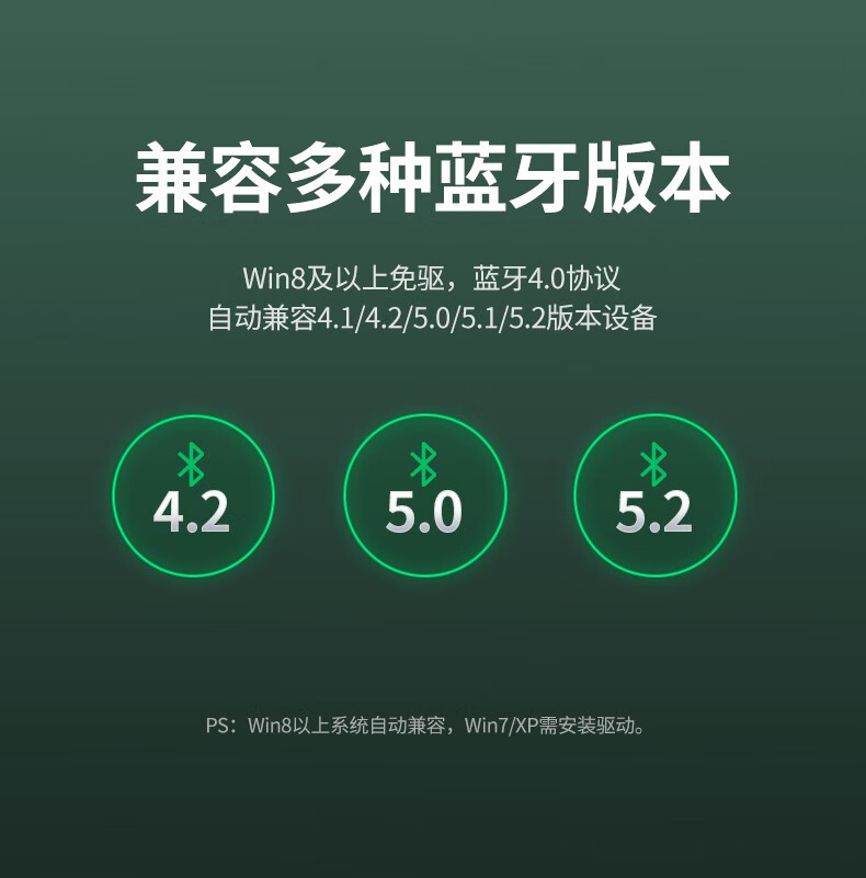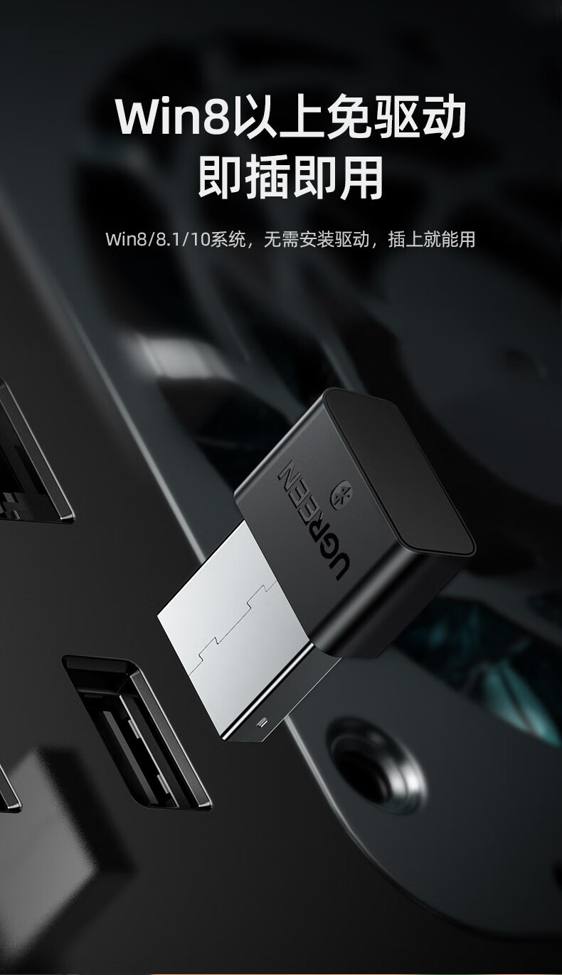 绿联【精选直发】 USB蓝牙适配器5.3发射器兼容5.0蓝牙音频接收器 PC 【蓝牙5.0】黑色简约款 传输距离20M