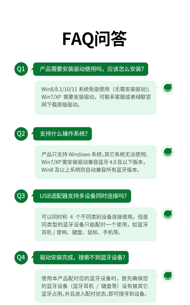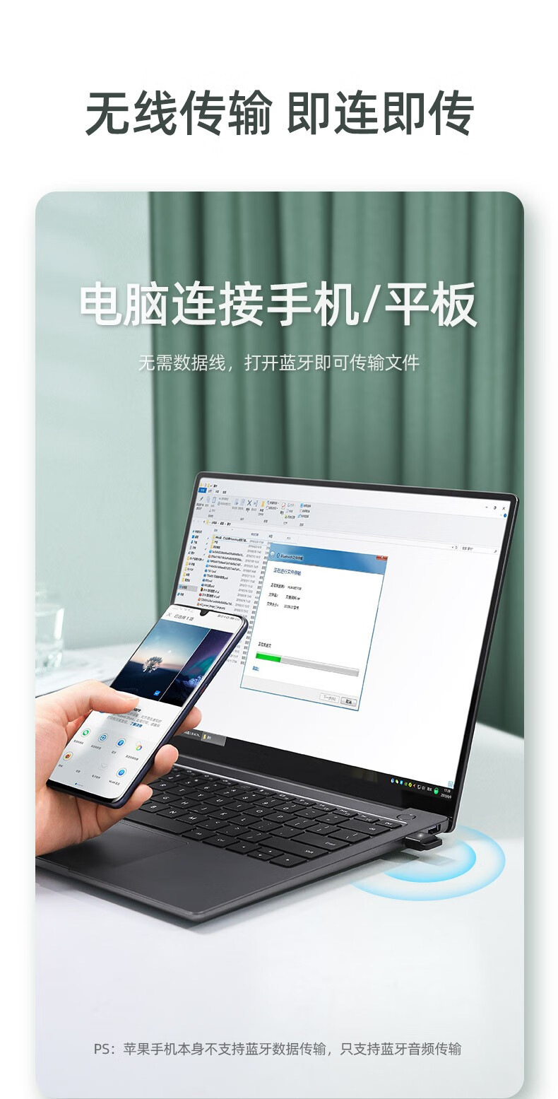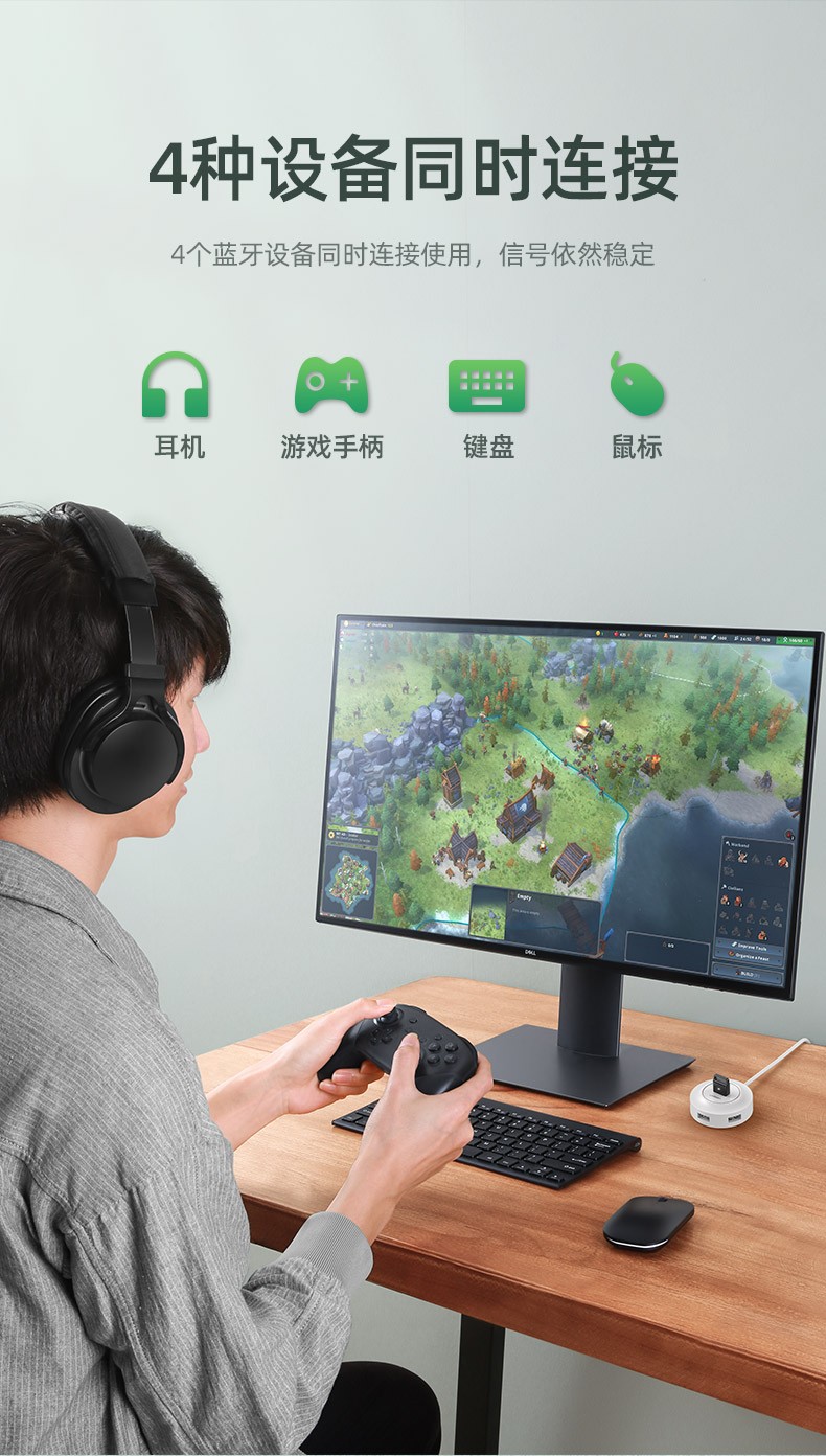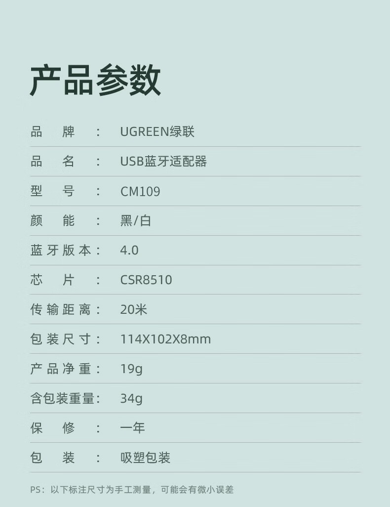 绿联【精选直发】 USB蓝牙适配器5.3发射器兼容5.0蓝牙音频接收器 PC 【蓝牙5.0】黑色简约款 传输距离20M