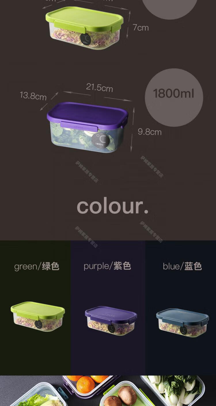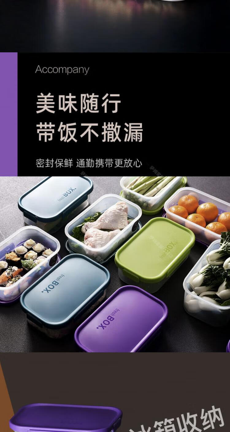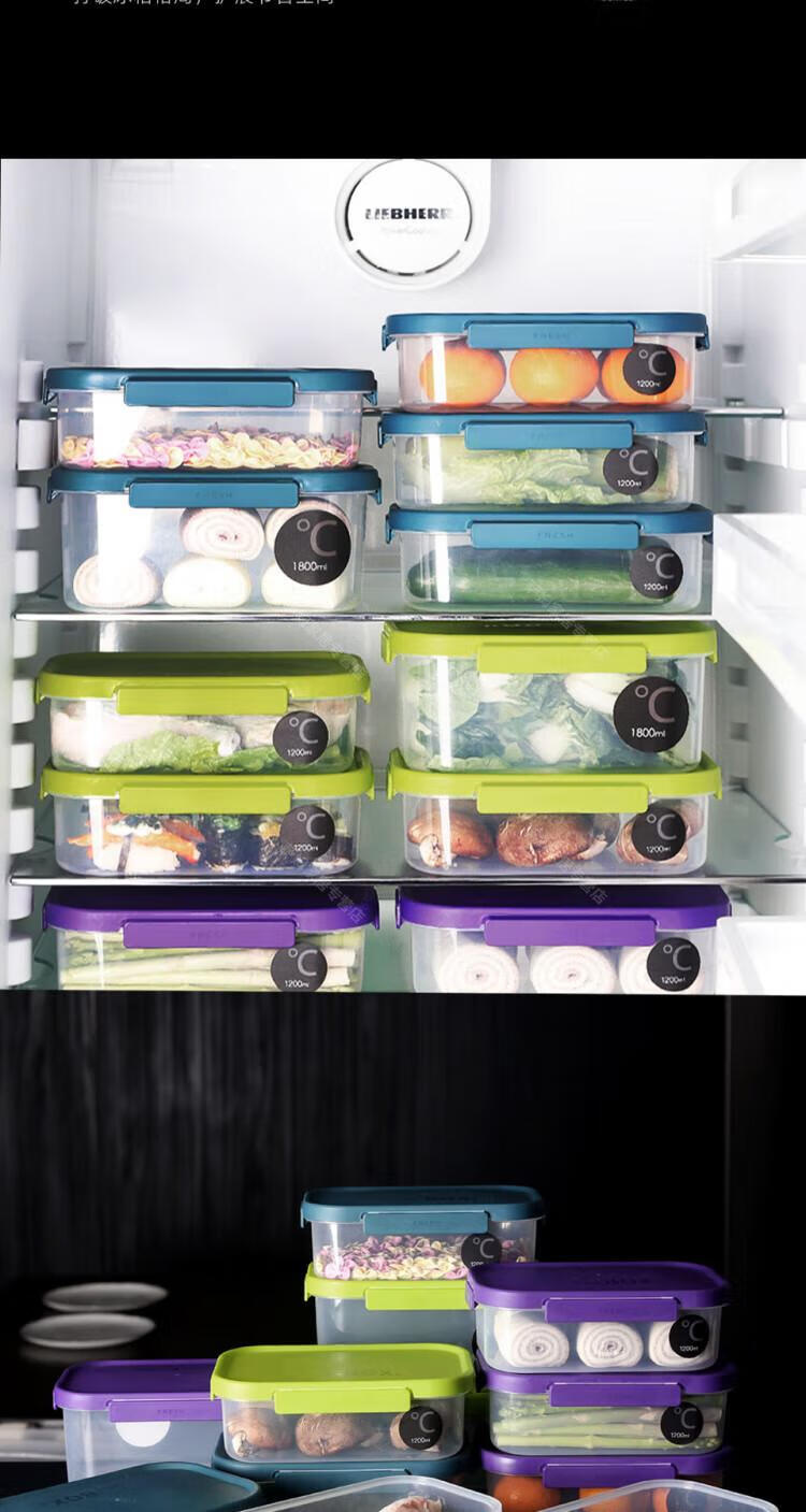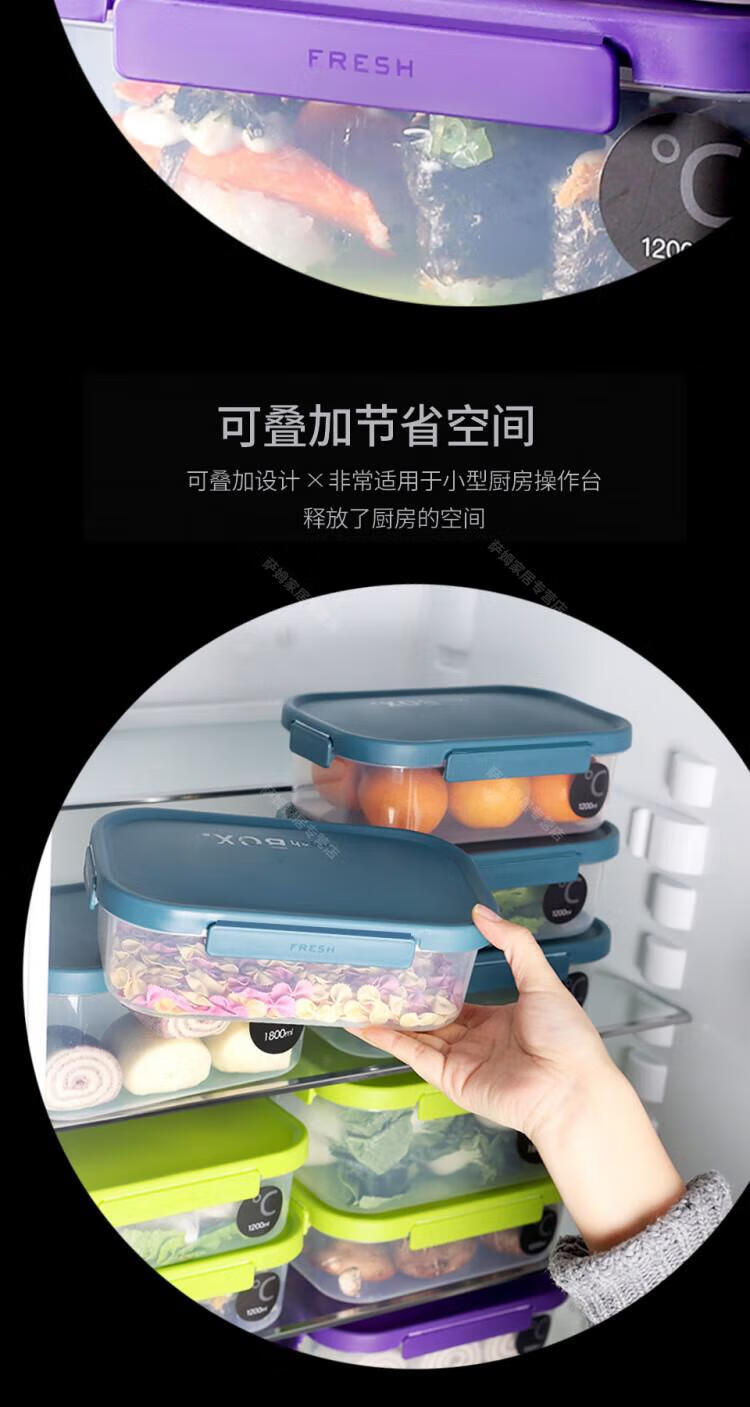 WCZ德国冰箱收纳盒便当食品级密封保鲜盒饭盒冷冻专用厨房水果鸡蛋储 1800ml(紫色)4个