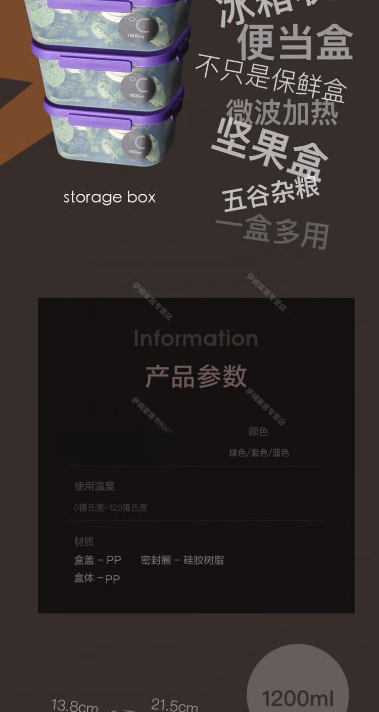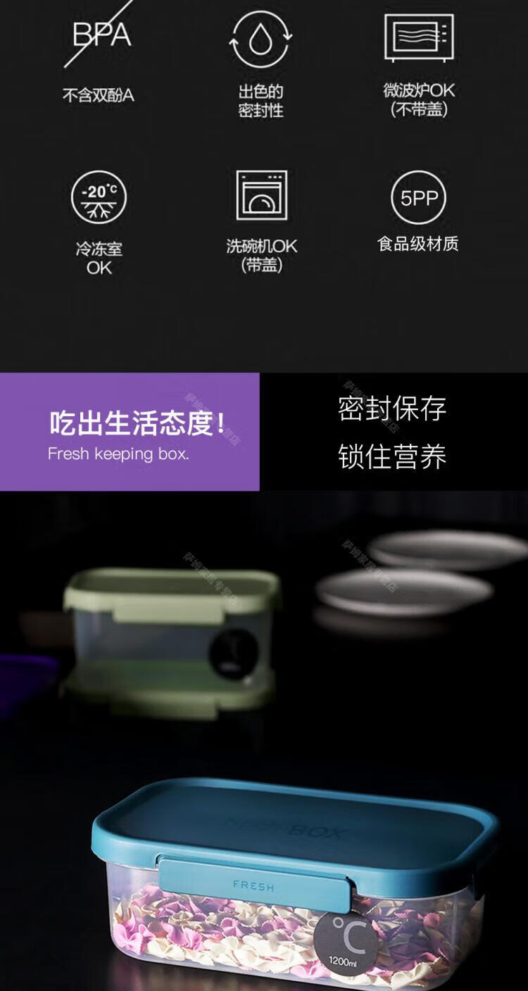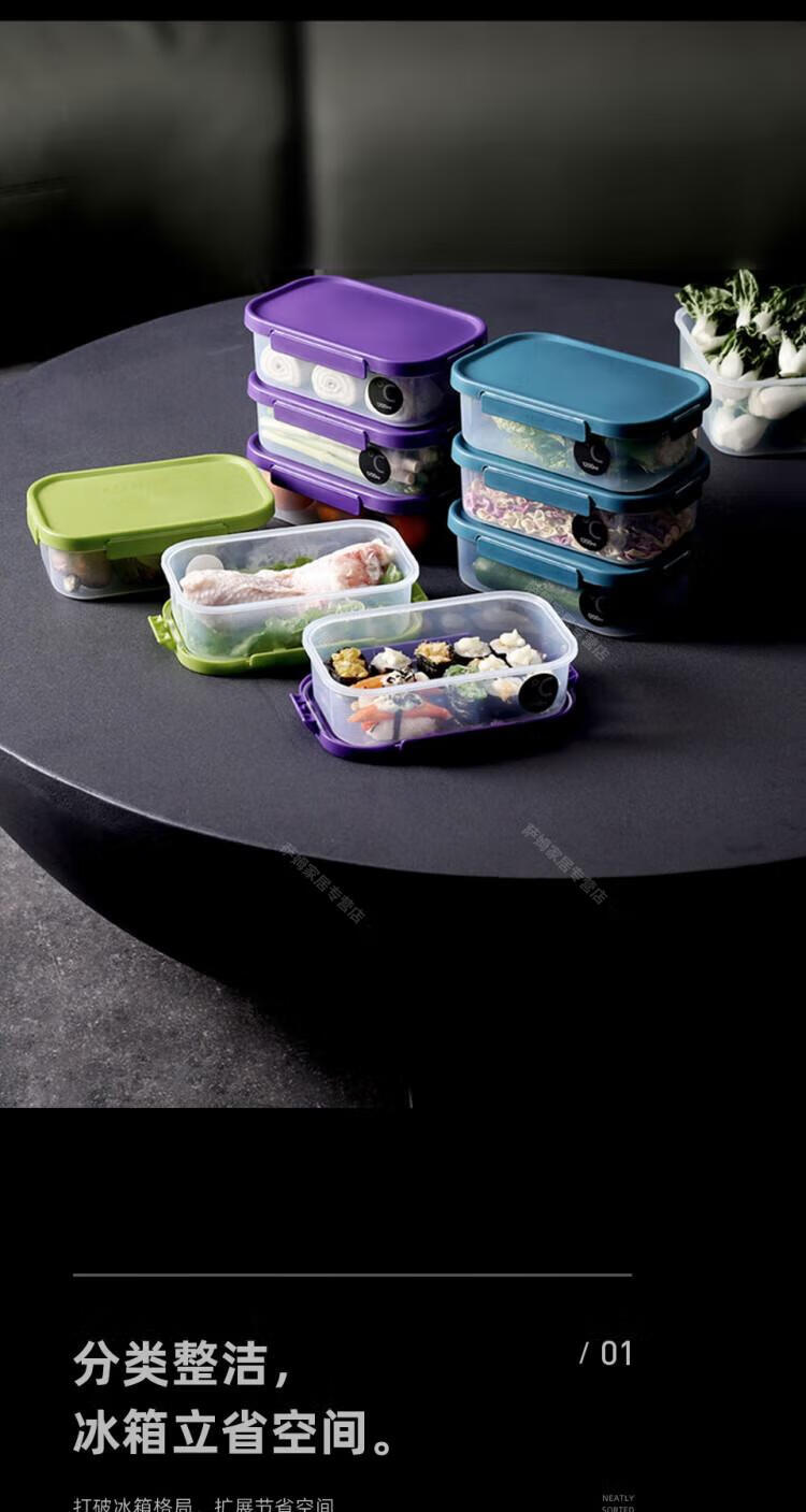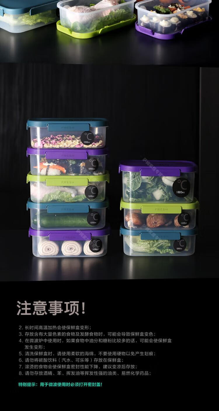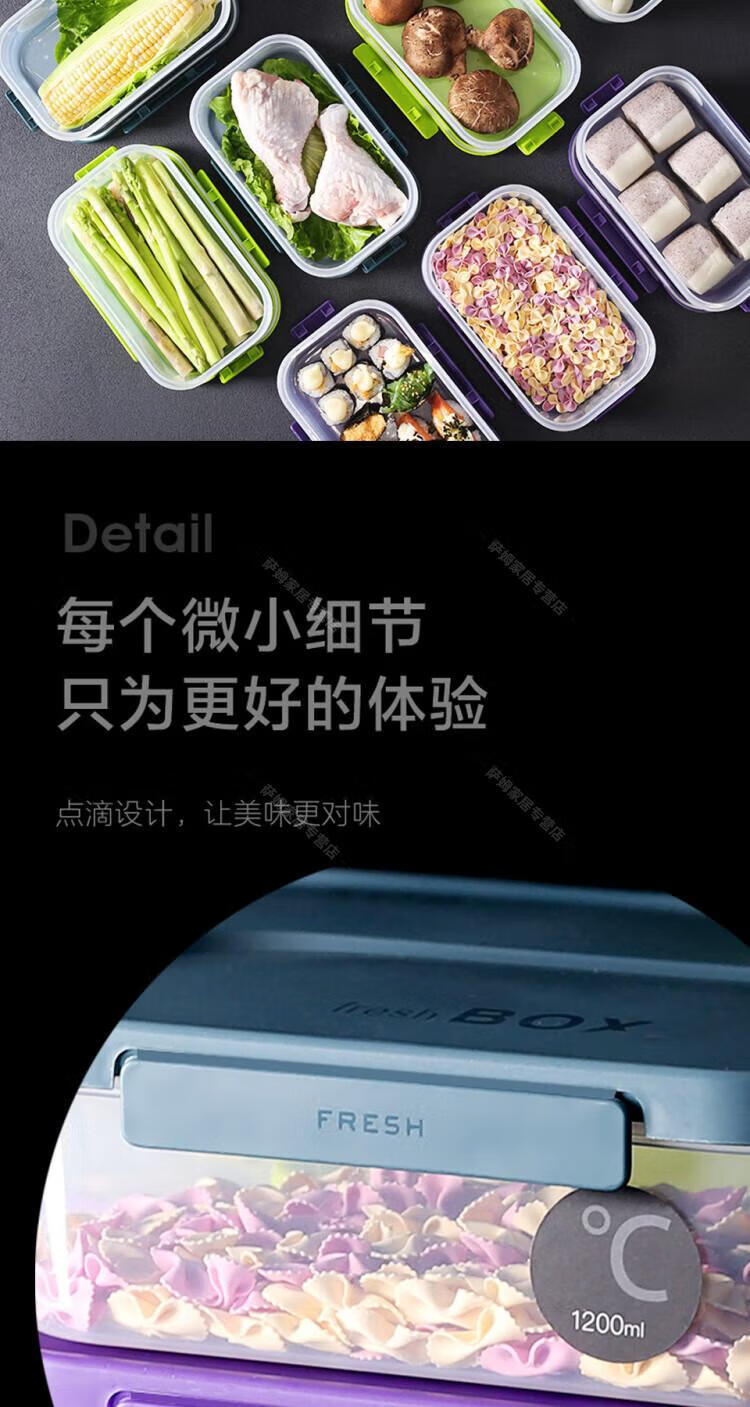 WCZ德国冰箱收纳盒便当食品级密封保鲜盒饭盒冷冻专用厨房水果鸡蛋储 1800ml(紫色)4个