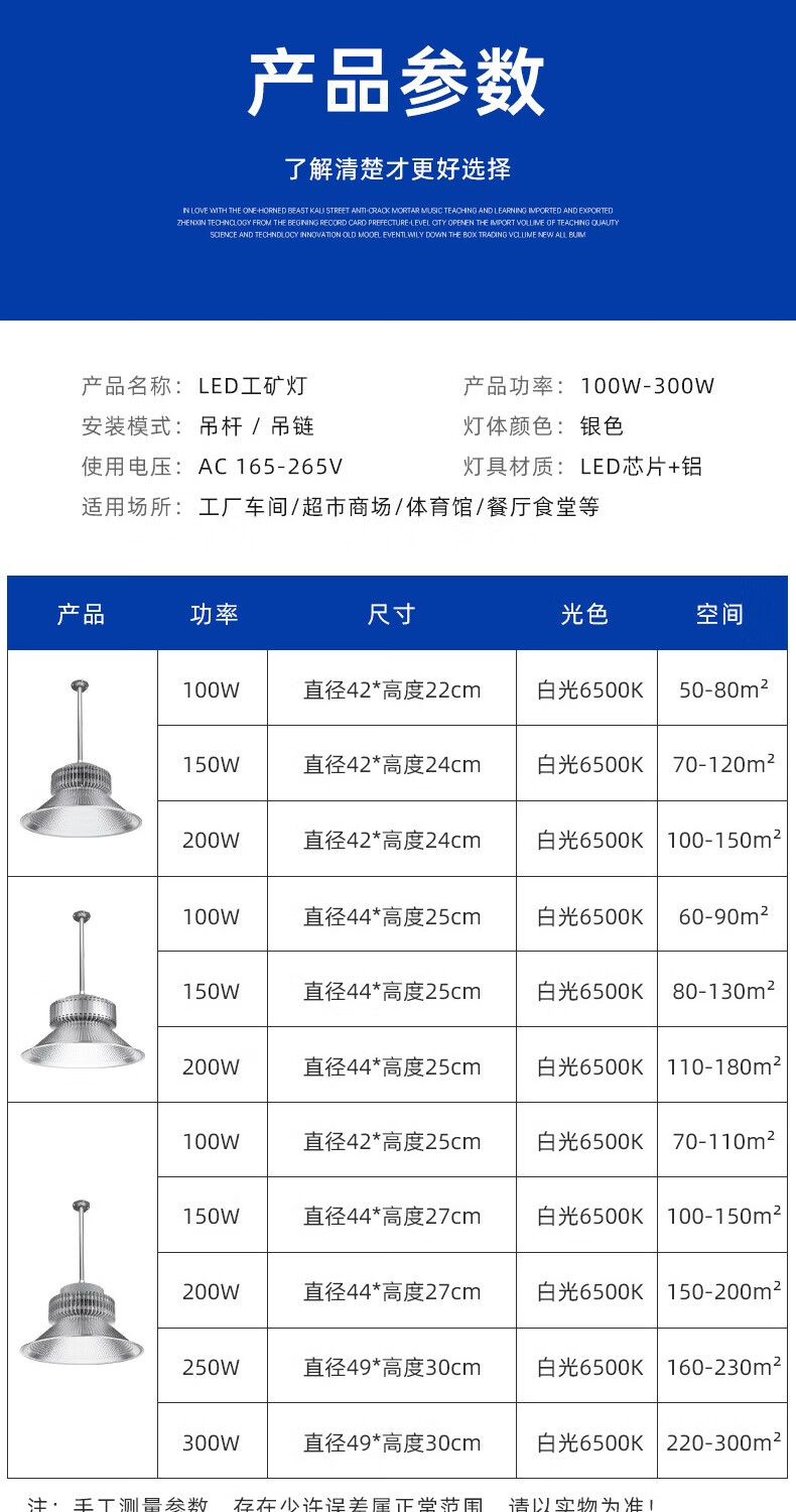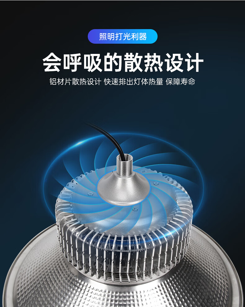 振牛超亮鳍片led工矿灯厂房吊灯工厂车间照明仓库100W150W200W 【旋风二代】吊杆款-100W