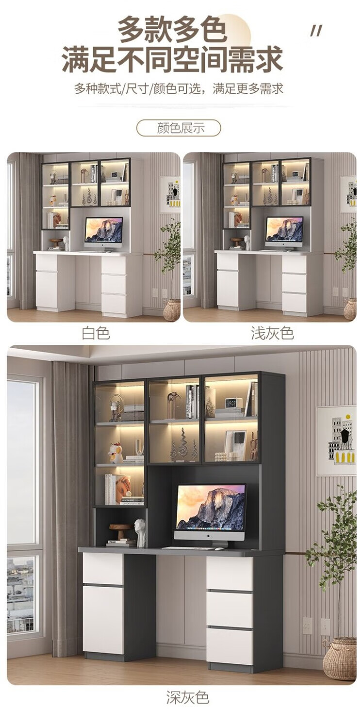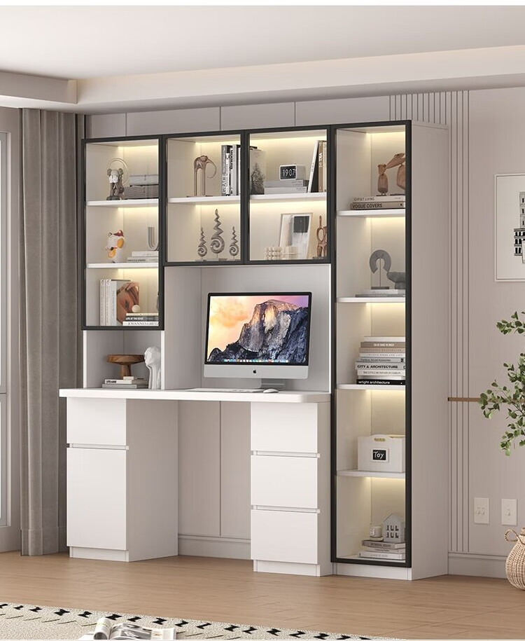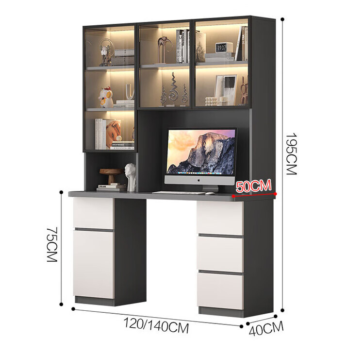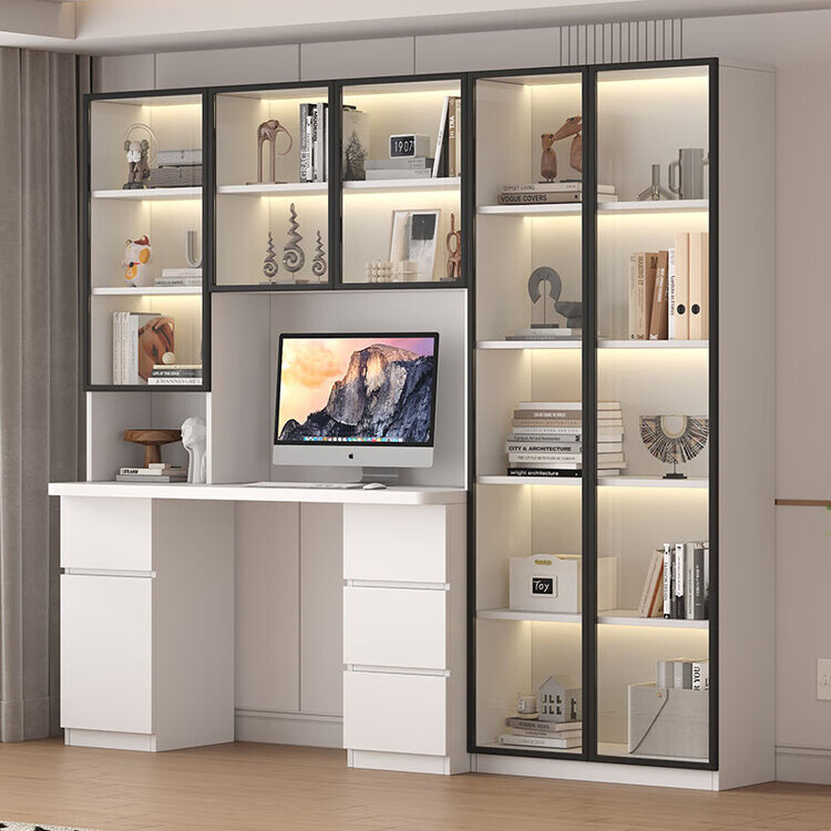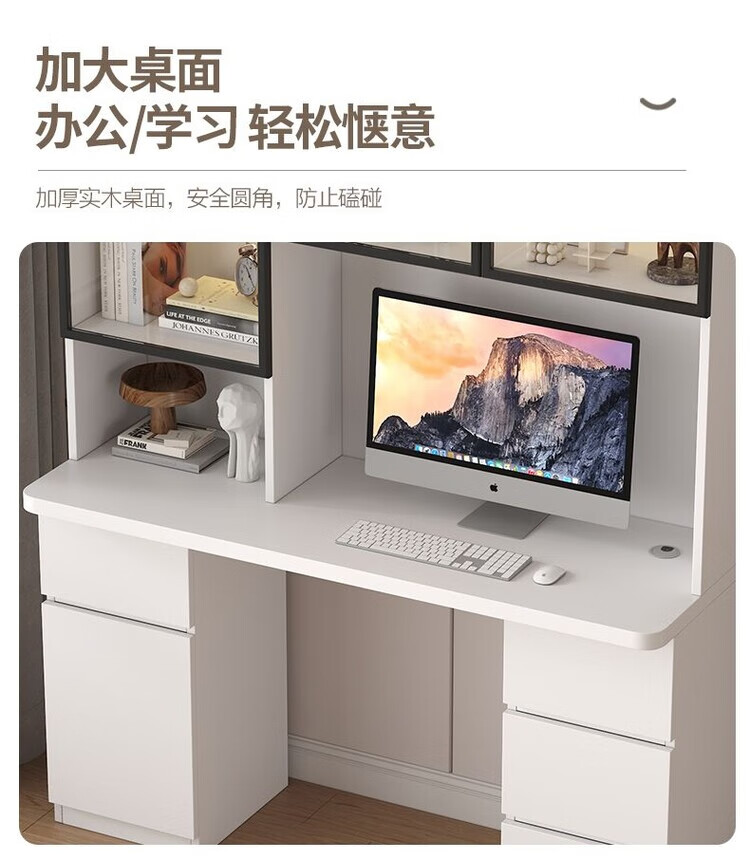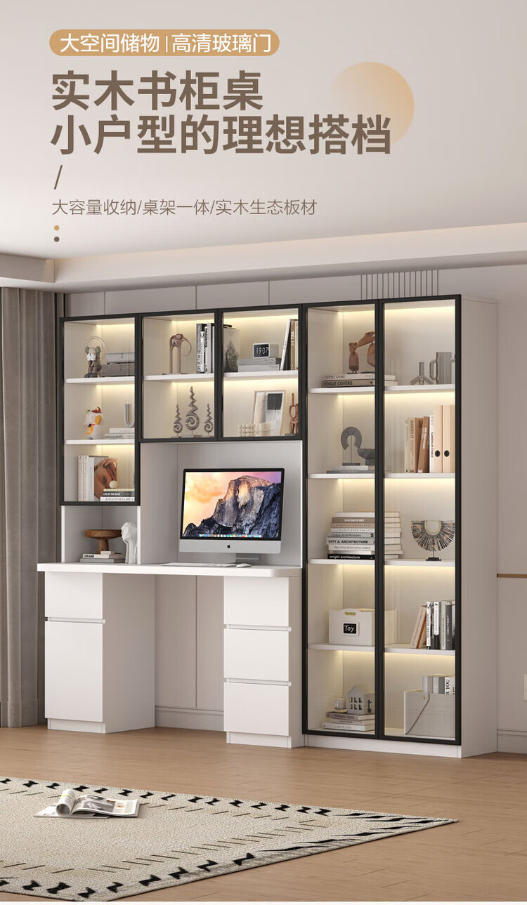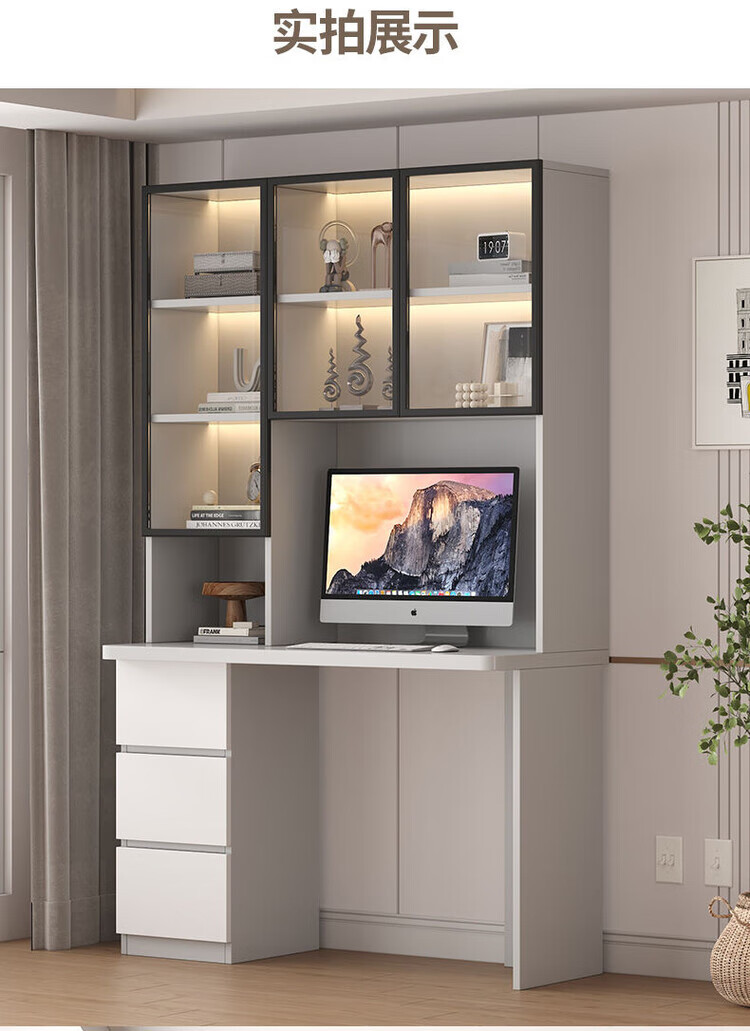 倘然之家实木书桌书架组合简约台式电脑桌书柜一体家用儿童卧室学生学习桌 白色*送货入户【加厚桌面2.5】不含灯 长80/宽50/高195