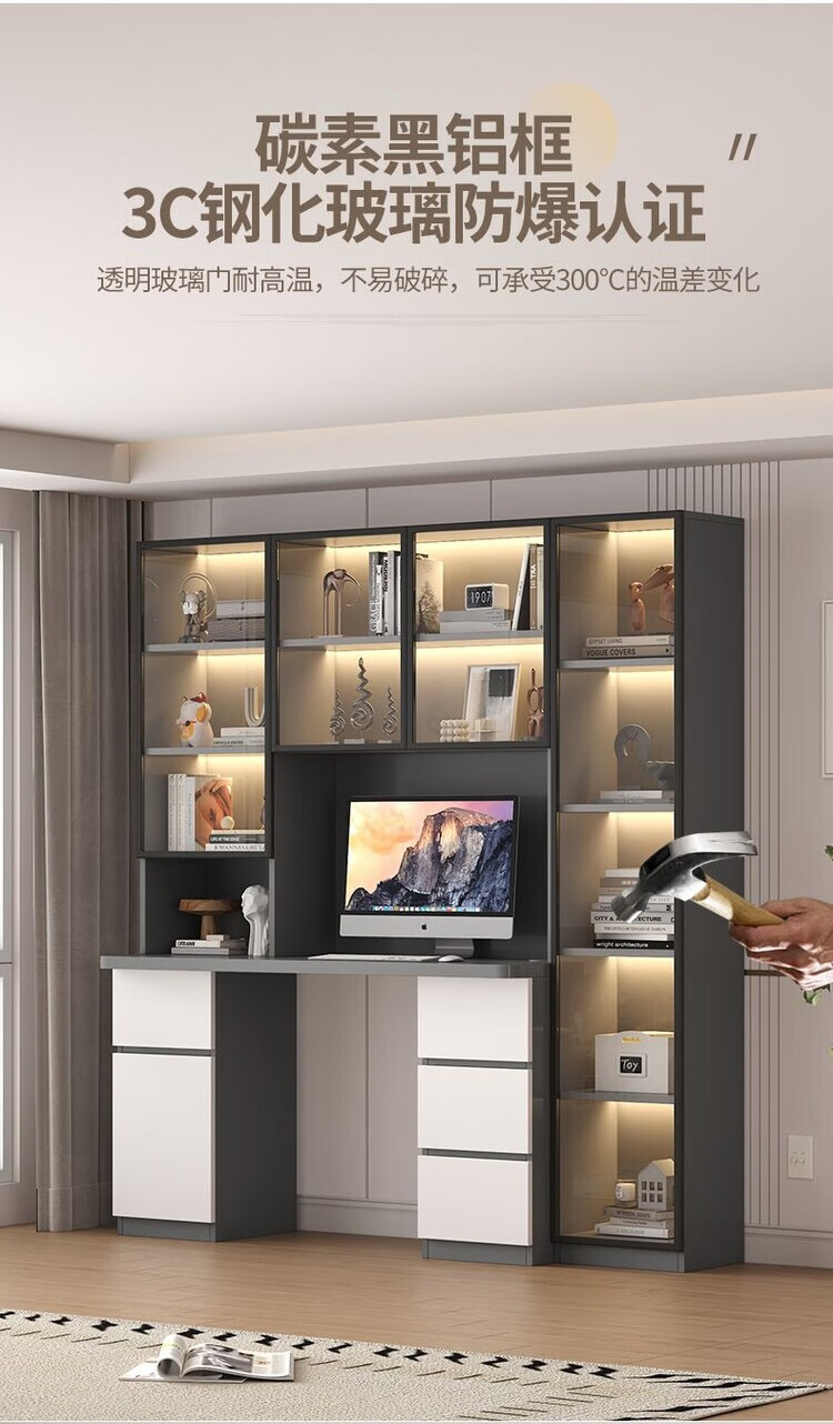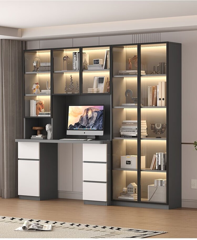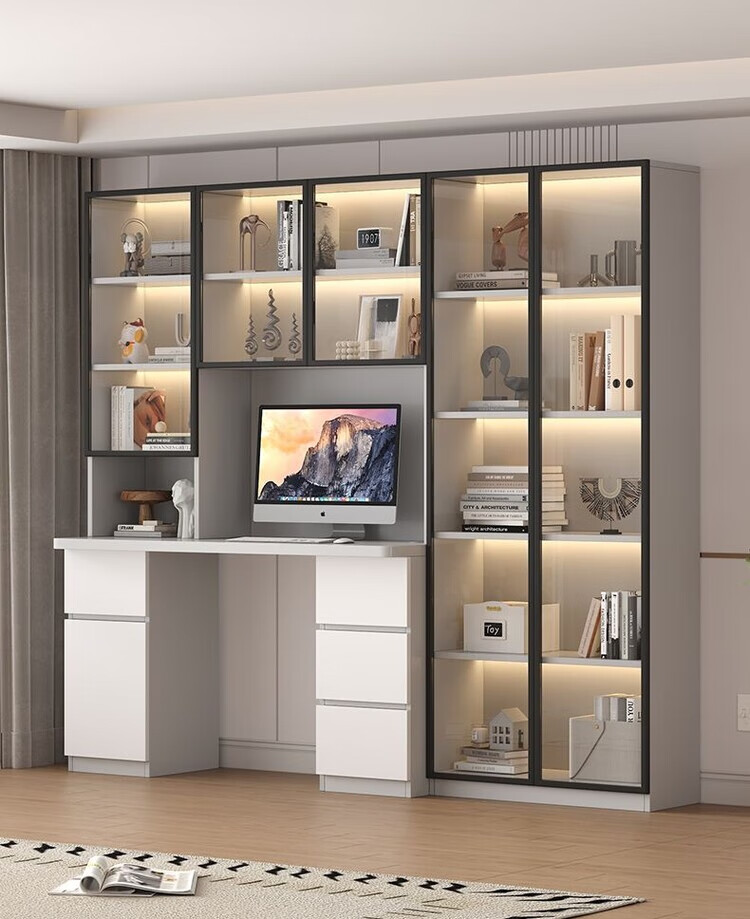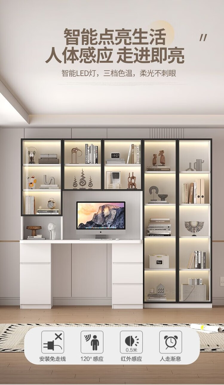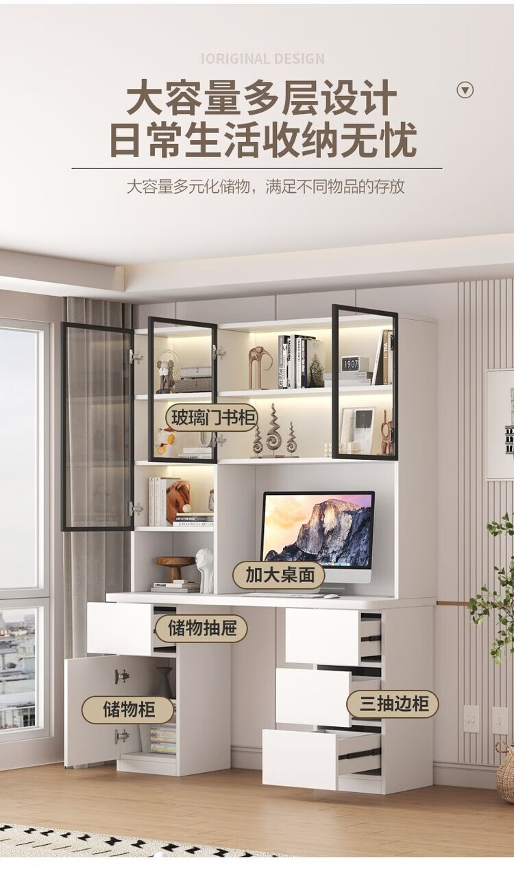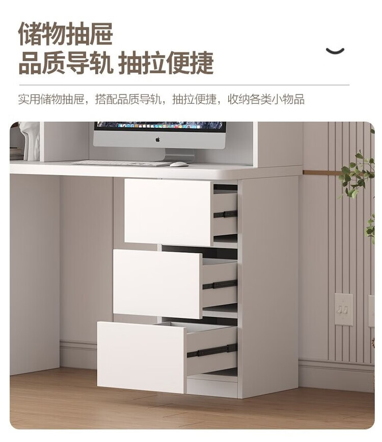 倘然之家实木书桌书架组合简约台式电脑桌书柜一体家用儿童卧室学生学习桌 白色*送货入户【加厚桌面2.5】不含灯 长80/宽50/高195