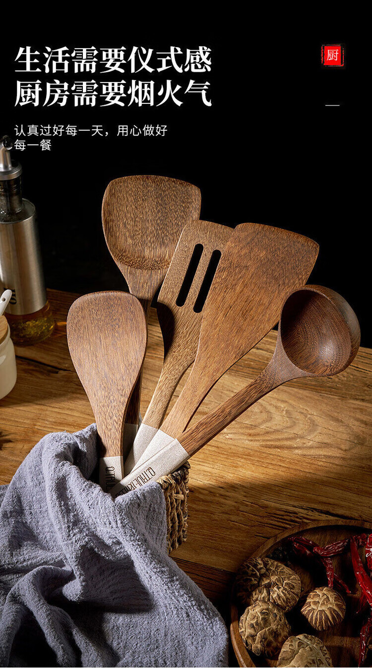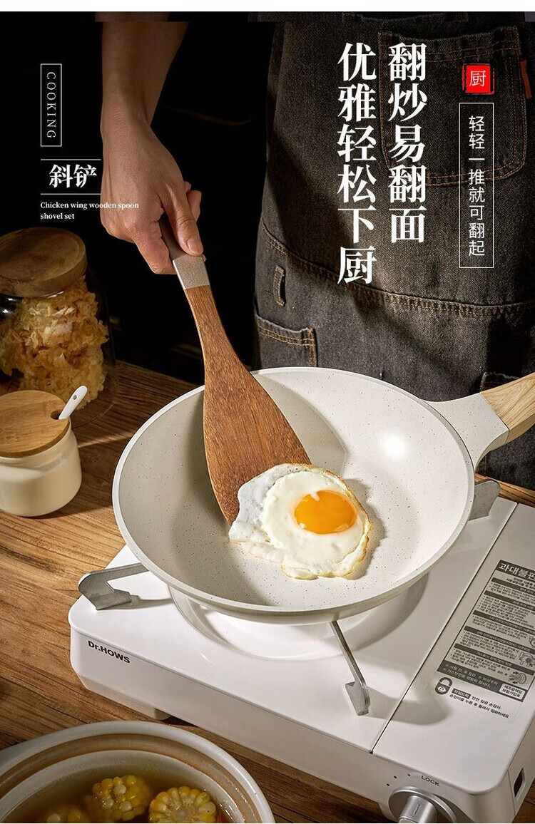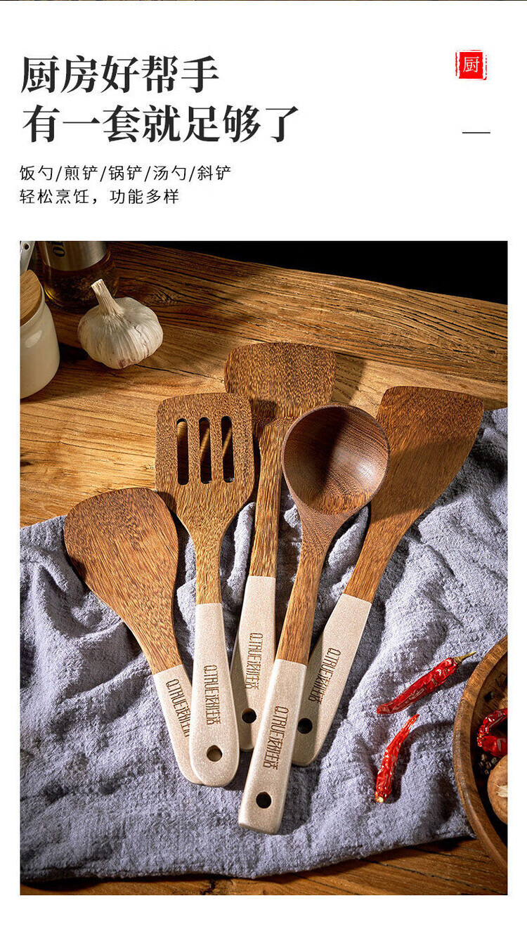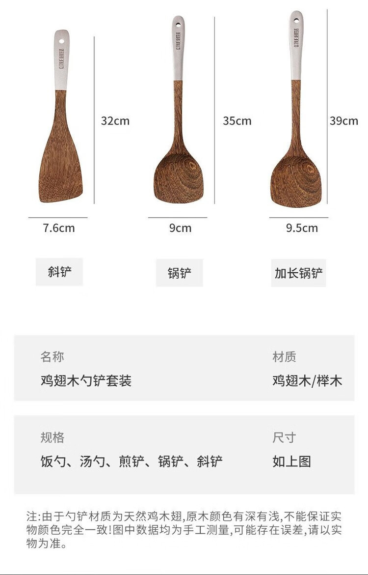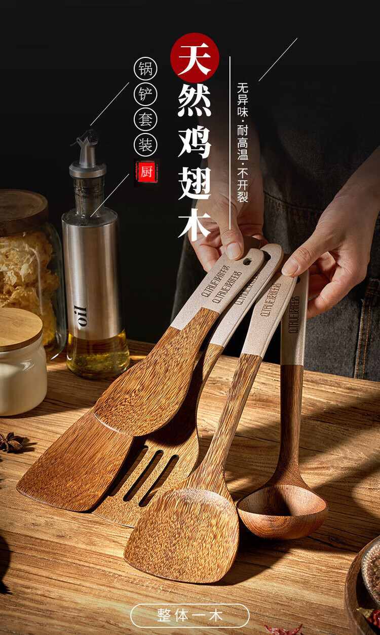 简漾无漆鸡翅木锅铲不粘锅专用炒菜铲耐高温家用厨房木铲木勺厨具套装 斜铲