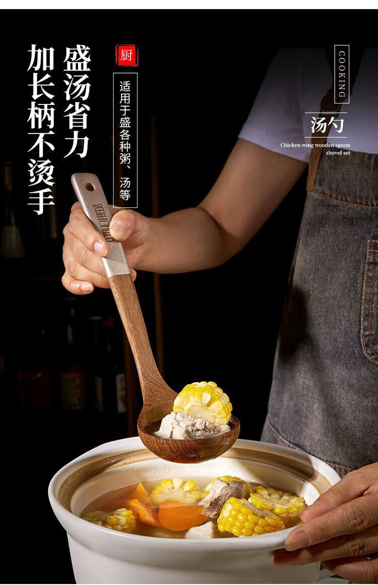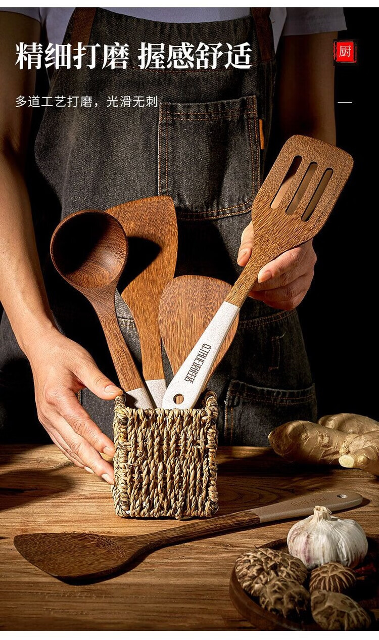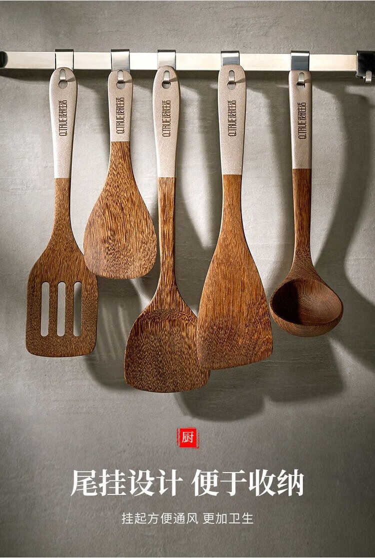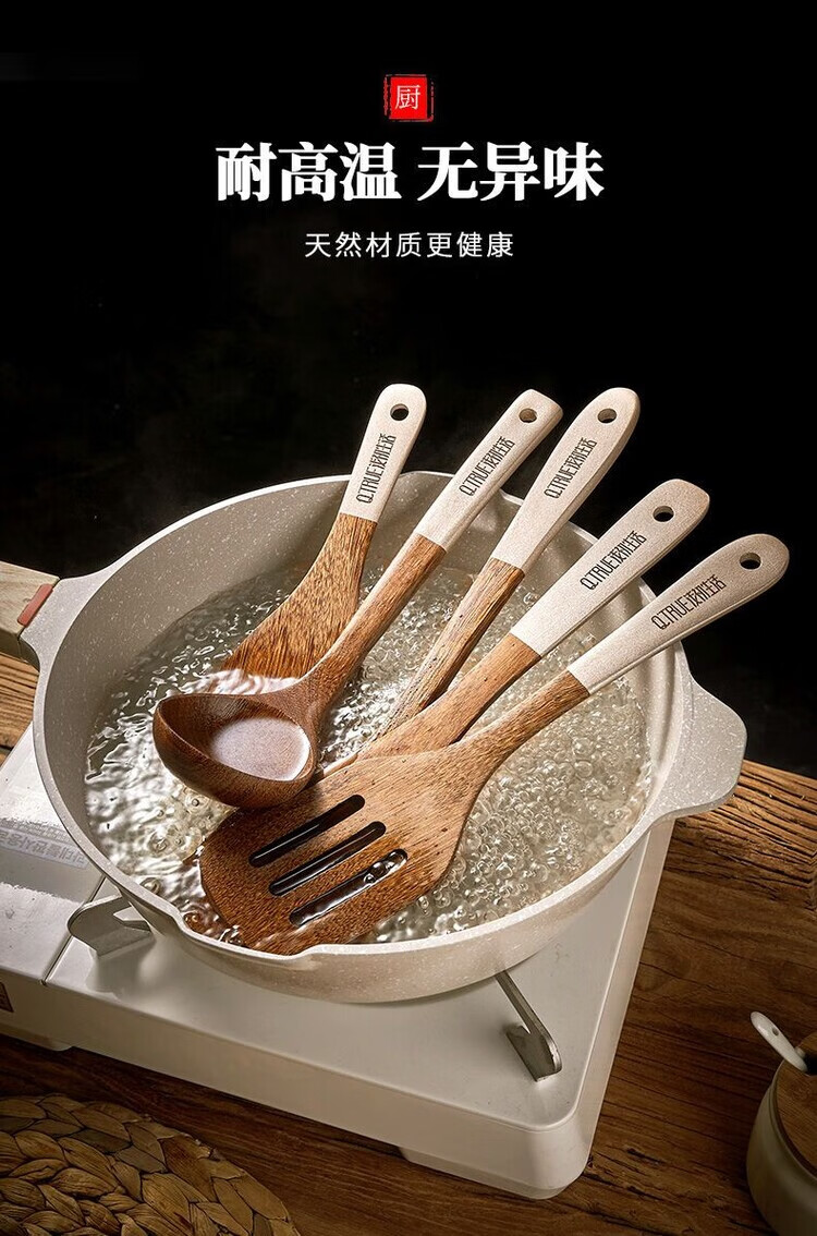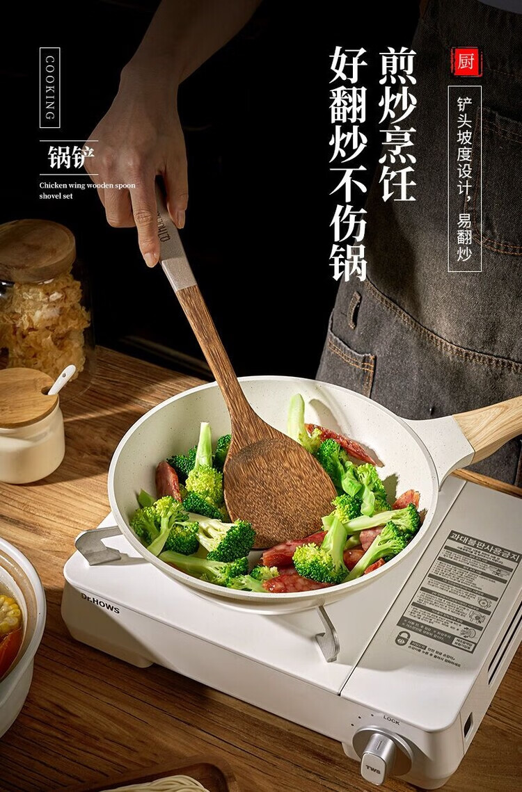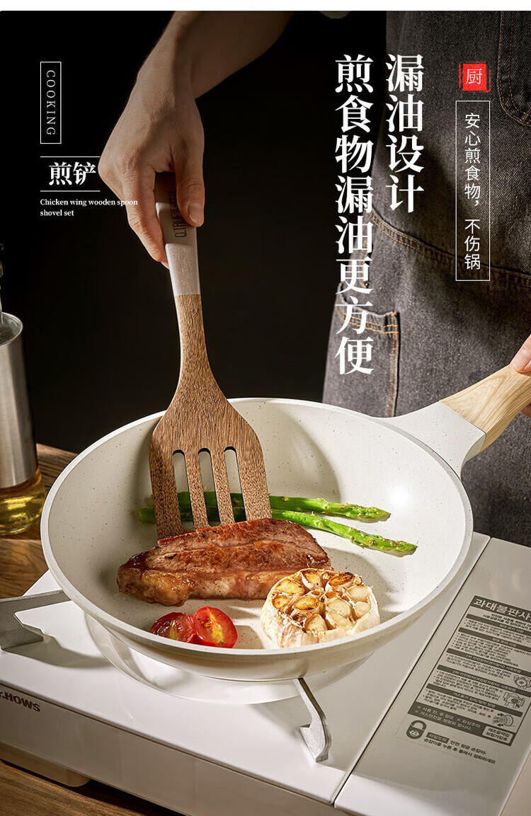 简漾无漆鸡翅木锅铲不粘锅专用炒菜铲耐高温家用厨房木铲木勺厨具套装 斜铲