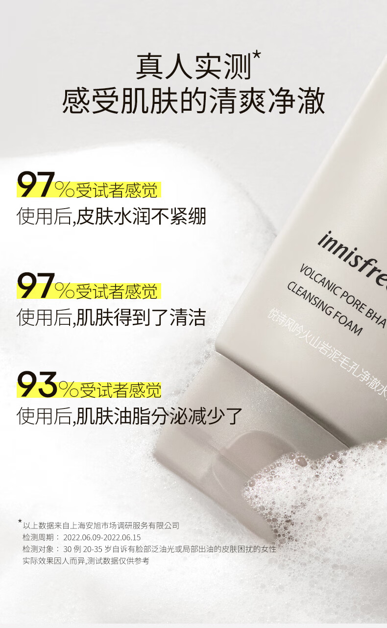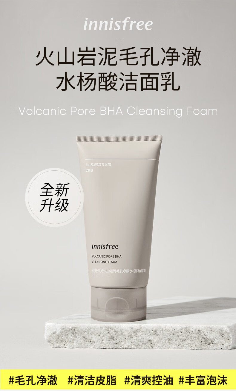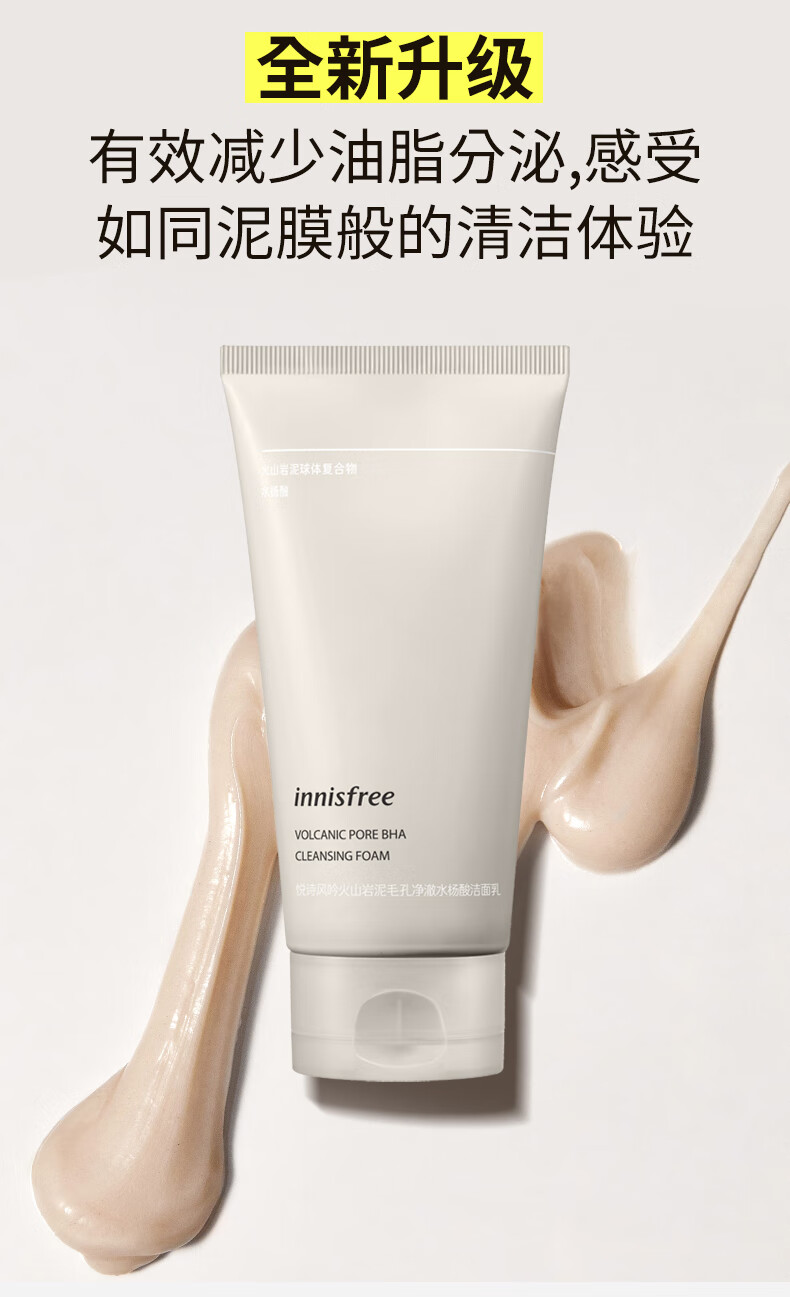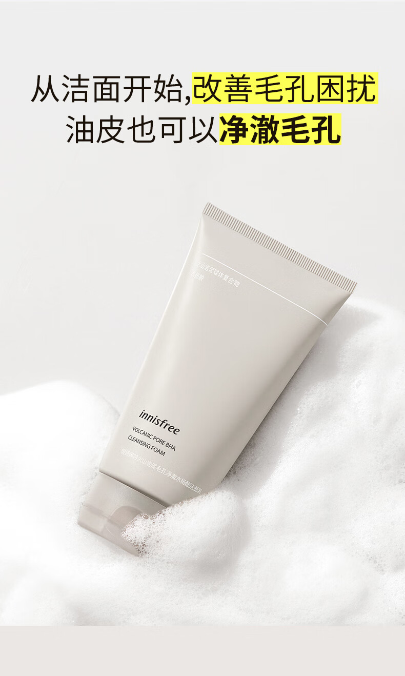 悦诗风吟火山岩泥毛孔净澈水杨酸洁面乳 毛孔净澈男女生150ml