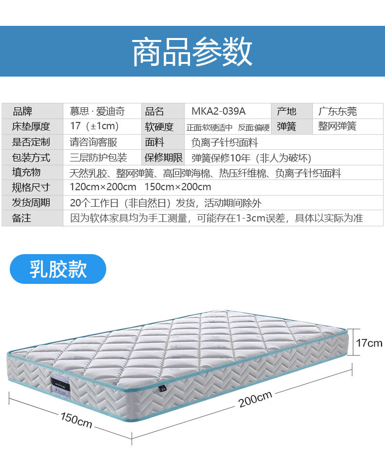慕思(de RUCCI)乳胶床垫整网弹簧护脊儿童床垫双面可用 有氧睡 1.2*2米软硬适中