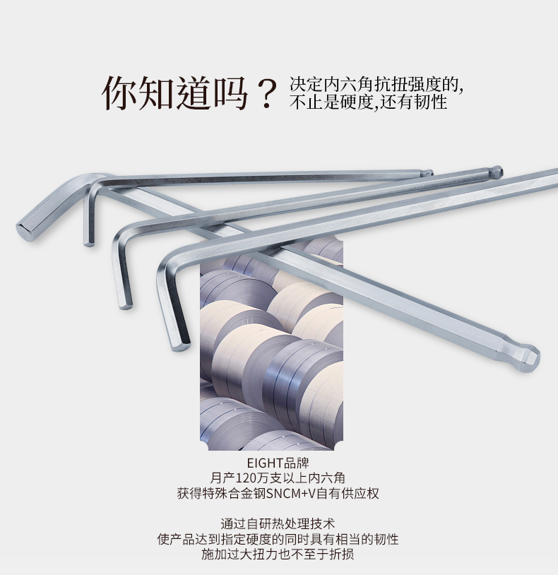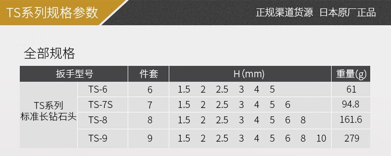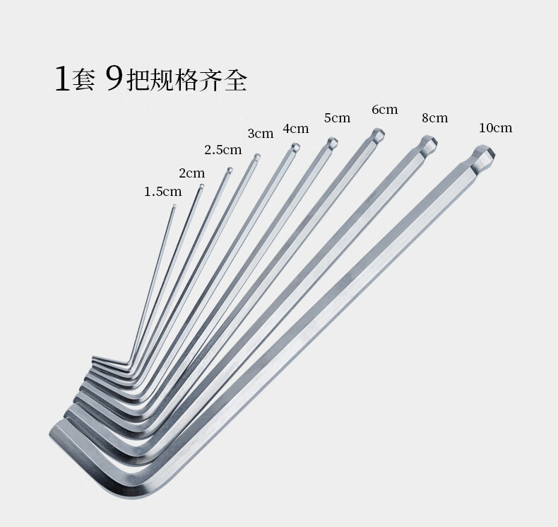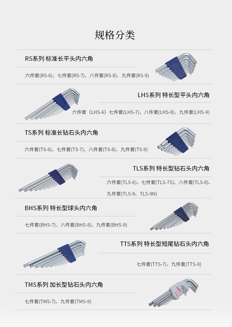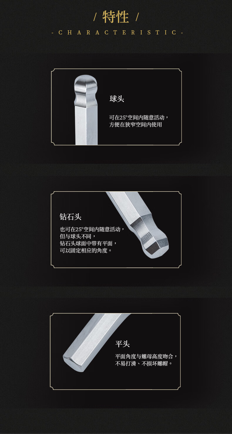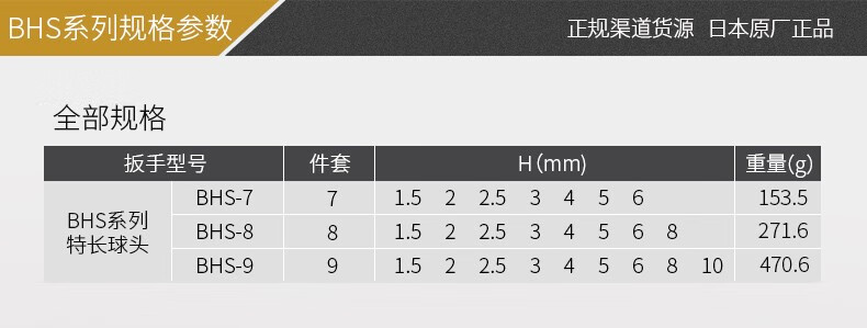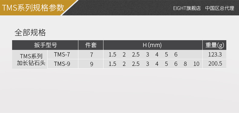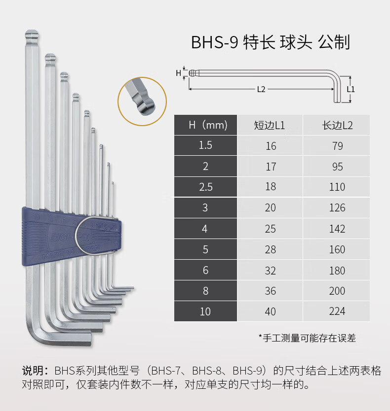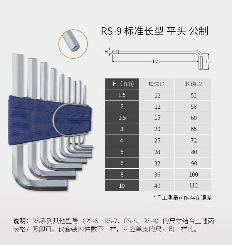 EIGHT日本原装进口百利内六角扳手套装加长6角匙螺丝刀六方六棱工具 公制钻石头9件套特长型TLS-9