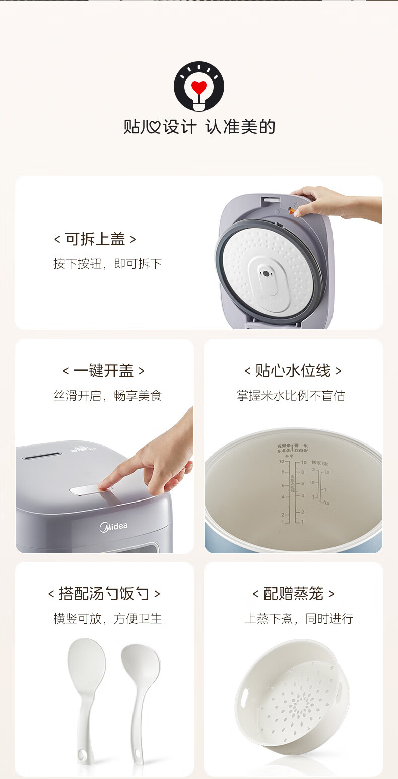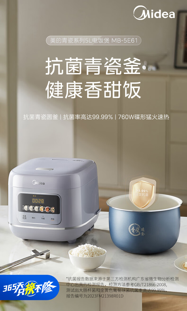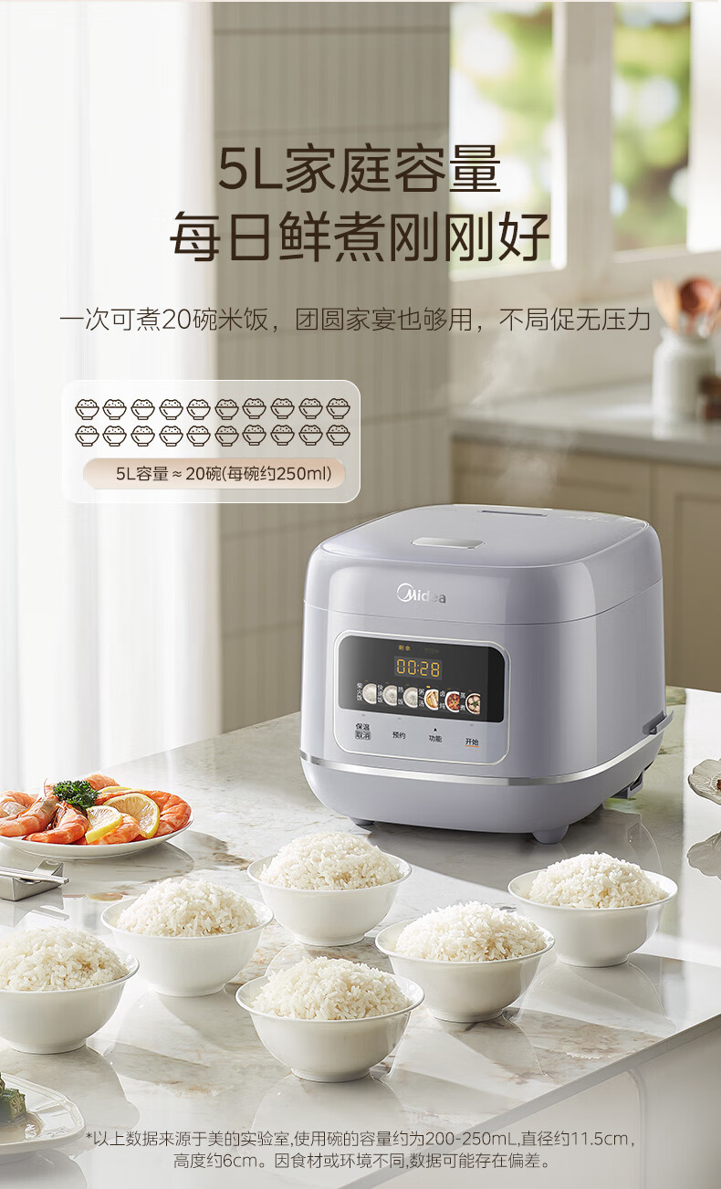 美的(Midea)电饭煲5L电饭锅家用5-8个人大容量抗菌青瓷内胆一键柴火饭微压智能预约多功能快速饭政府补贴