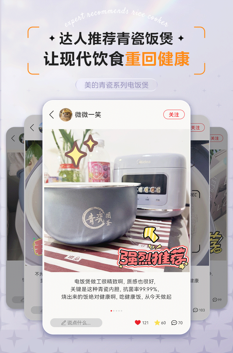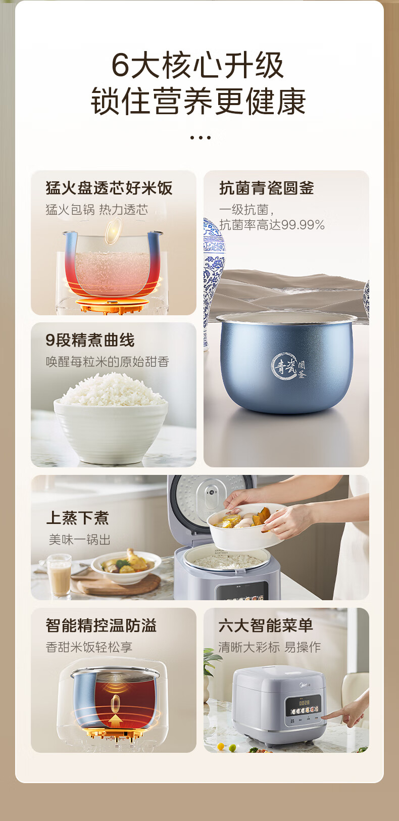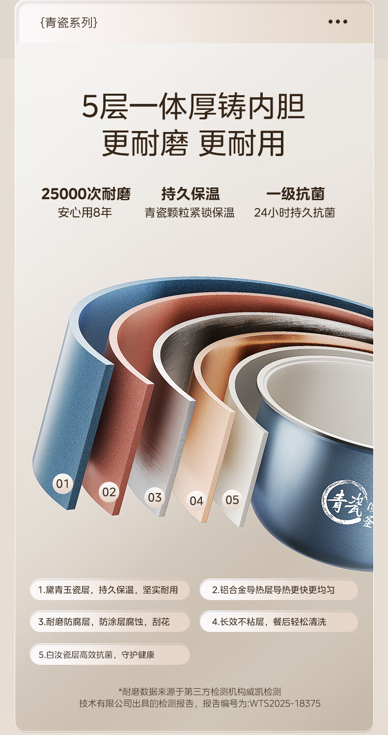 美的(Midea)电饭煲5L电饭锅家用5-8个人大容量抗菌青瓷内胆一键柴火饭微压智能预约多功能快速饭政府补贴