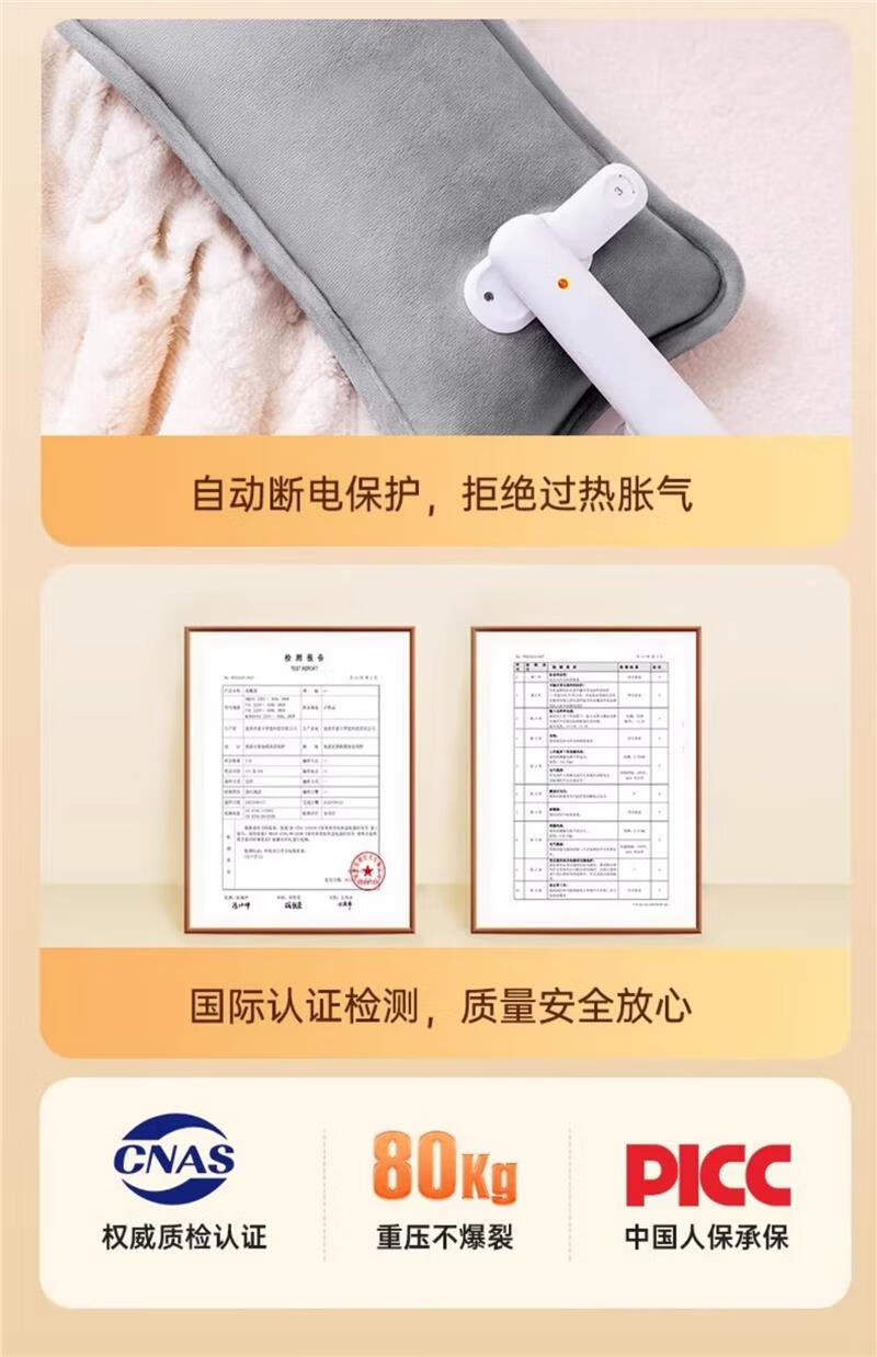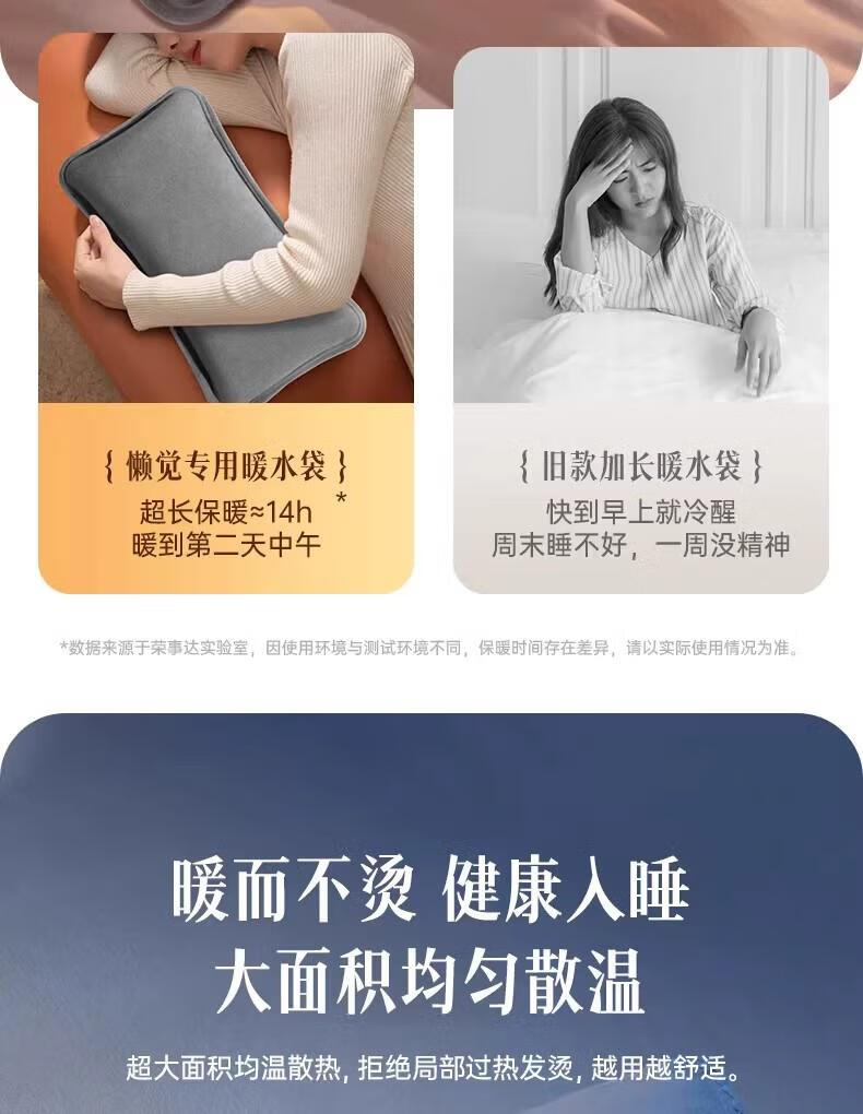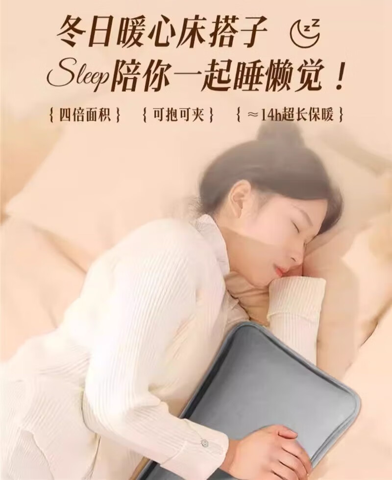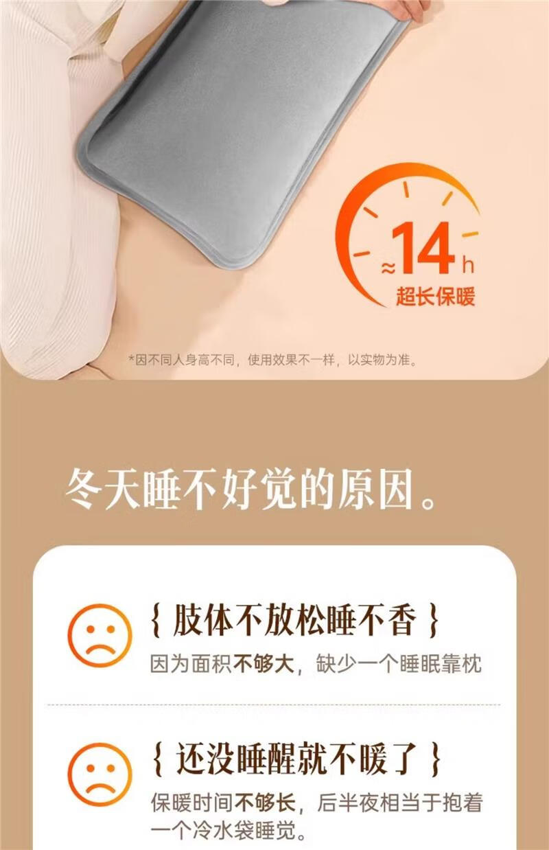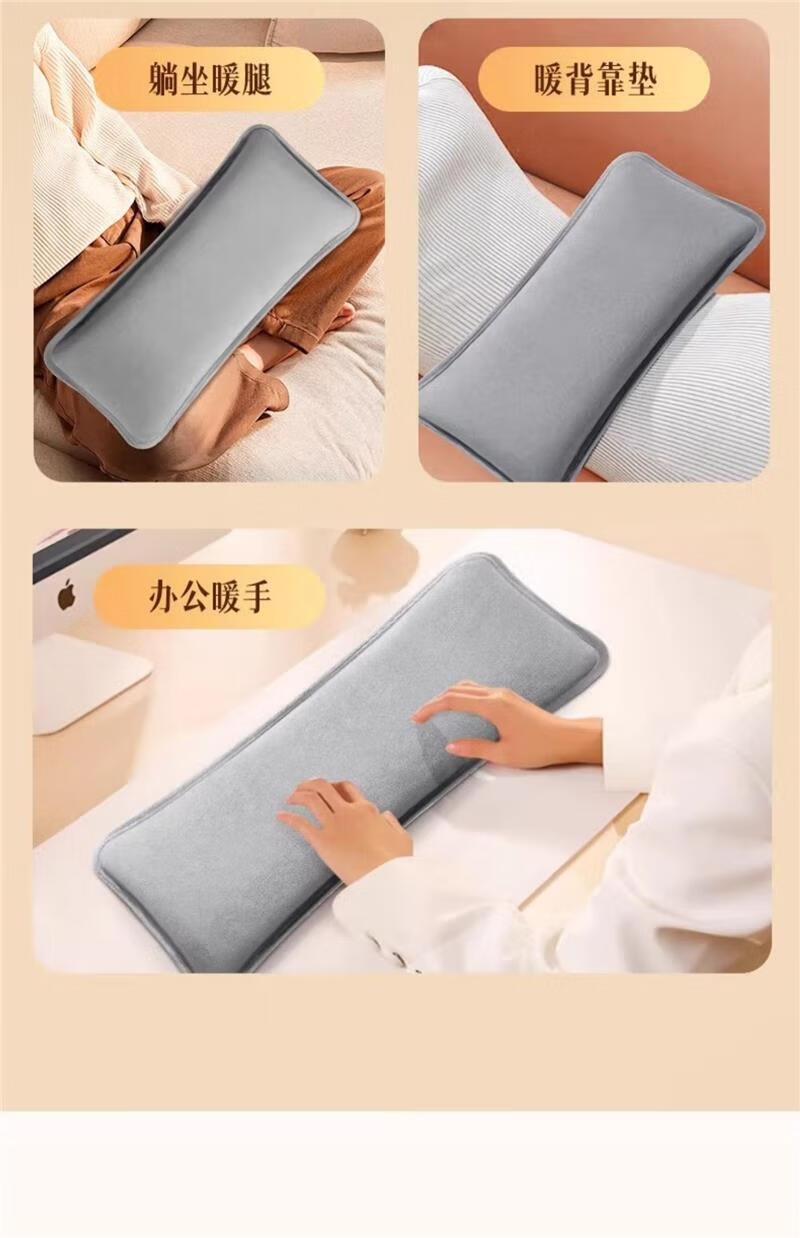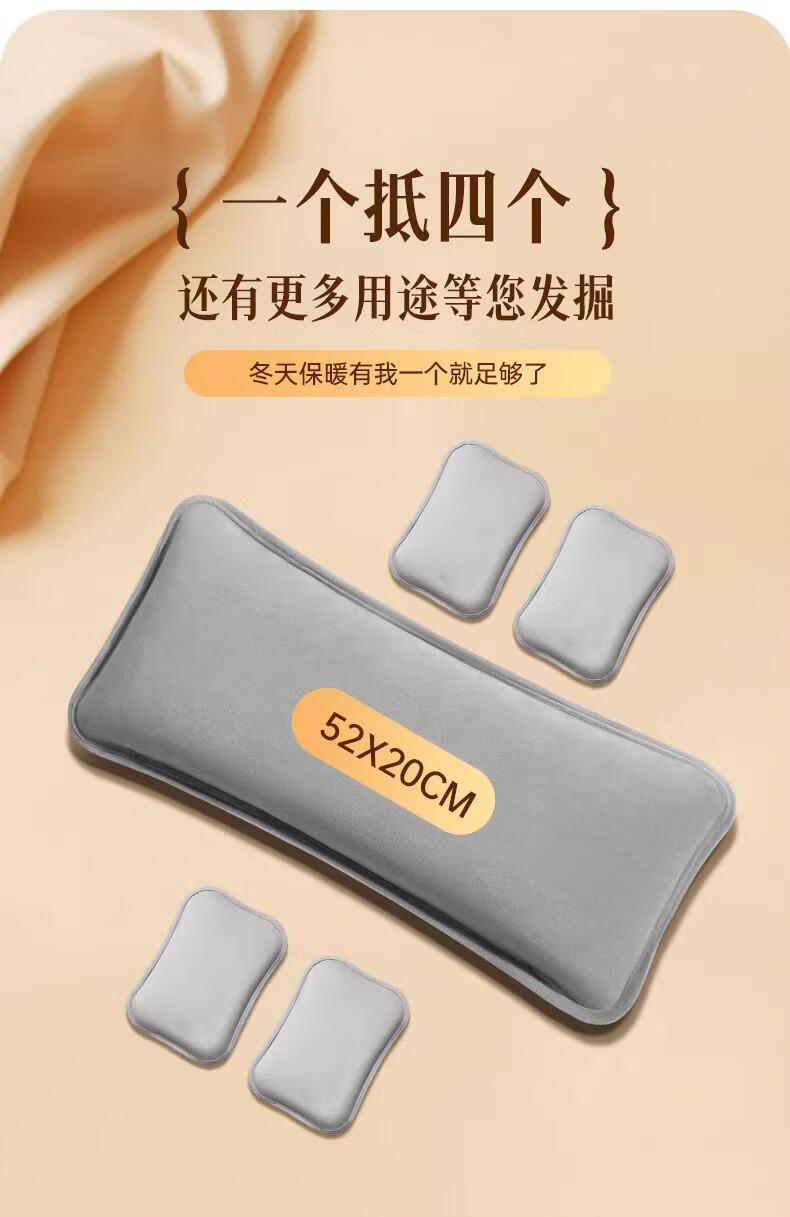 AILUKI日本高端热水袋充电暖水袋暖宝宝电暖宝热宝床上睡觉被窝暖脚神器 纳米雅灰-升级水晶绒