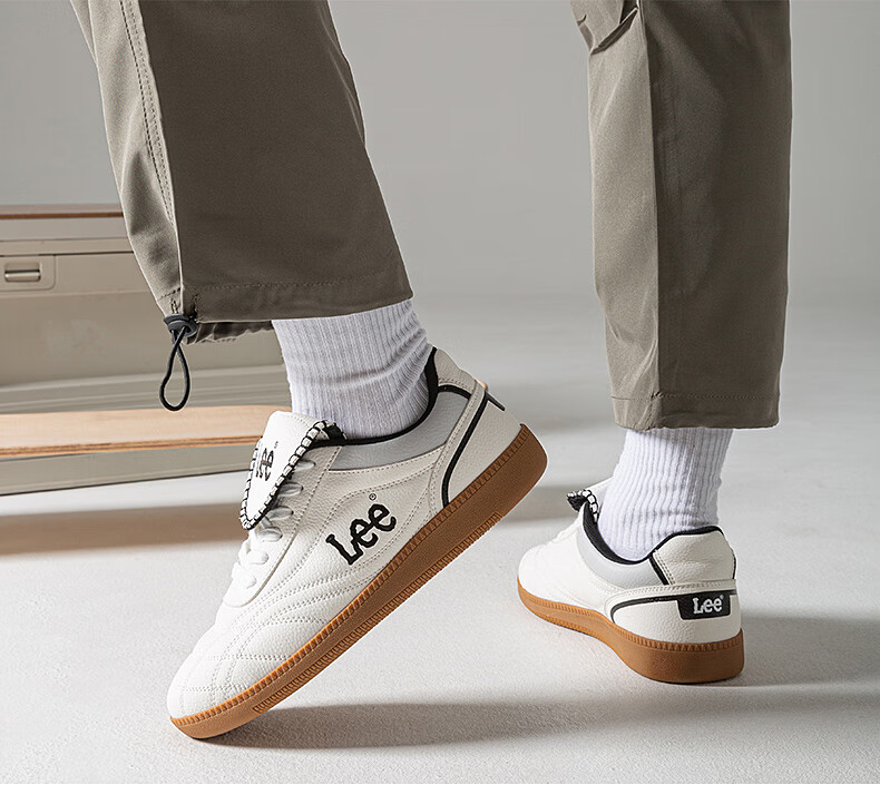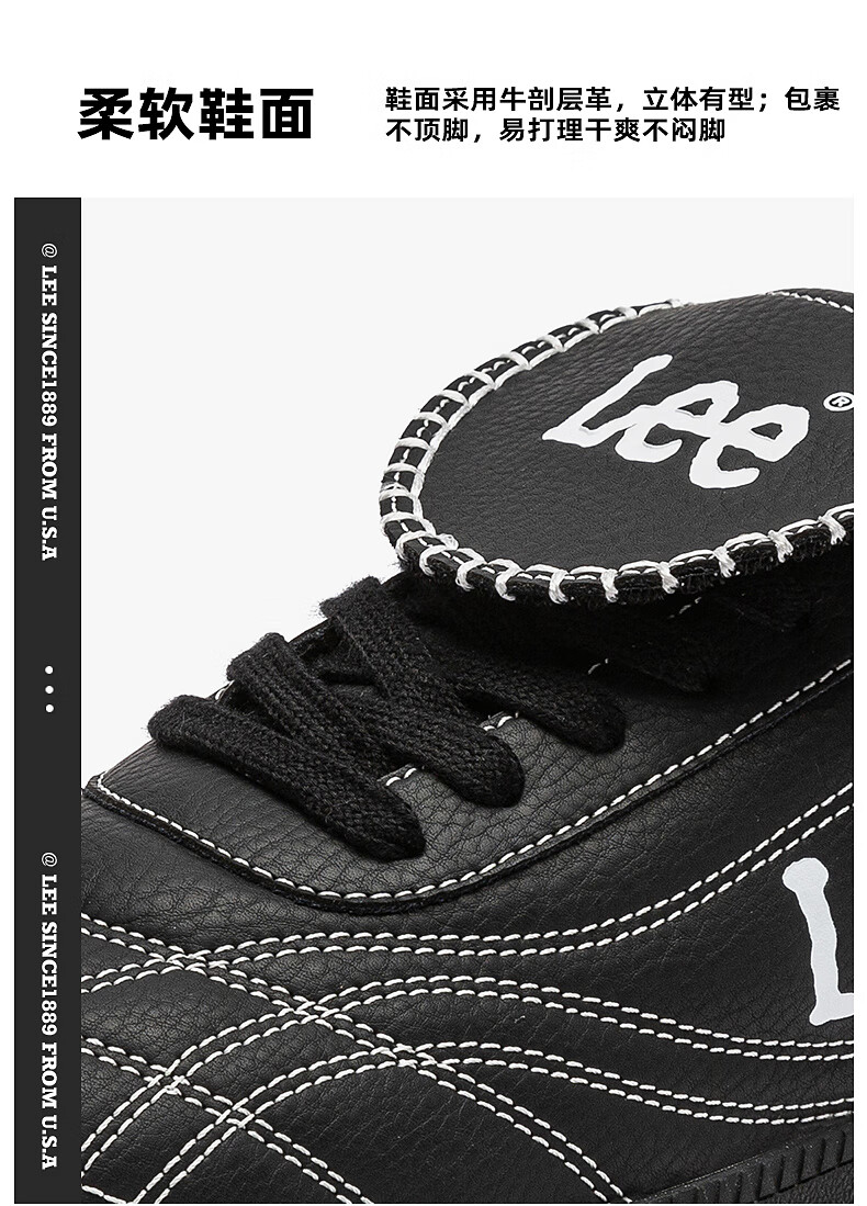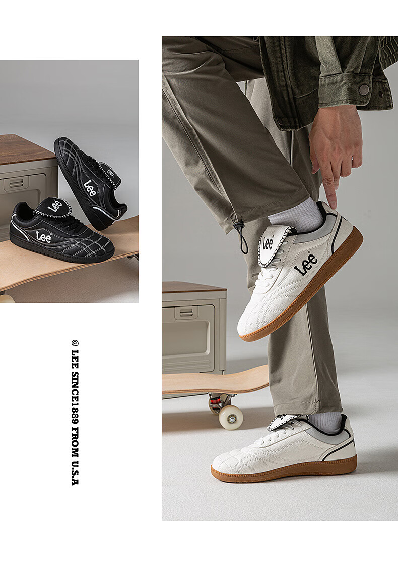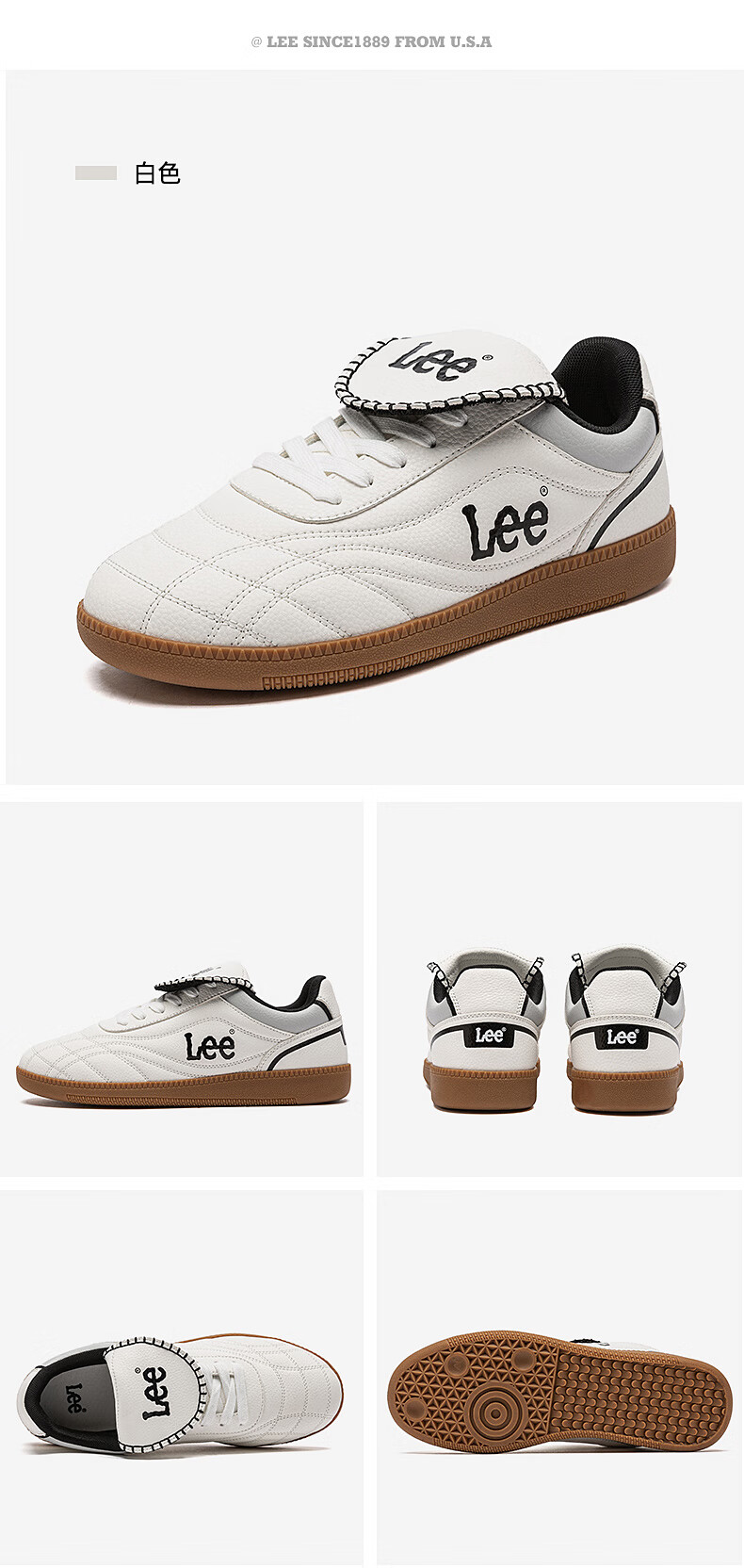 Lee男鞋新款休闲鞋薄底足球风德训鞋低帮防滑板鞋软底舒适运动鞋子男 白色 38 【偏大/请拍小一码】