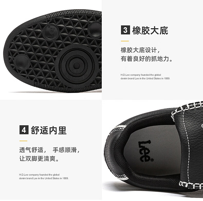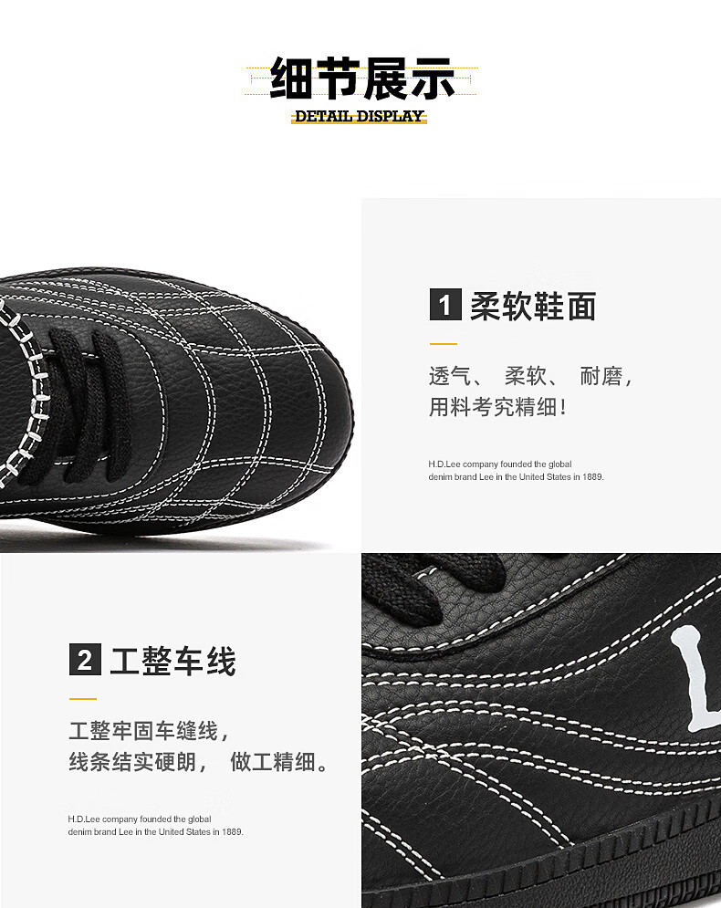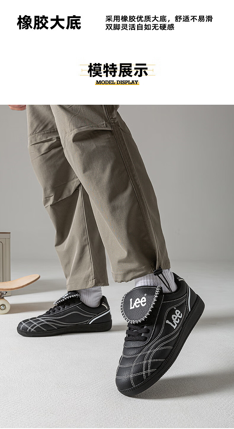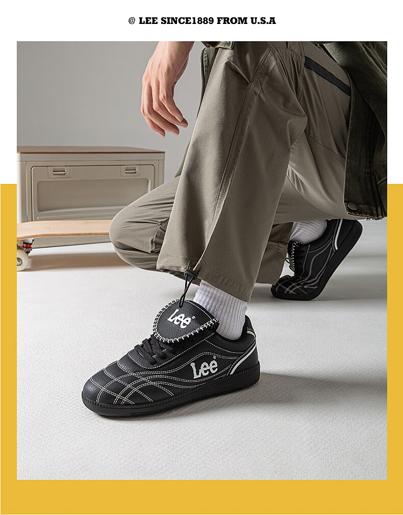 Lee男鞋新款休闲鞋薄底足球风德训鞋低帮防滑板鞋软底舒适运动鞋子男 白色 38 【偏大/请拍小一码】