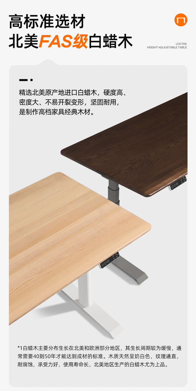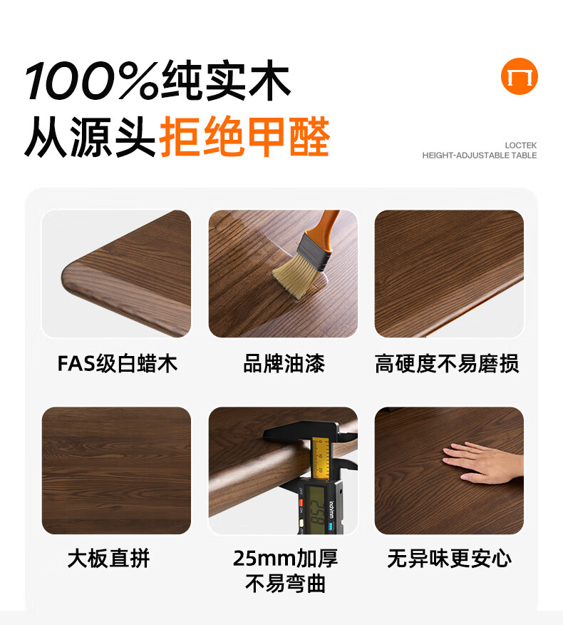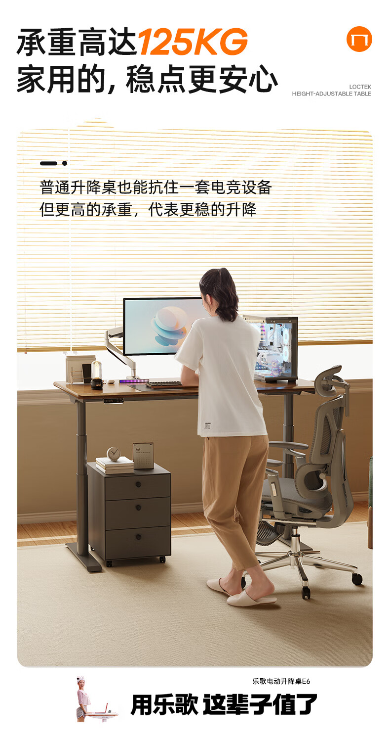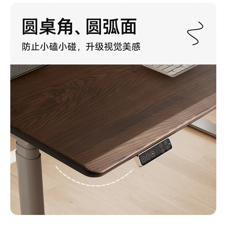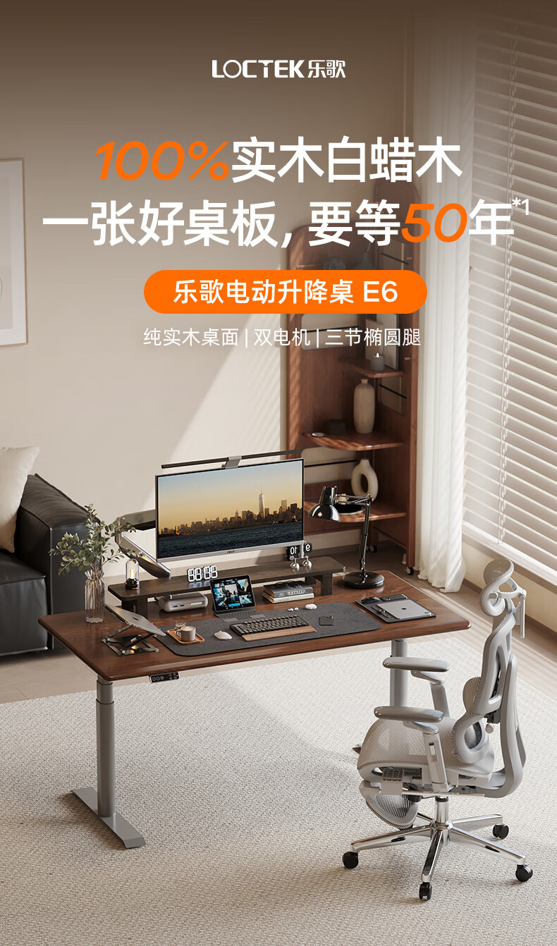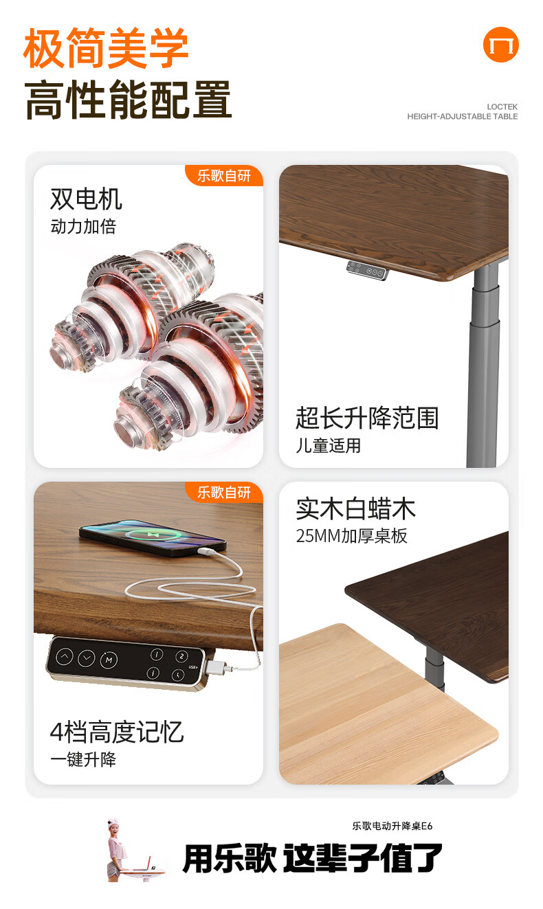 乐歌智能电动升降桌实木电脑桌白蜡木书房卧室站立式工作台写字桌子 【实木白蜡木黑胡桃木色桌板】E6 桌板尺寸:1.6*0.8M