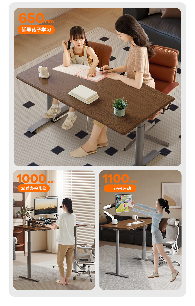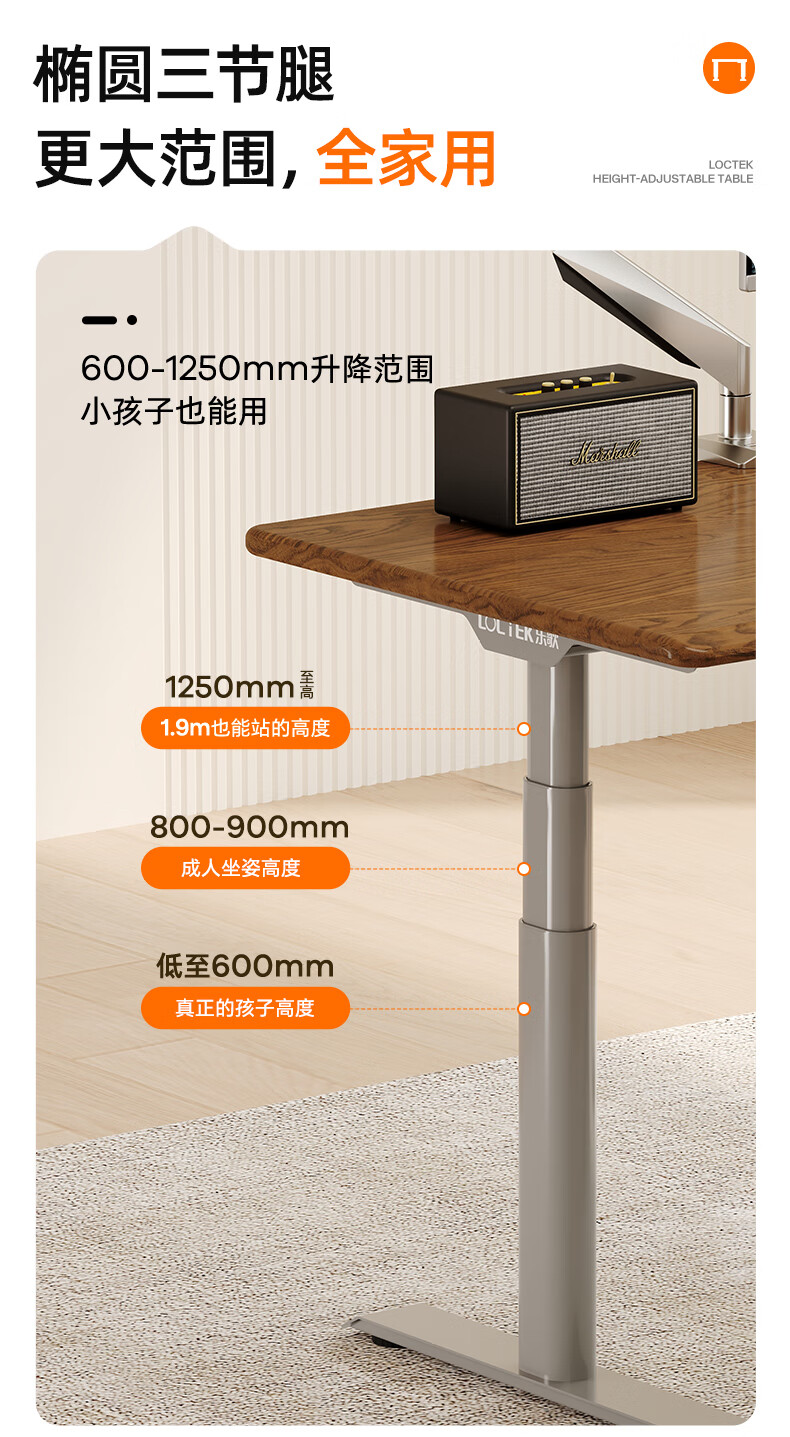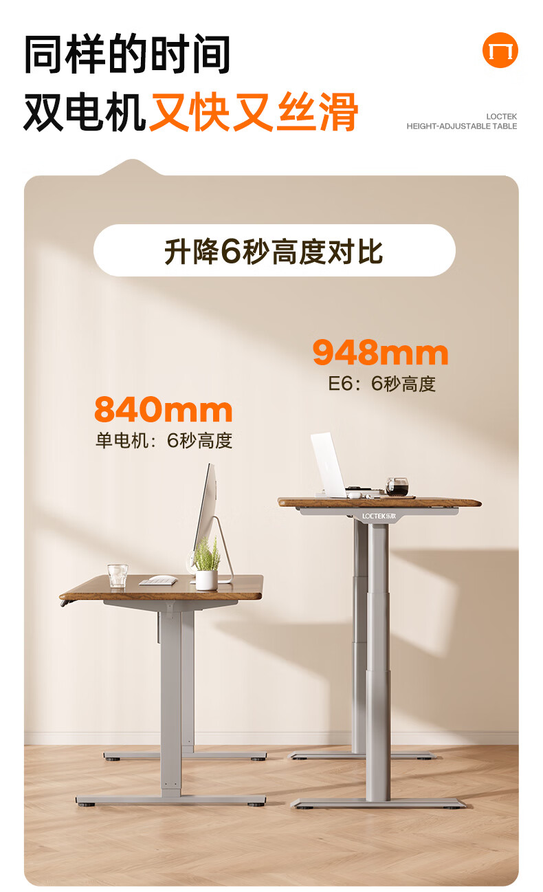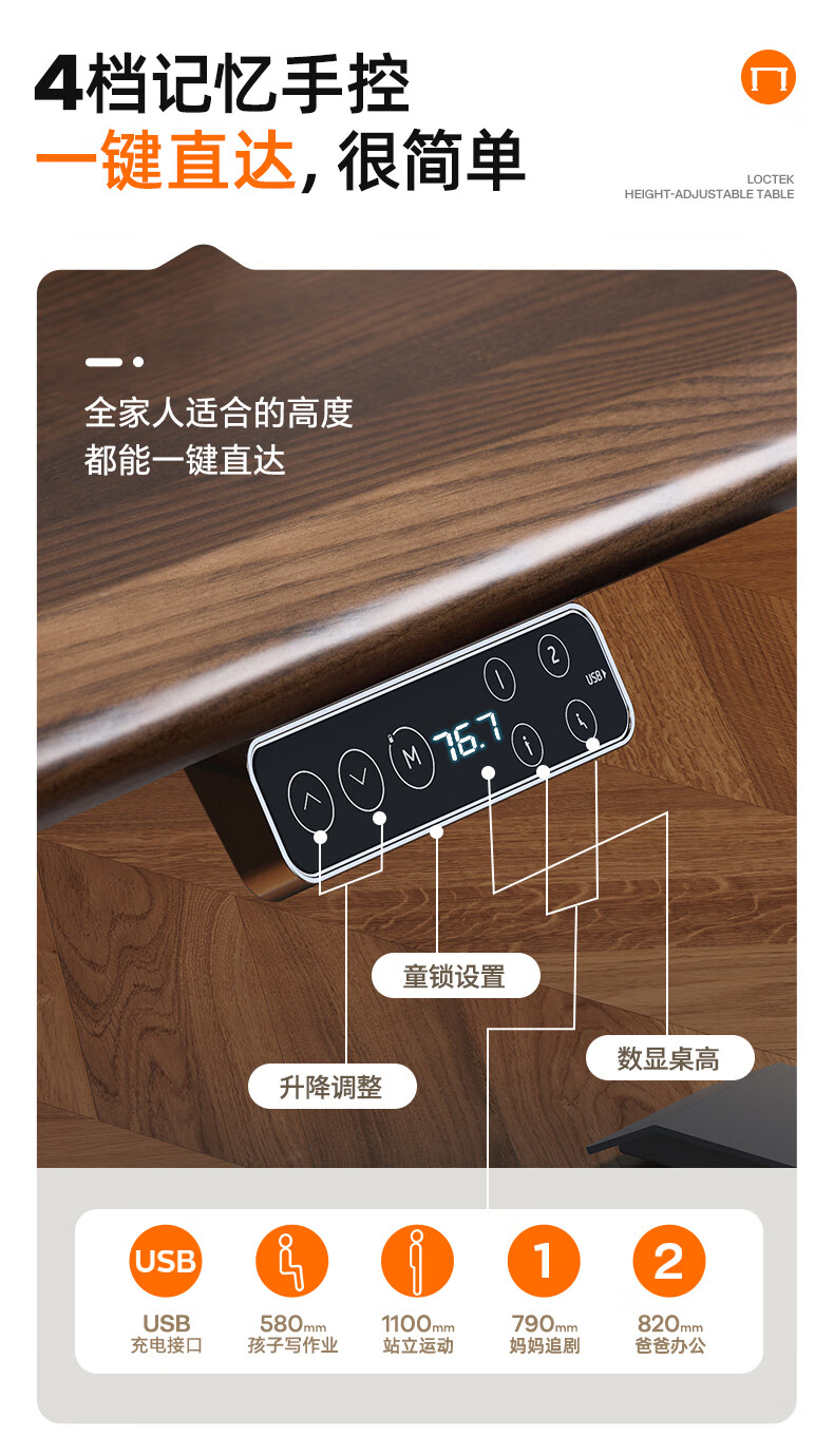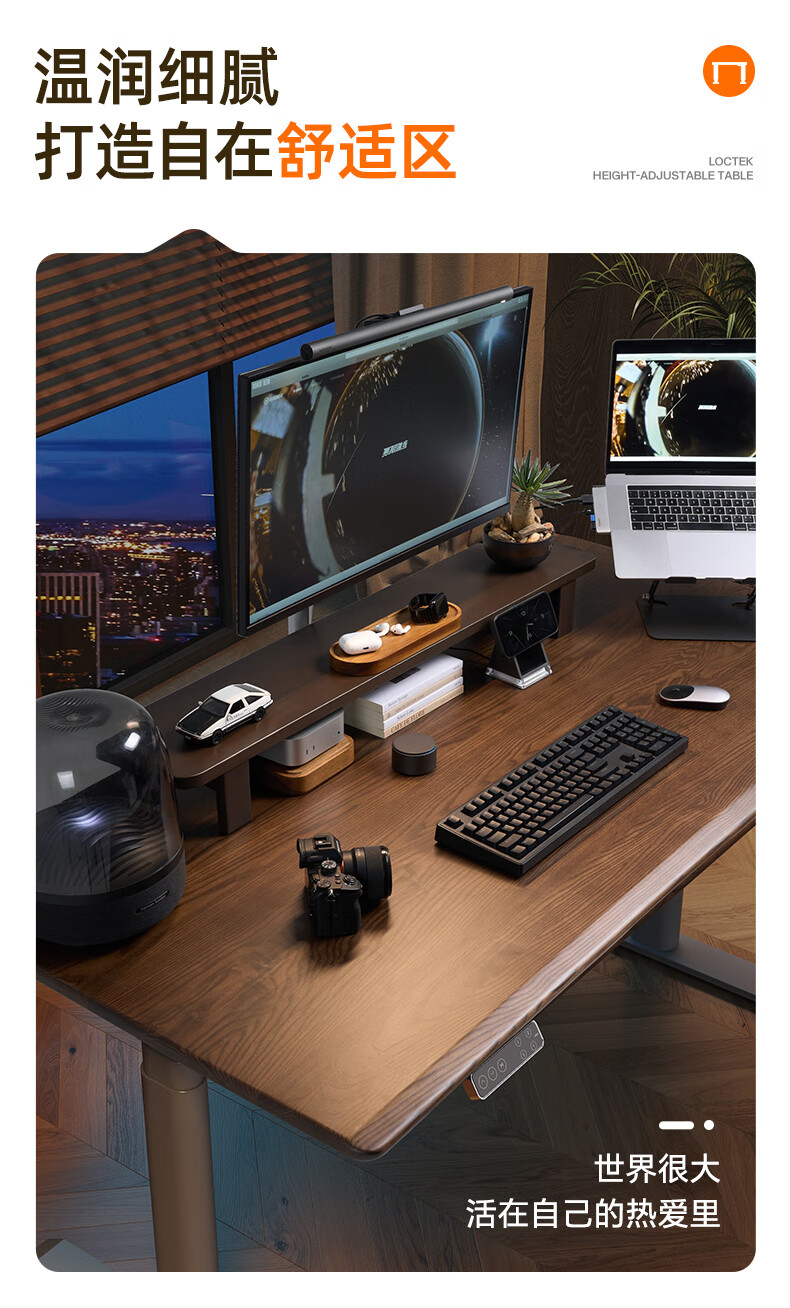 乐歌智能电动升降桌实木电脑桌白蜡木书房卧室站立式工作台写字桌子 【实木白蜡木黑胡桃木色桌板】E6 桌板尺寸:1.6*0.8M
