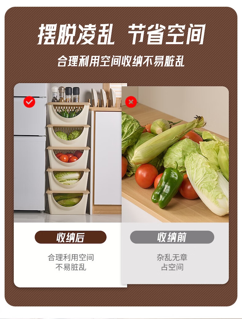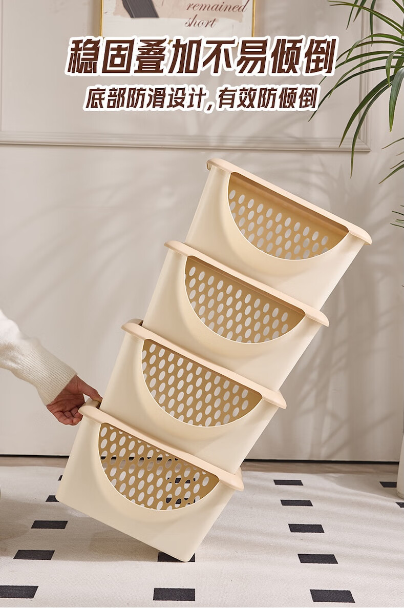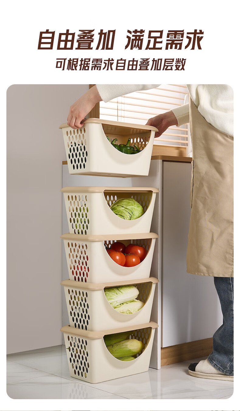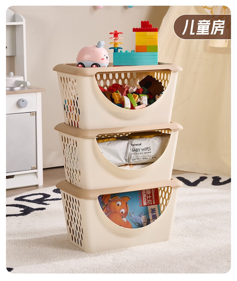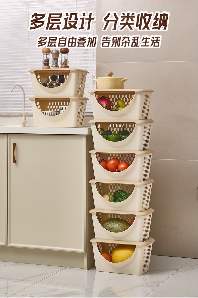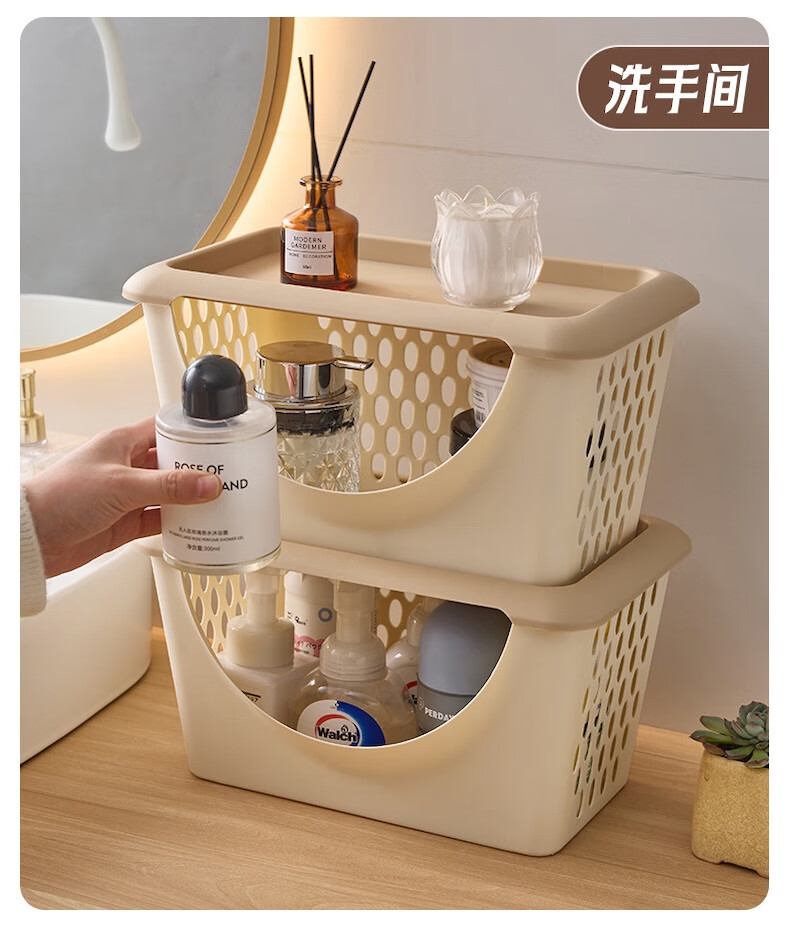 厨房收纳筐带盖水果蔬菜杂物筐子塑料筐家用篮子桌面小杂物收纳盒 带盖多功能收纳筐 32.8*20.5*18.5cm 米色 1个