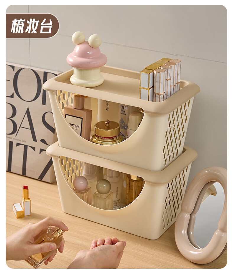 桌面收纳盒桌上多巴胺盒子客厅分格储物办公室置物收纳笔筒小盒子 桌面收纳盒【送贴纸】 15.5*13*12.5cm 奶油色 1个