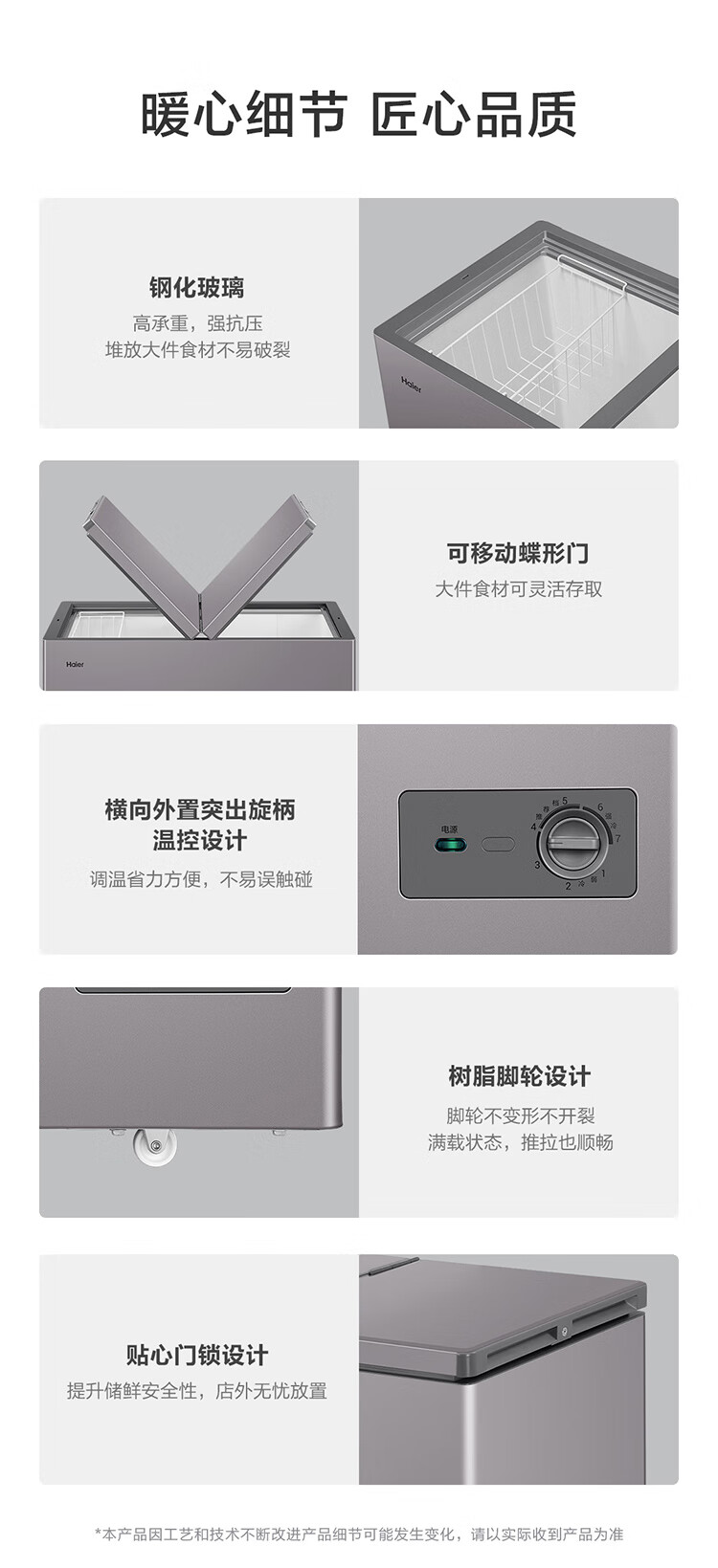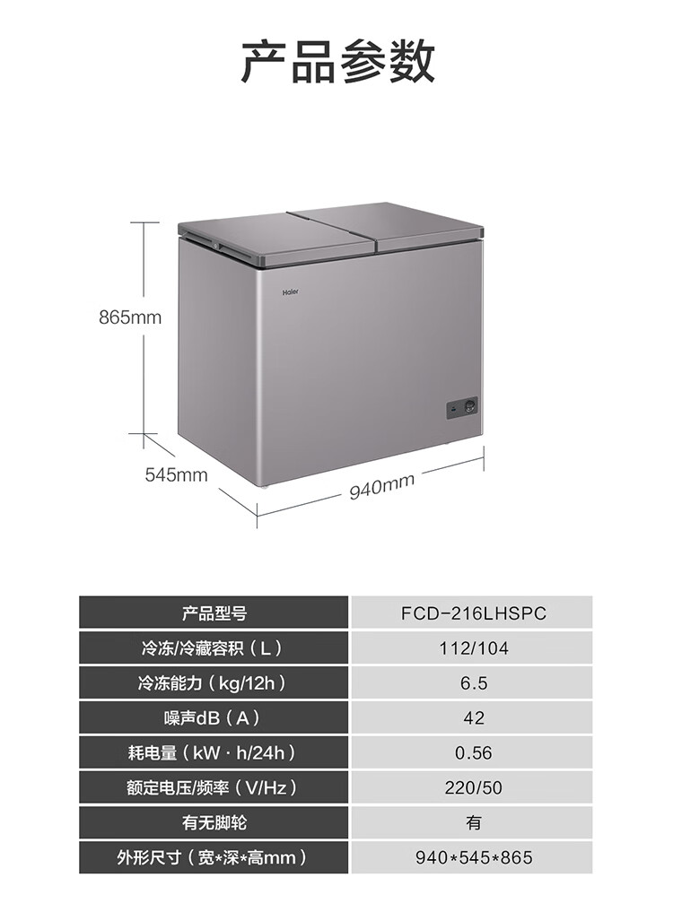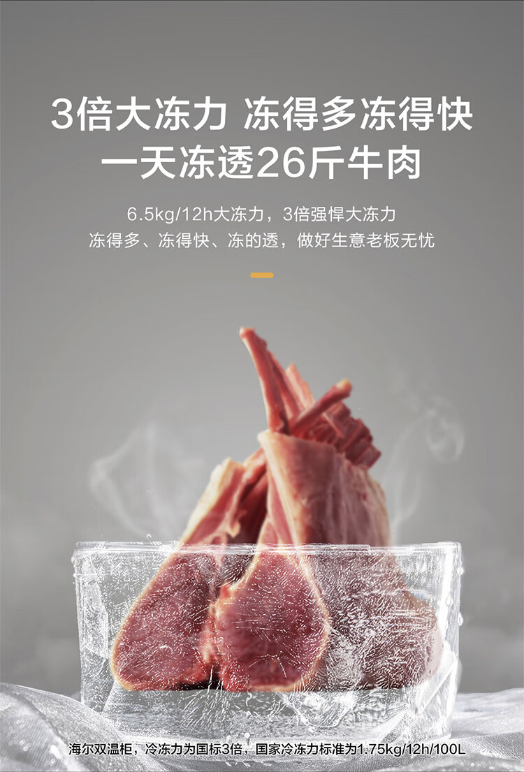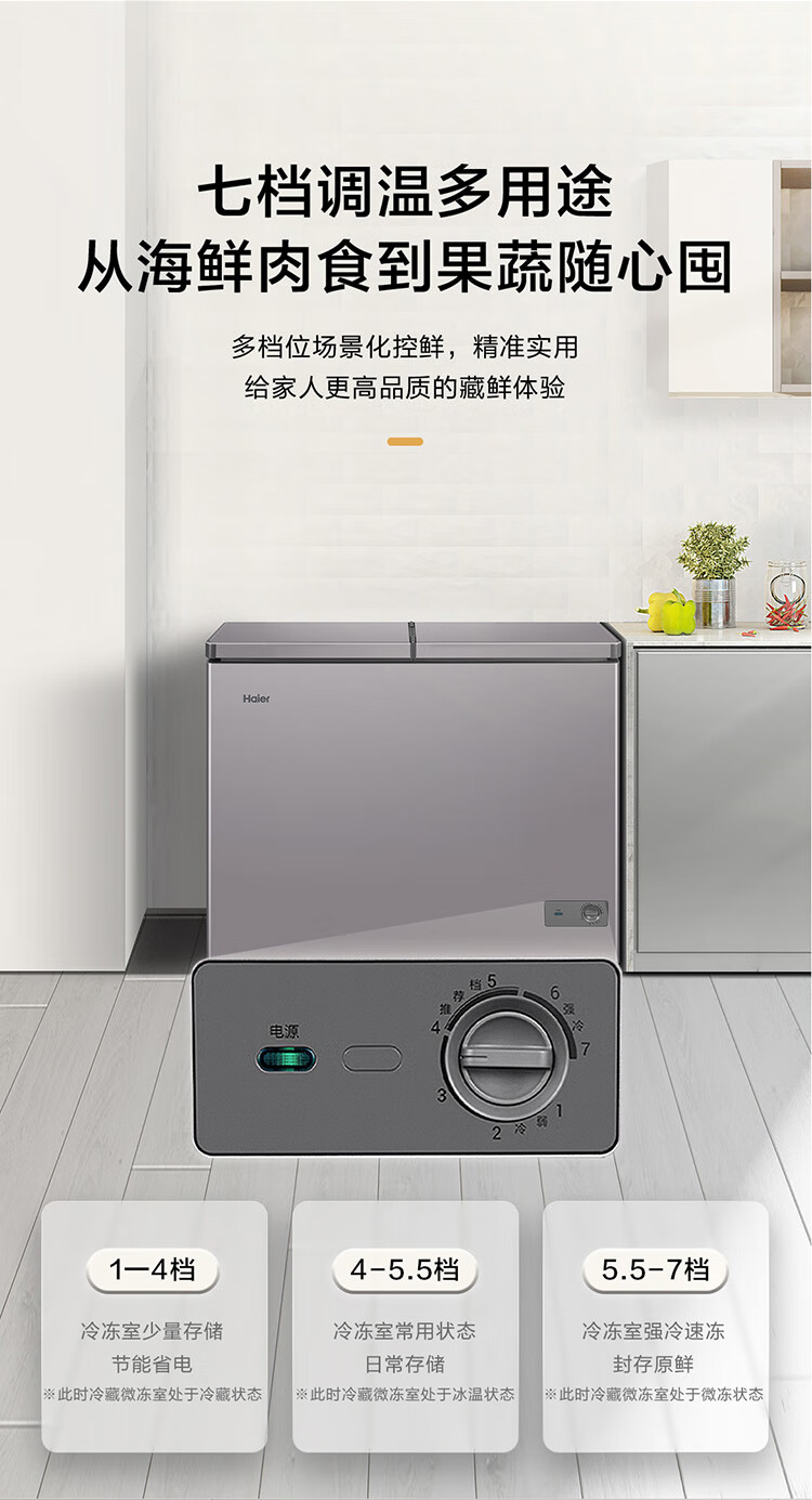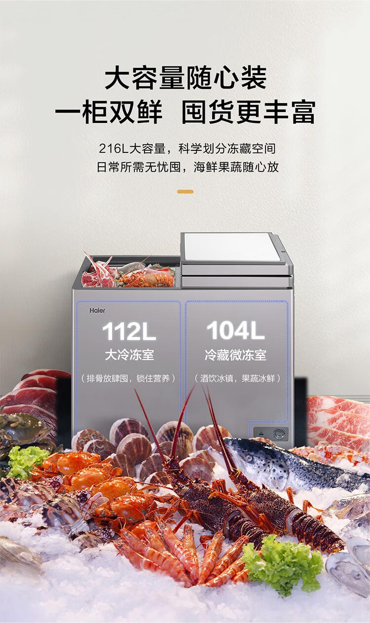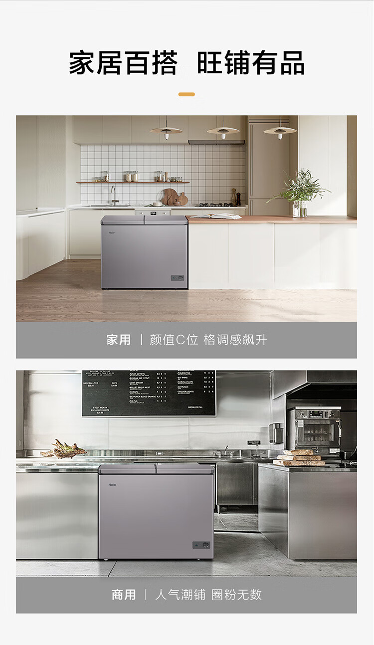 海尔(Haier)冰柜家用减霜一边冷藏一边冷冻家用商用两用双温柜节能省电 炫彩雾晶灰 216L 双重抑菌+约装302斤