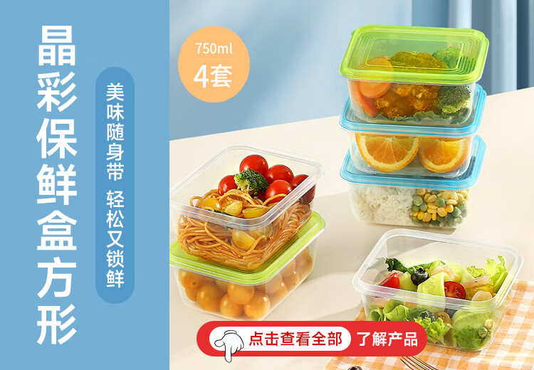 美丽雅【任嘉伦同款】一次性饭盒食品级750ml*4套保鲜打包野餐盒带盖