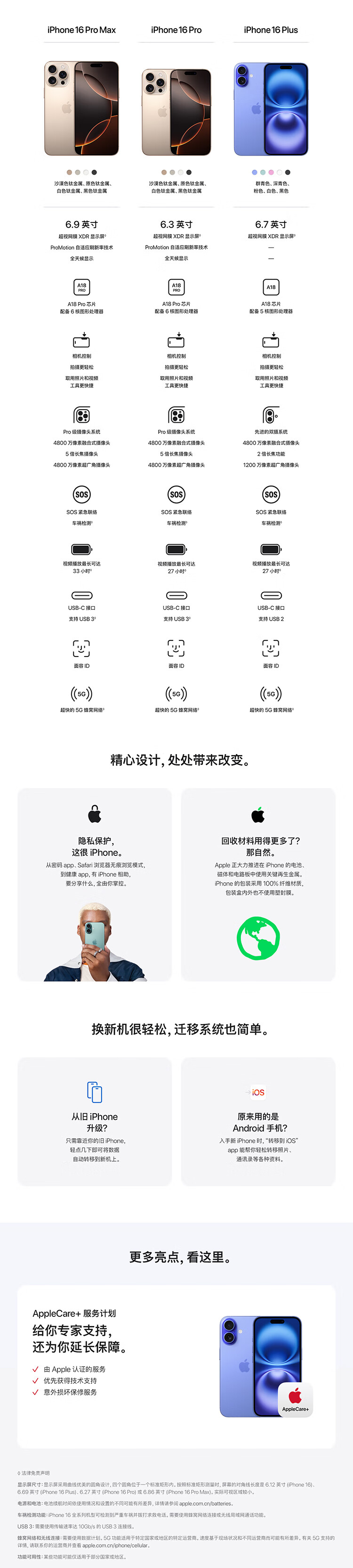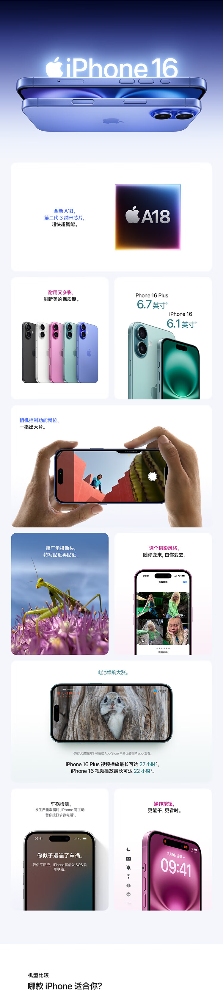 Apple/苹果 iPhone 16 256GB 白色 支持移动联通电信5G 手机【返移动话费券】