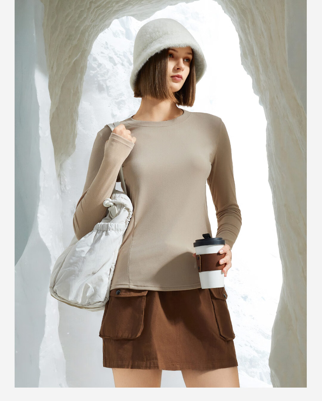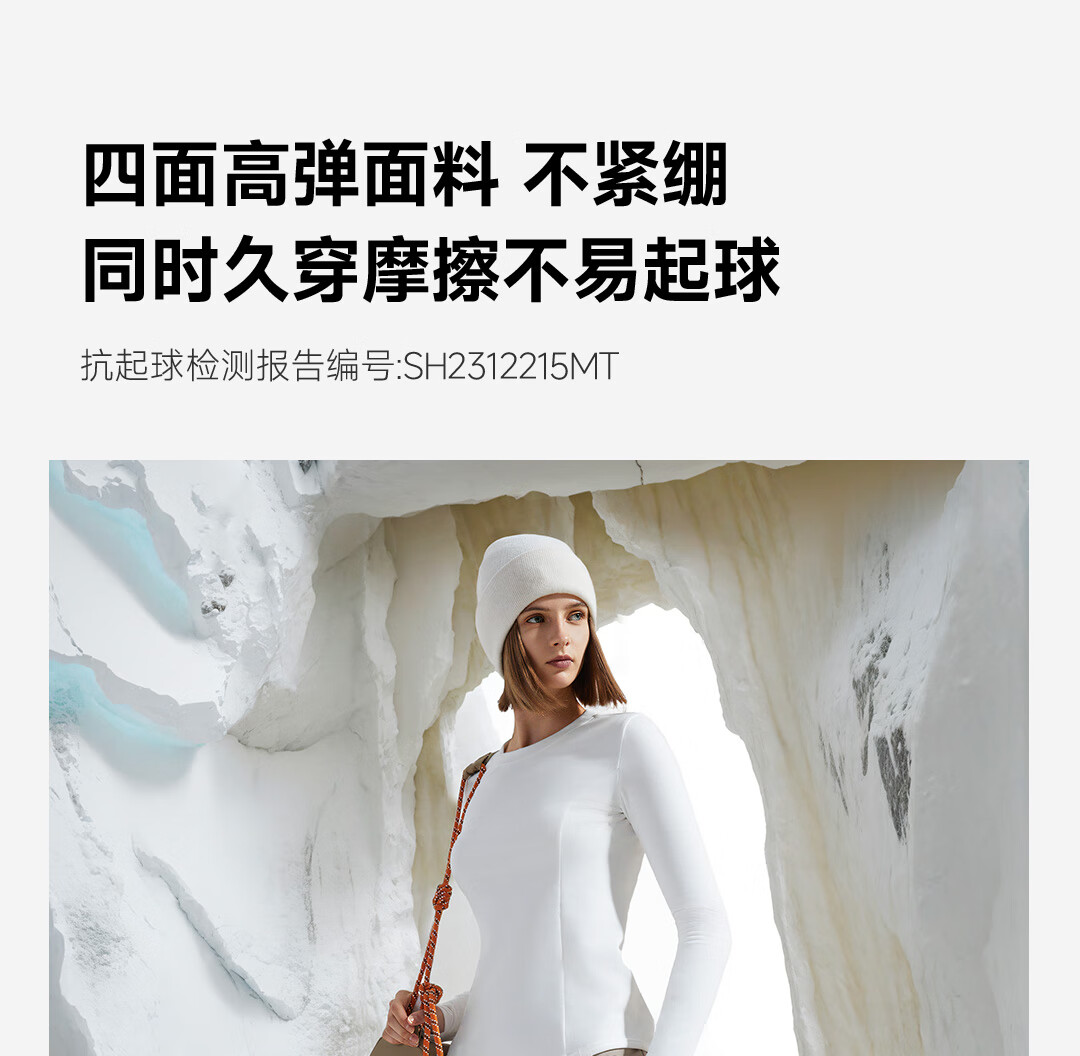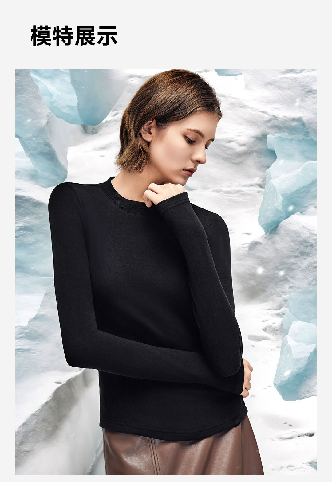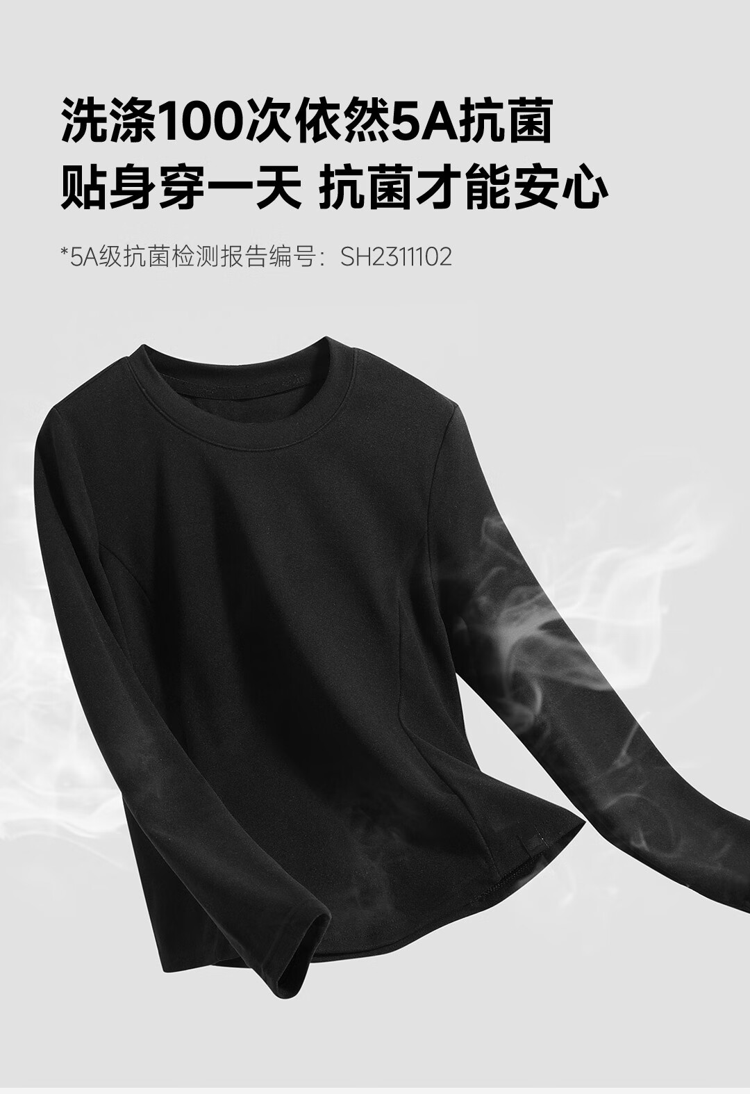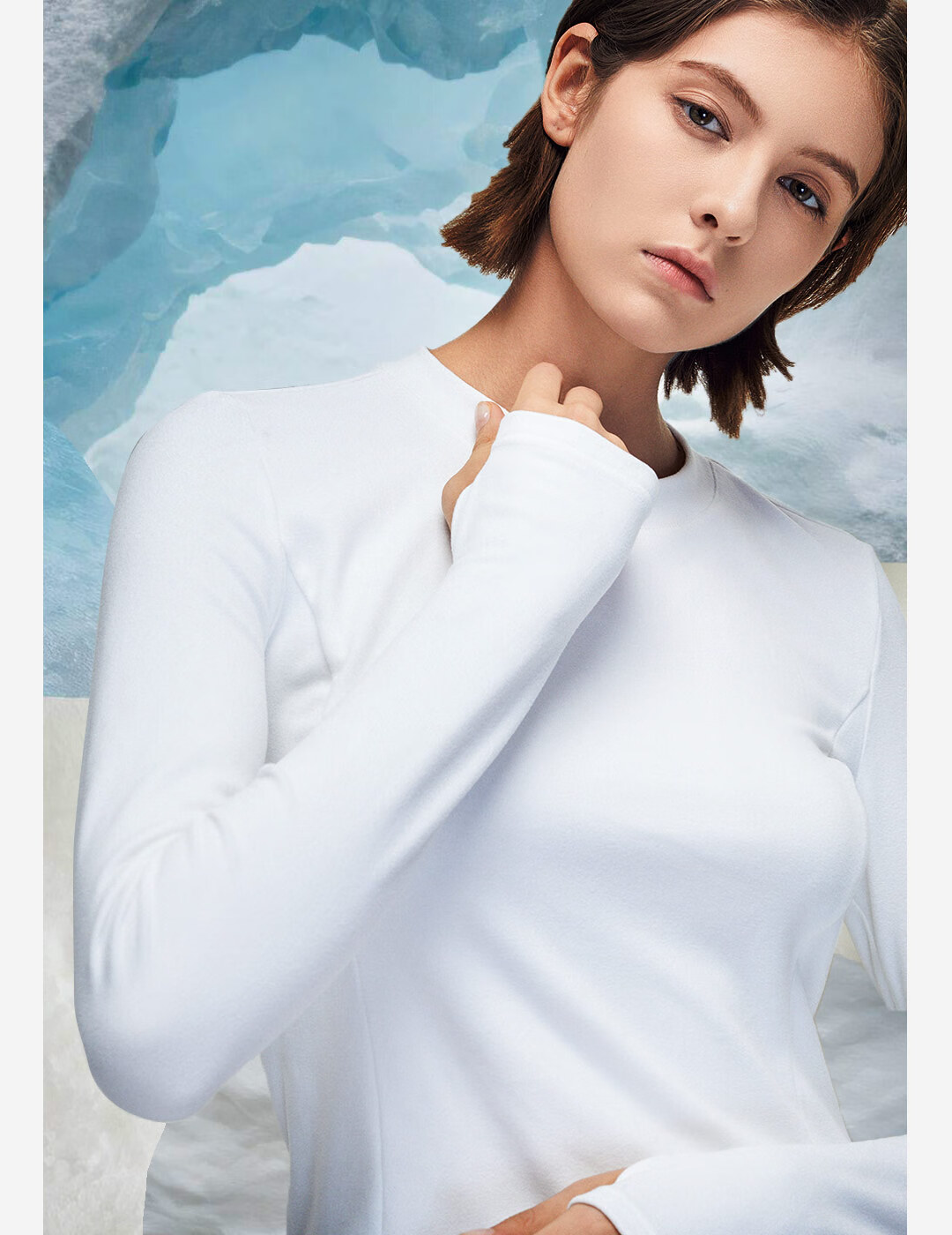 素湃温倍暖保暖打底衫修身显瘦女抗防静电抗菌长袖T恤 雾凇白 S