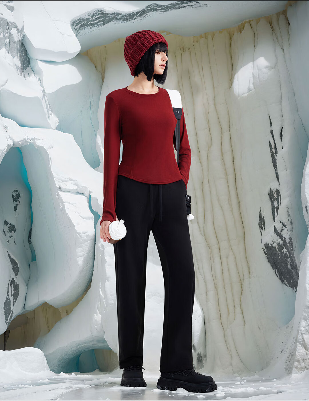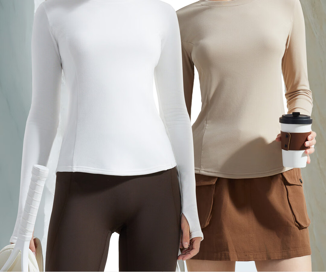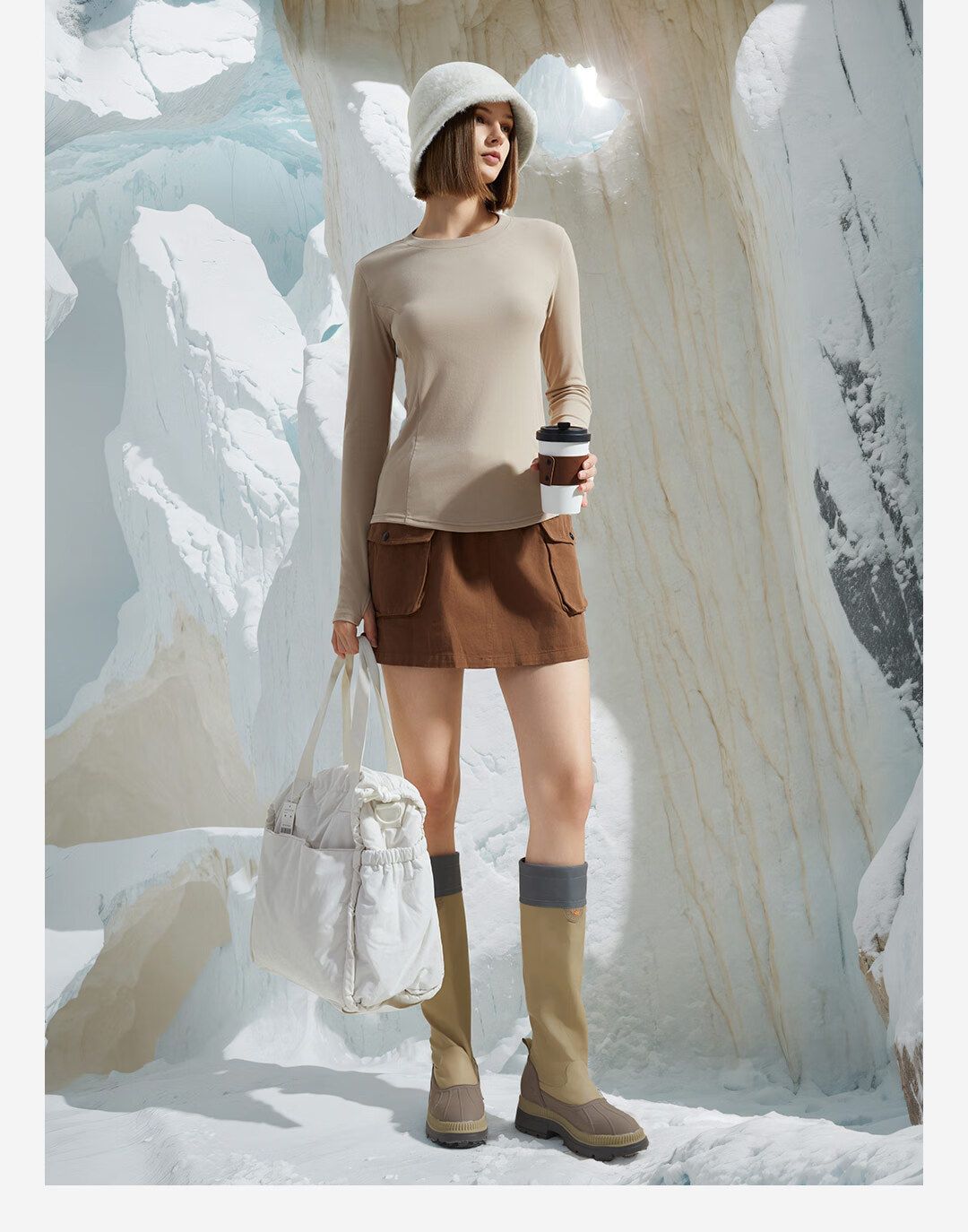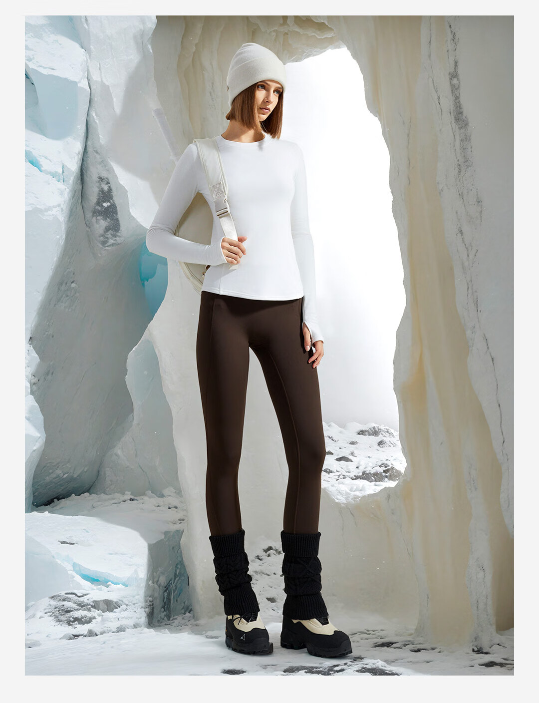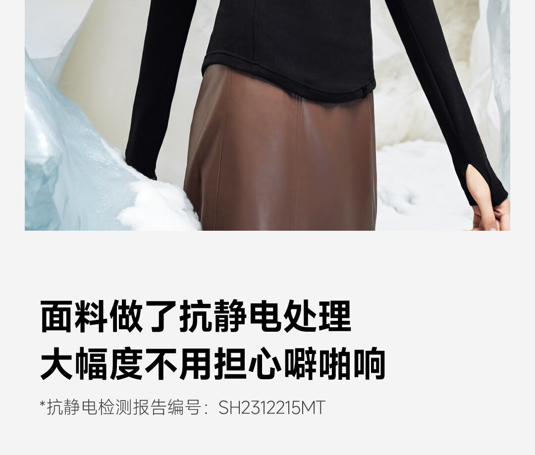 素湃温倍暖保暖打底衫修身显瘦女抗防静电抗菌长袖T恤 雾凇白 S