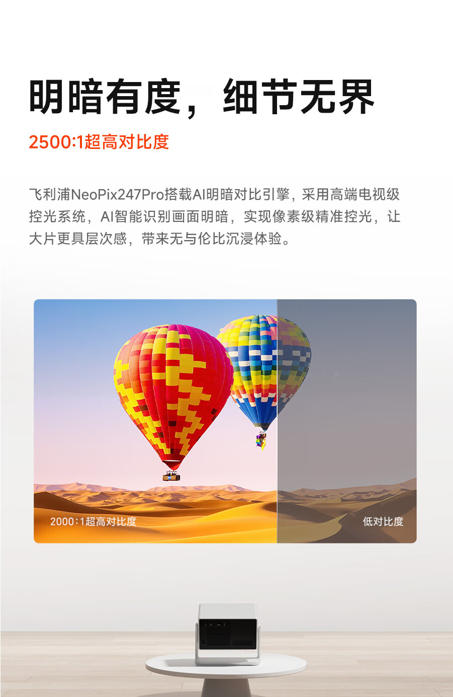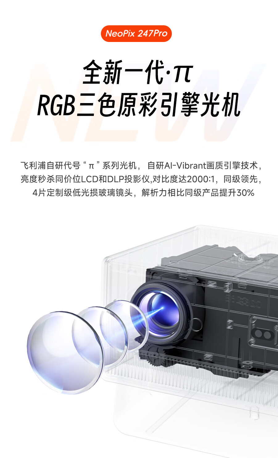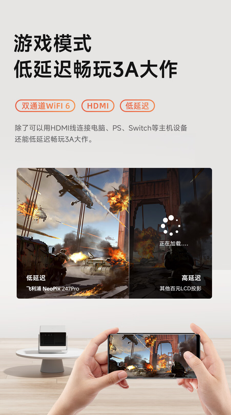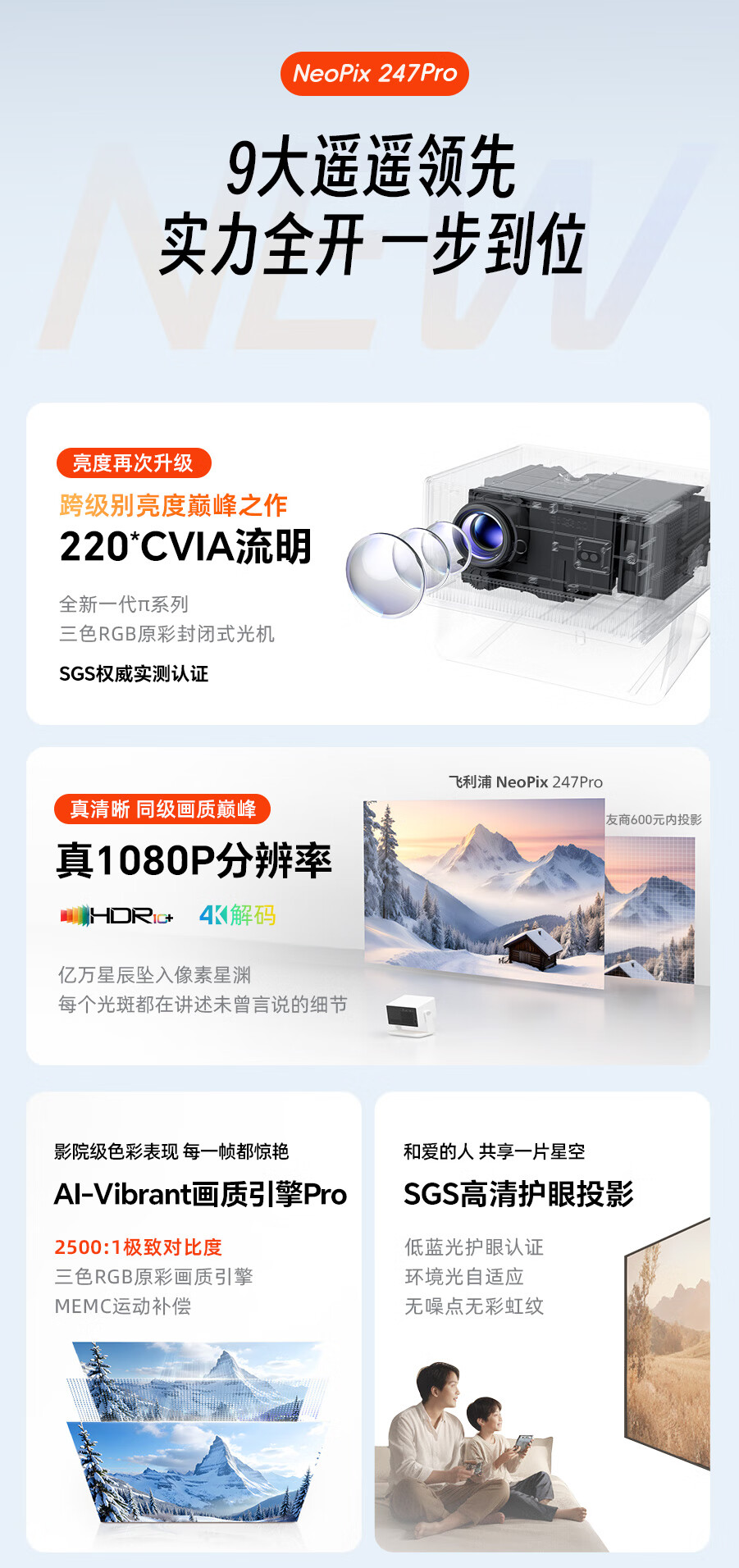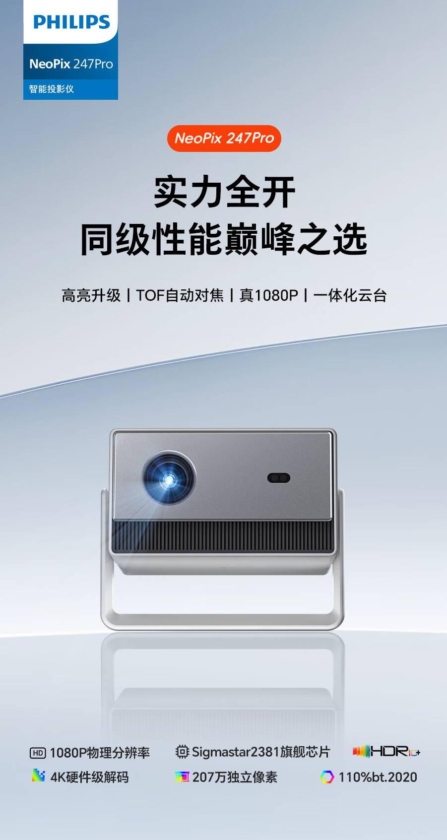 飞利浦(PHILIPS)NeoPix 247Pro投影仪家用 家庭影院电视 卧室云台手机游戏投影机(高亮升级 TOF自动对焦 1080P )