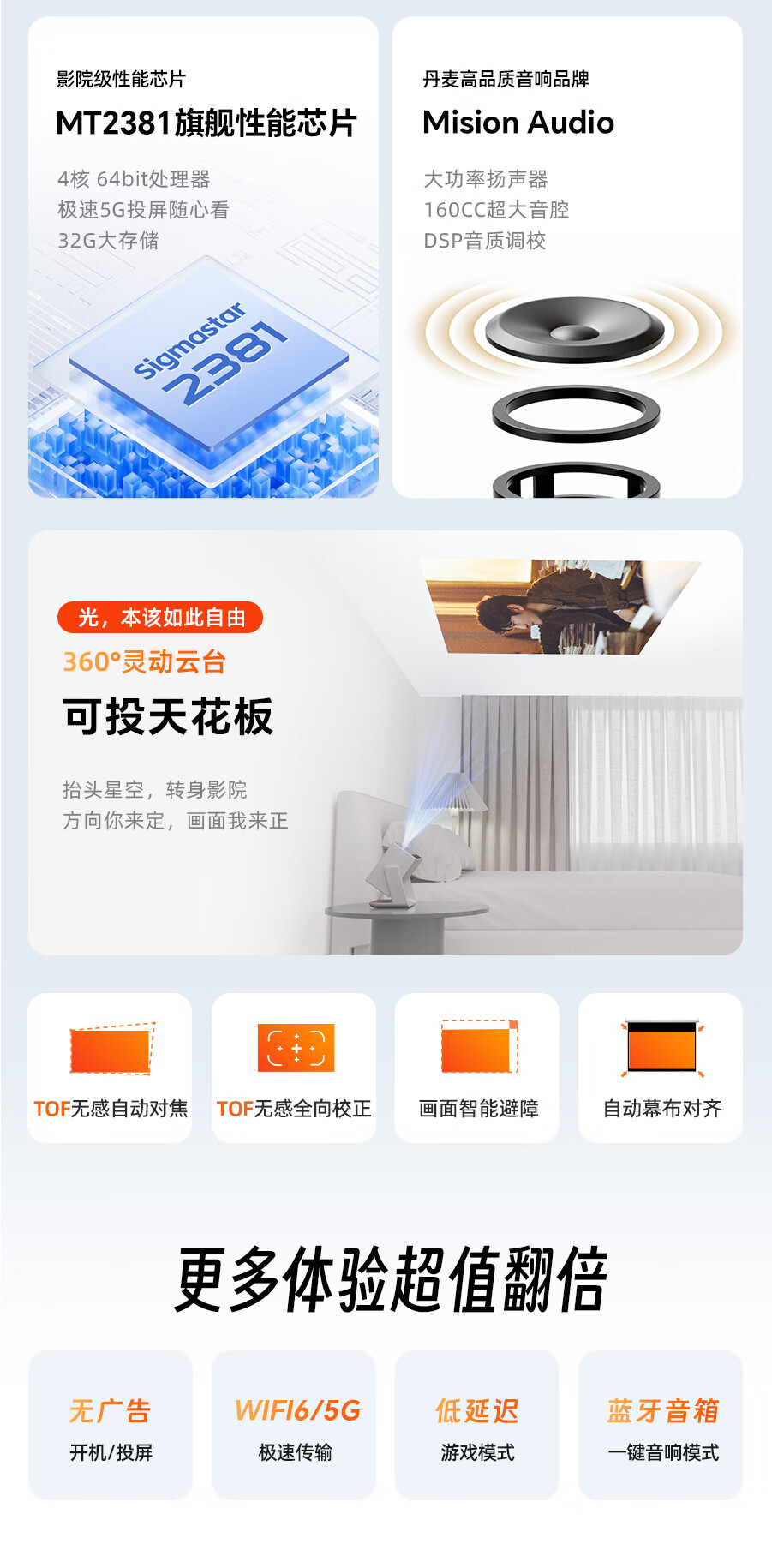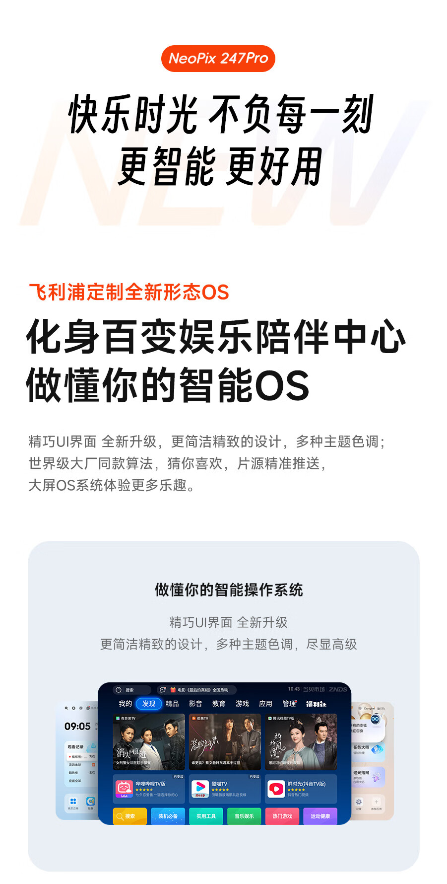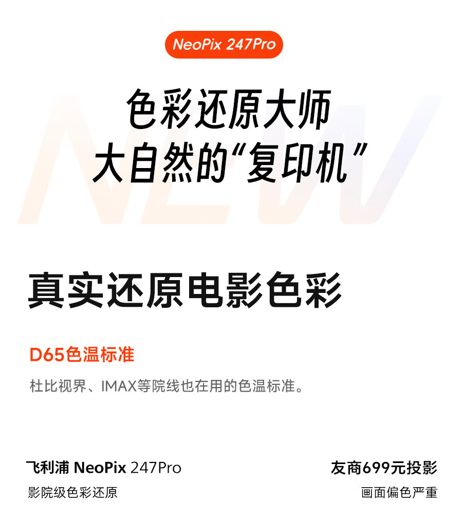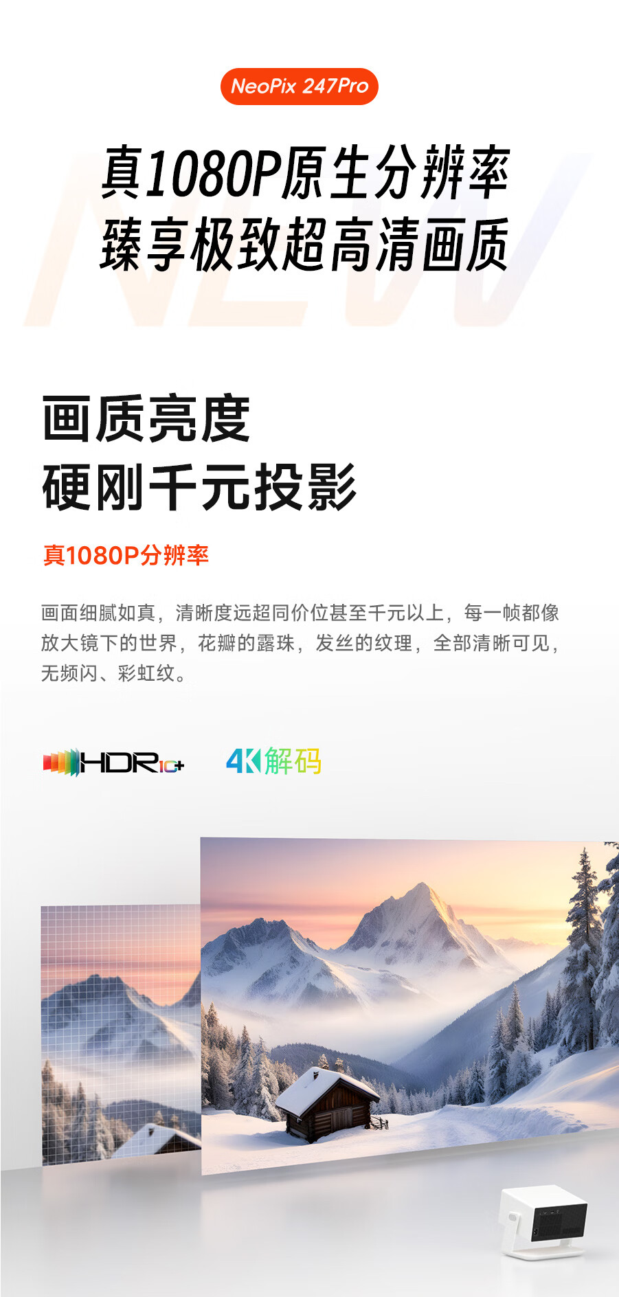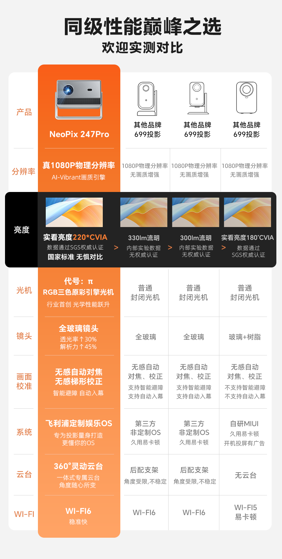 飞利浦(PHILIPS)NeoPix 247Pro投影仪家用 家庭影院电视 卧室云台手机游戏投影机(高亮升级 TOF自动对焦 1080P )