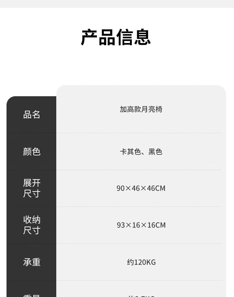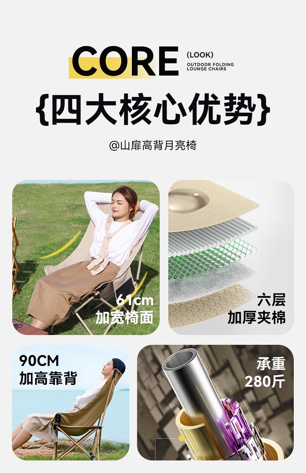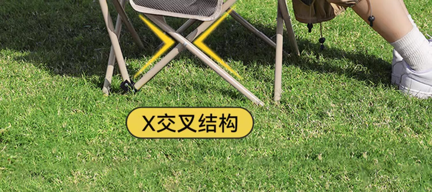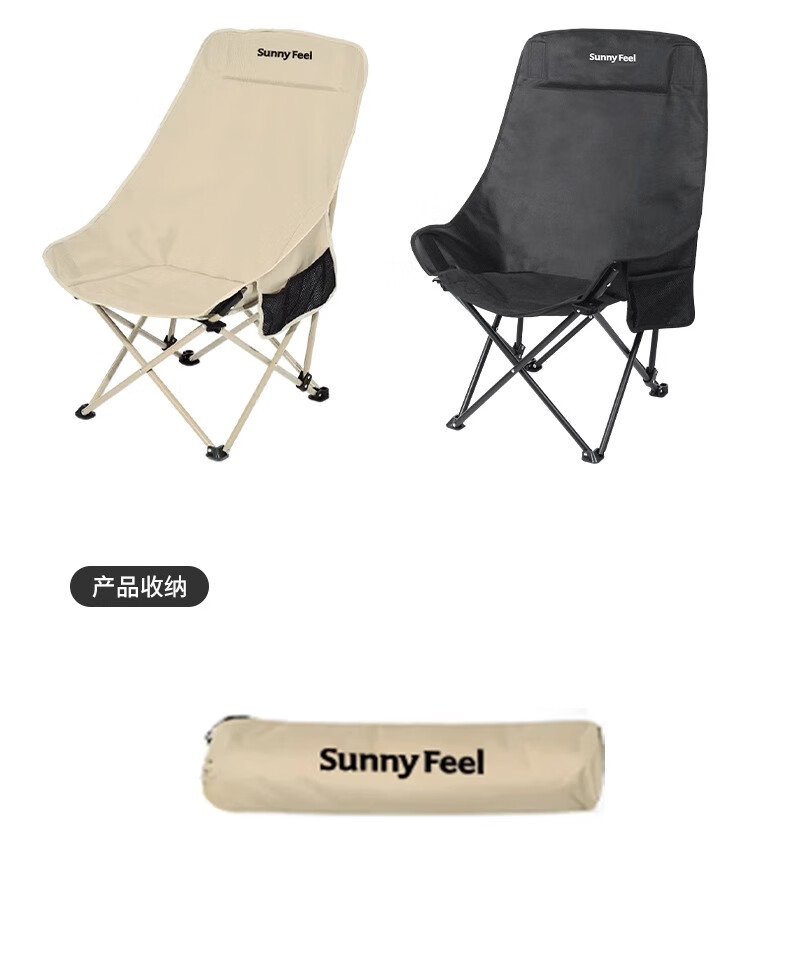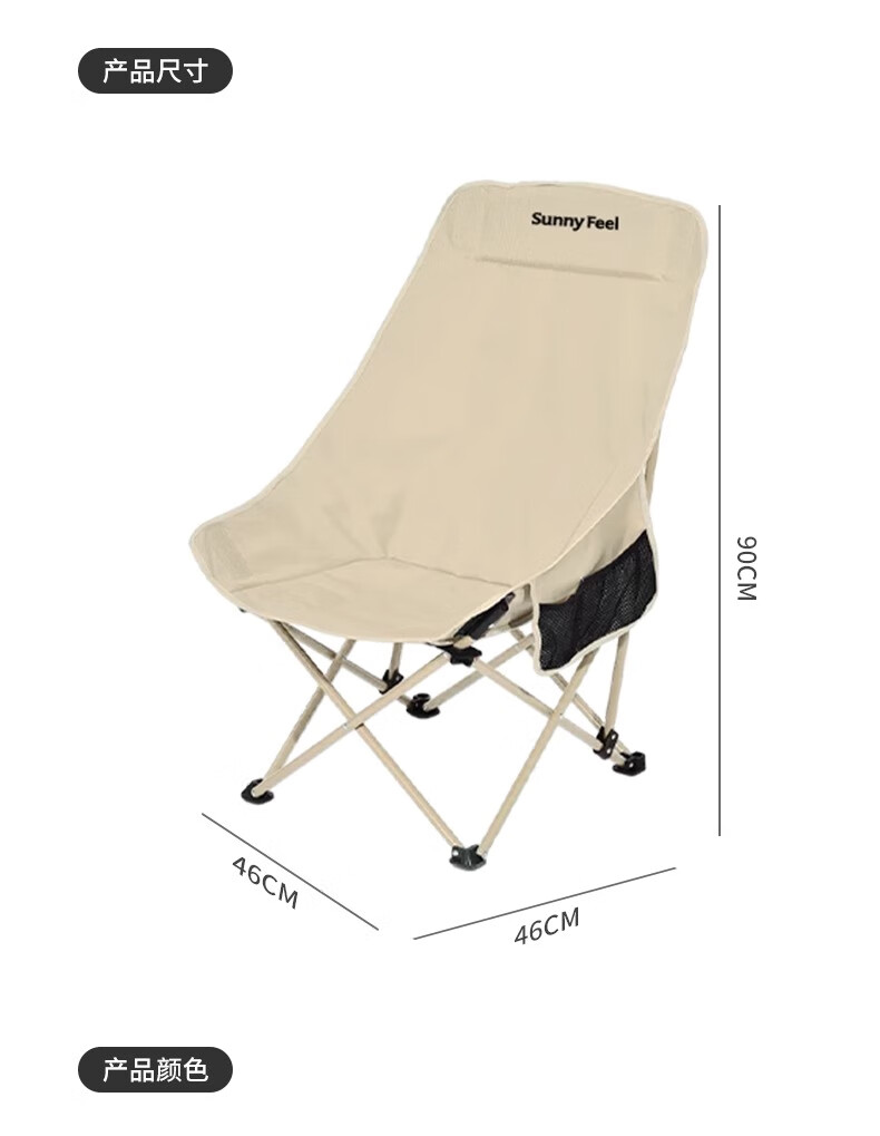 山扉巢悦高背月亮椅户外折叠椅便携式野餐凳午休钓鱼躺椅露营桌椅卡其