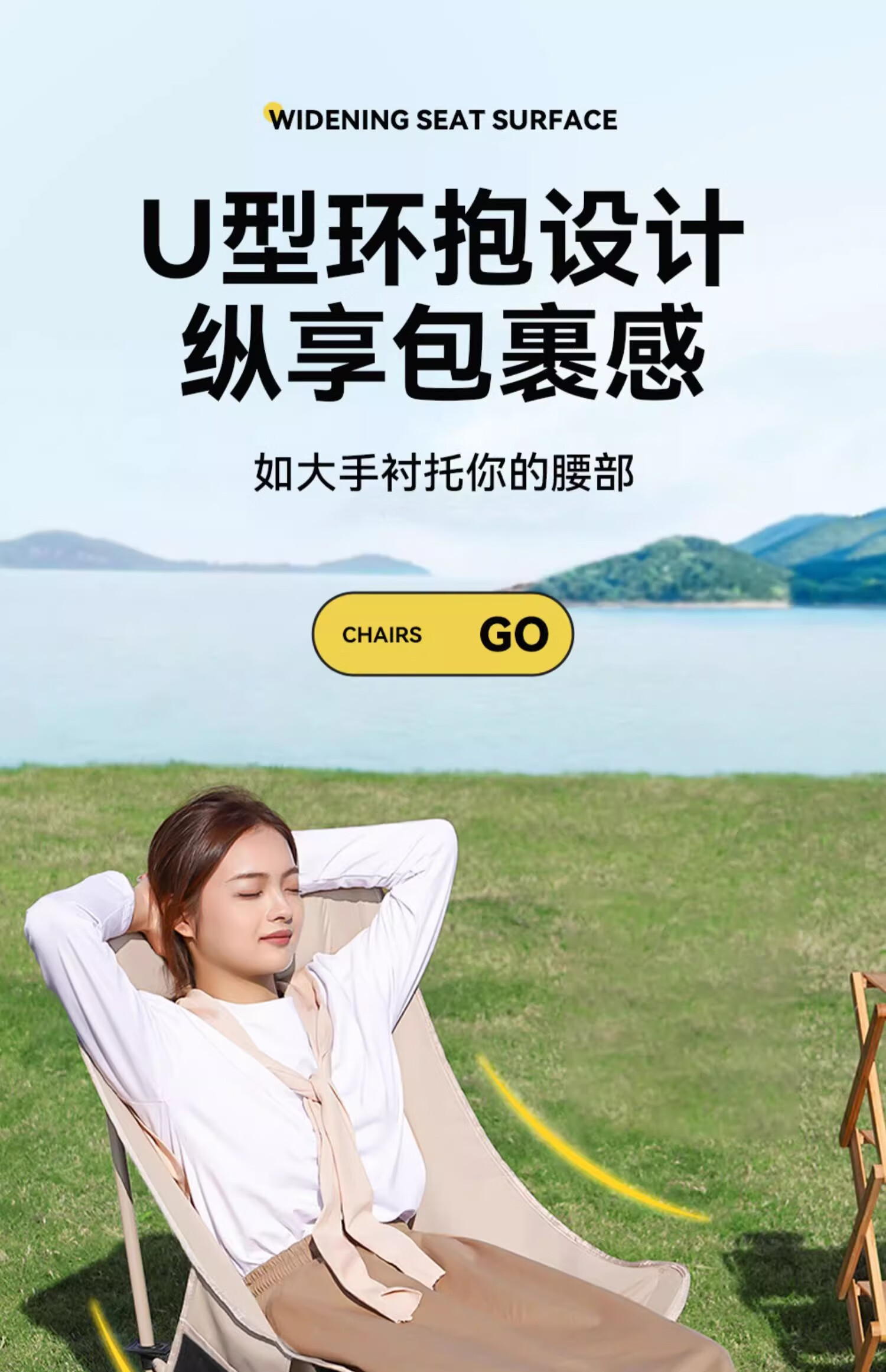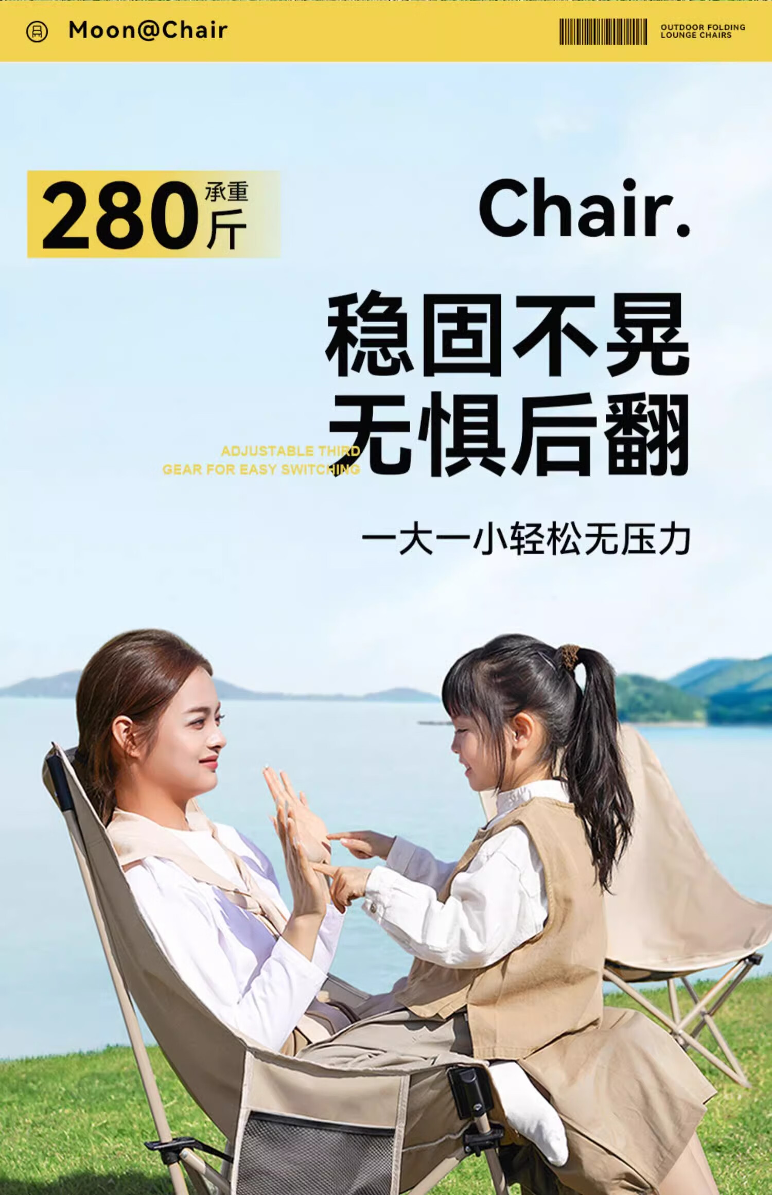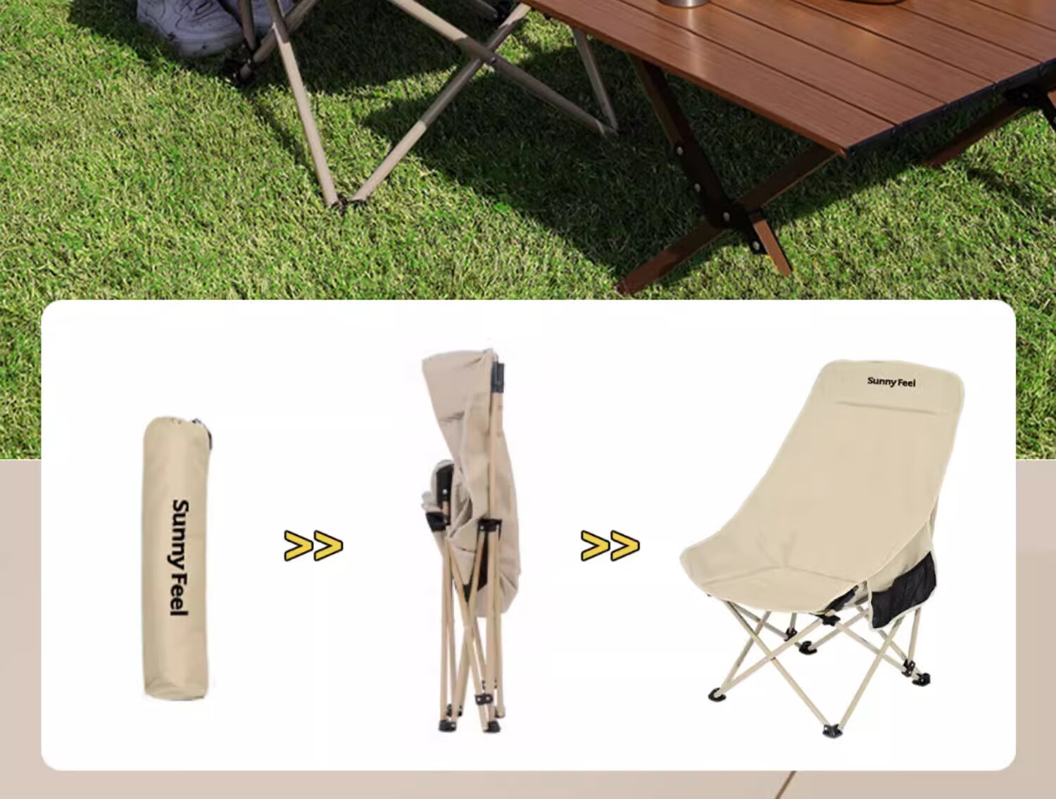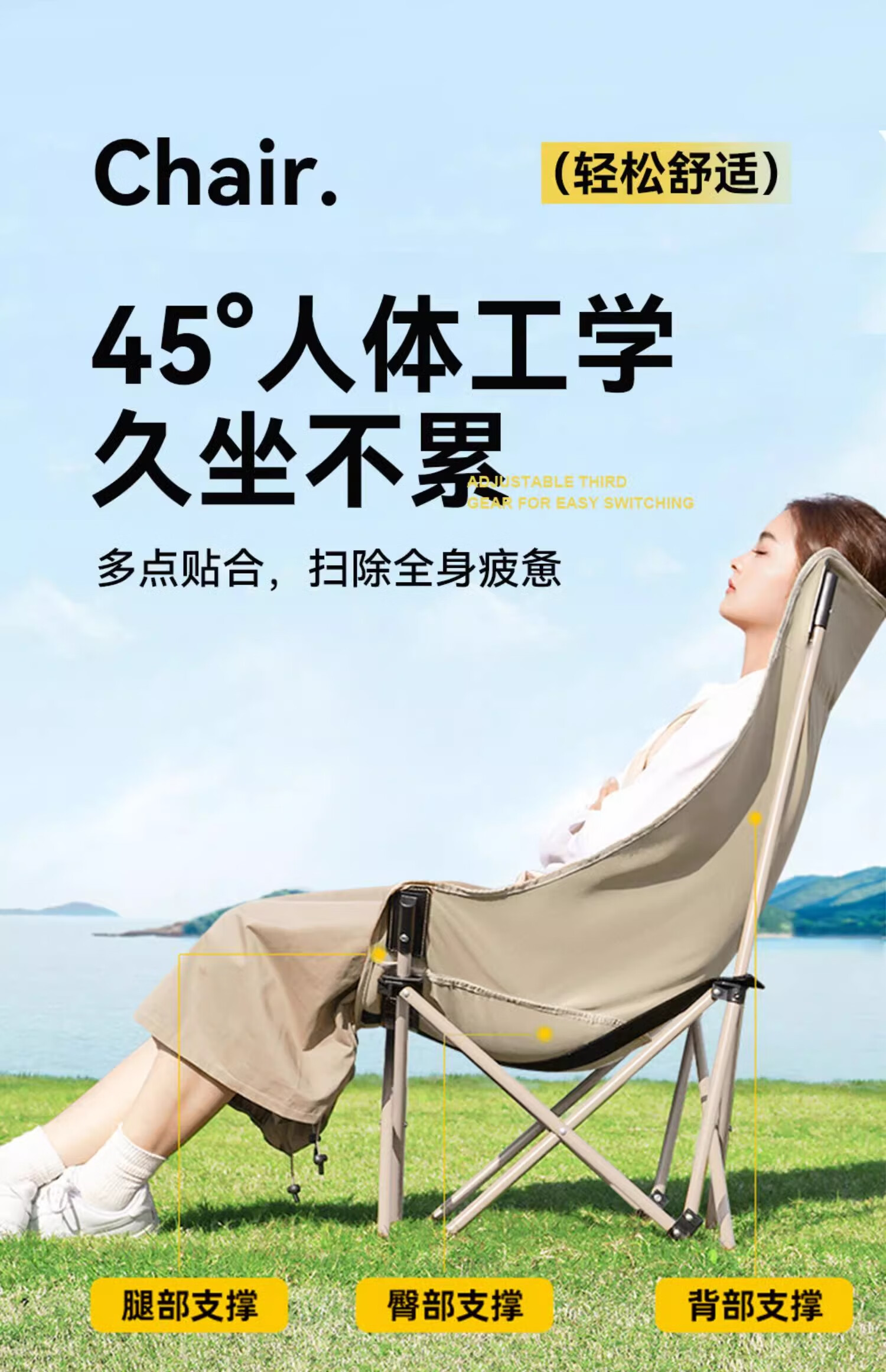 山扉巢悦高背月亮椅户外折叠椅便携式野餐凳午休钓鱼躺椅露营桌椅卡其