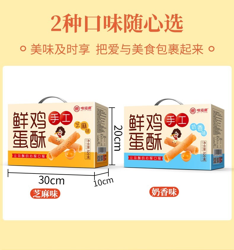 味滋源传统手信糕点心 手工酥饼干 休闲零食懒人速食小吃 鸡蛋酥520g/箱(芝麻味) 1件
