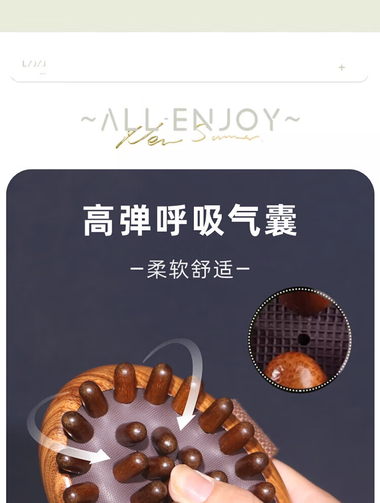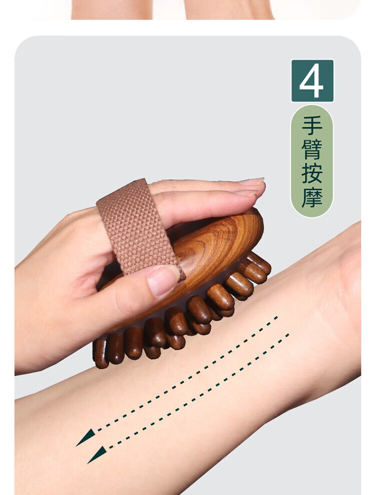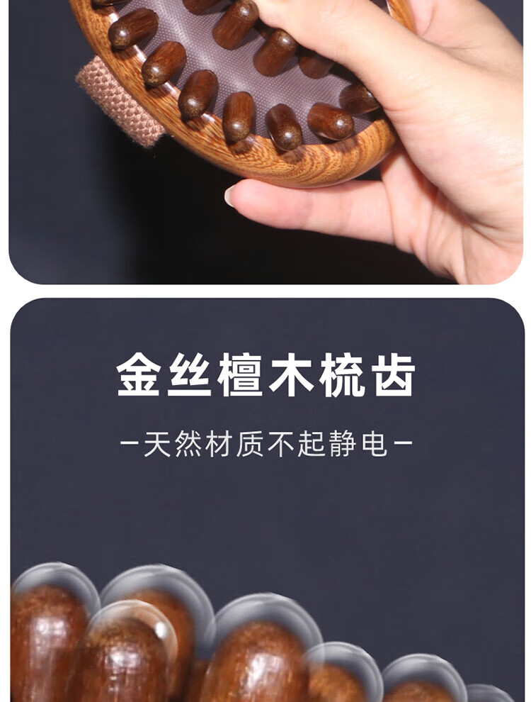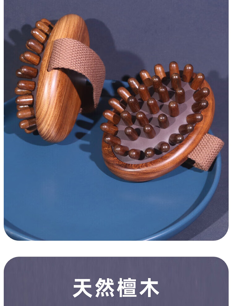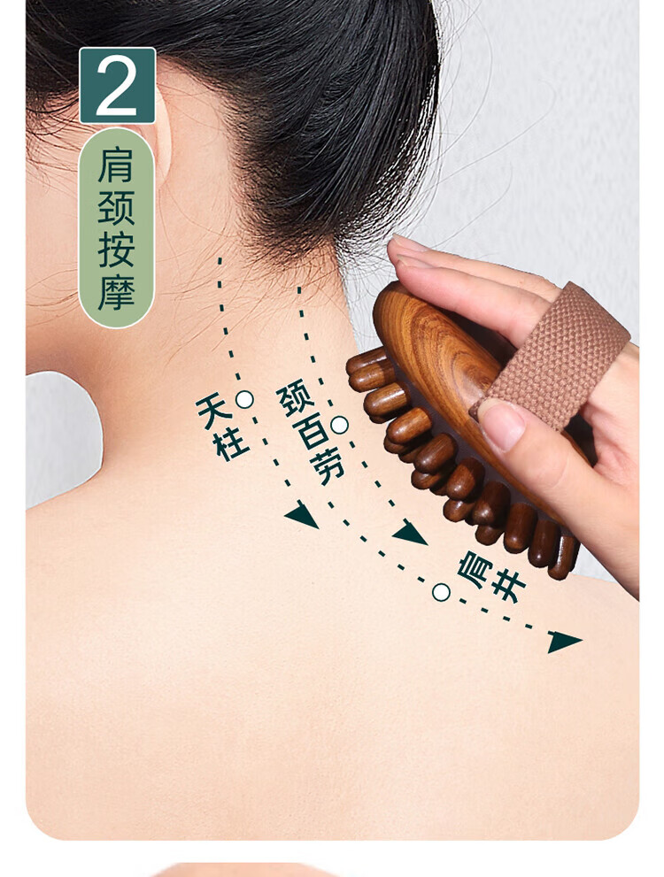 通用天然檀木带脉经络刷按摩神器全身通用疏通筋络揉腹部肚子腿部 黑金檀木-按摩刷梳1个装
