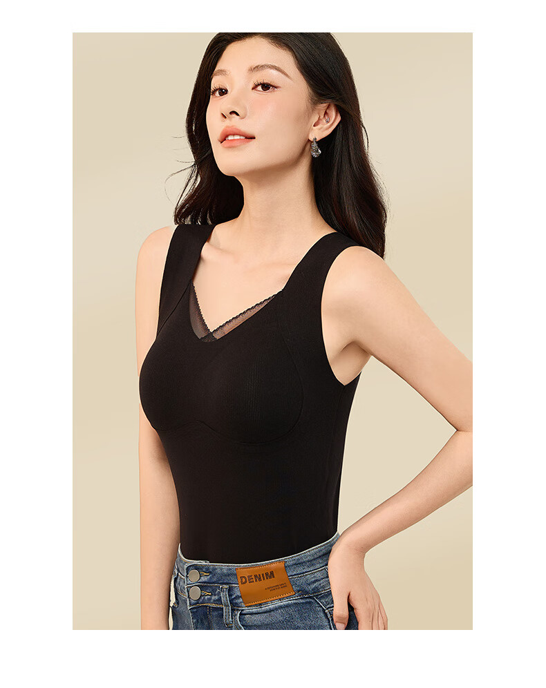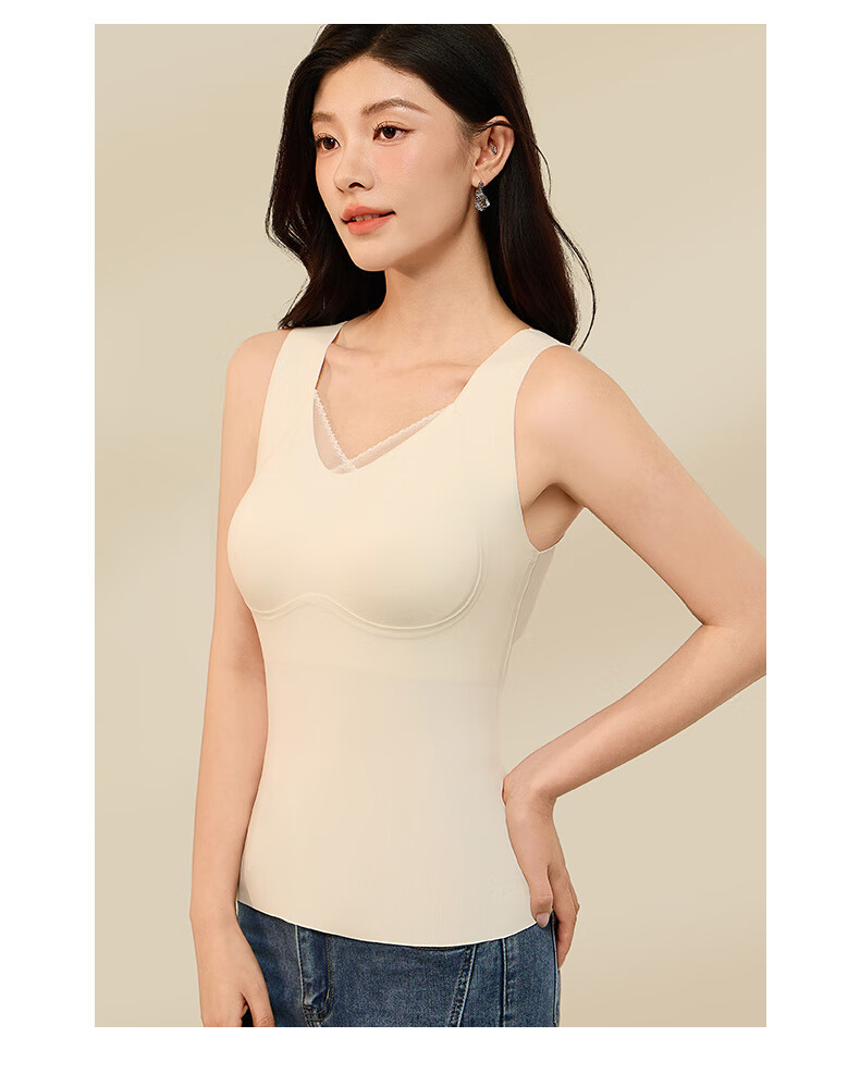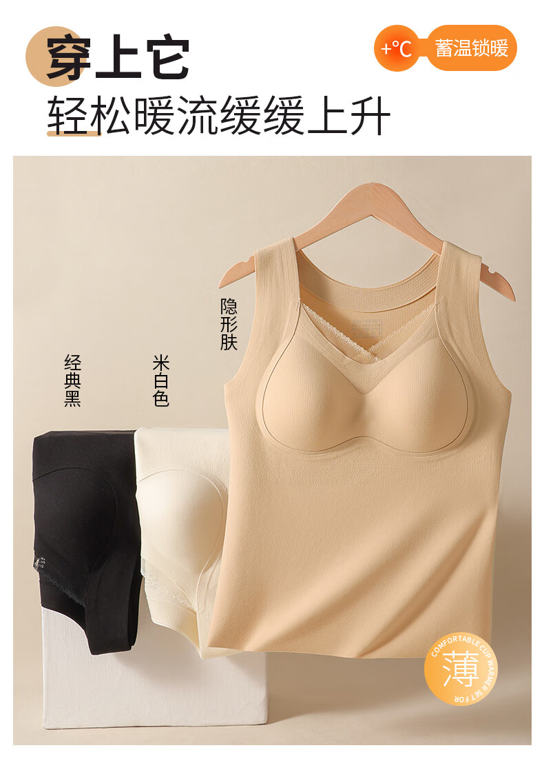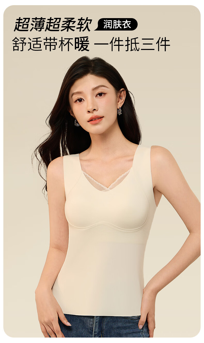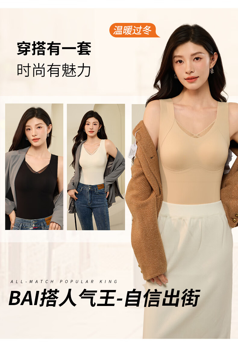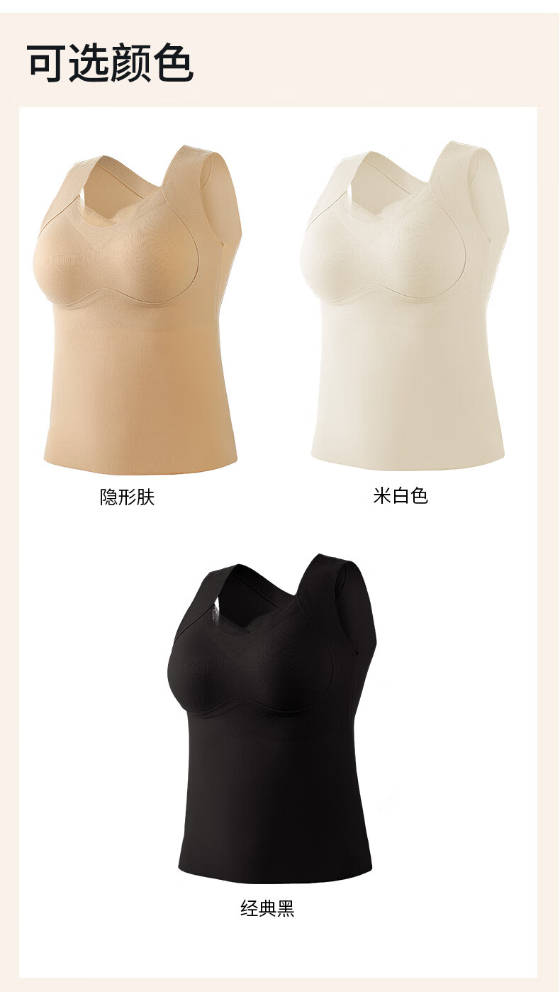 浪莎(LangSha)蕾丝花边美背背心女无痕双层吊带打底衫内搭外穿修身显瘦 白色+白色两件 L 建议体重130-180斤