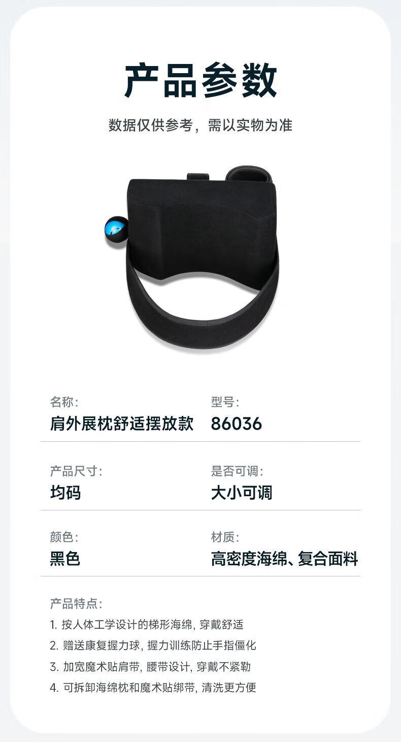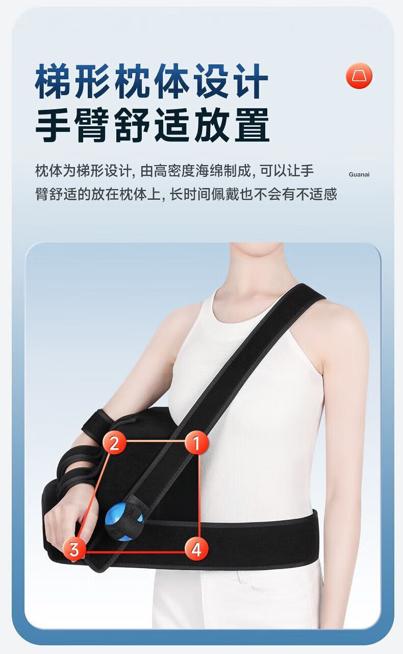 冠爱(GUANAI)可调肩外展枕肱骨外展固定支具外展包肩袖损伤肩关节护具 舒适摆放款(右肩)45度 顺丰加急