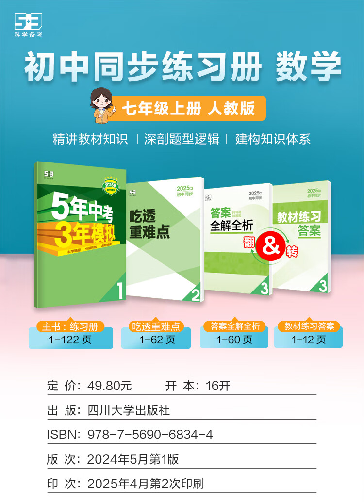 53初中同步练习册七年级上册下册 2025秋五三同步测试卷初一七年级练习单元期中期末五年中考三年模拟七上 七上 数学【北京版】2025秋