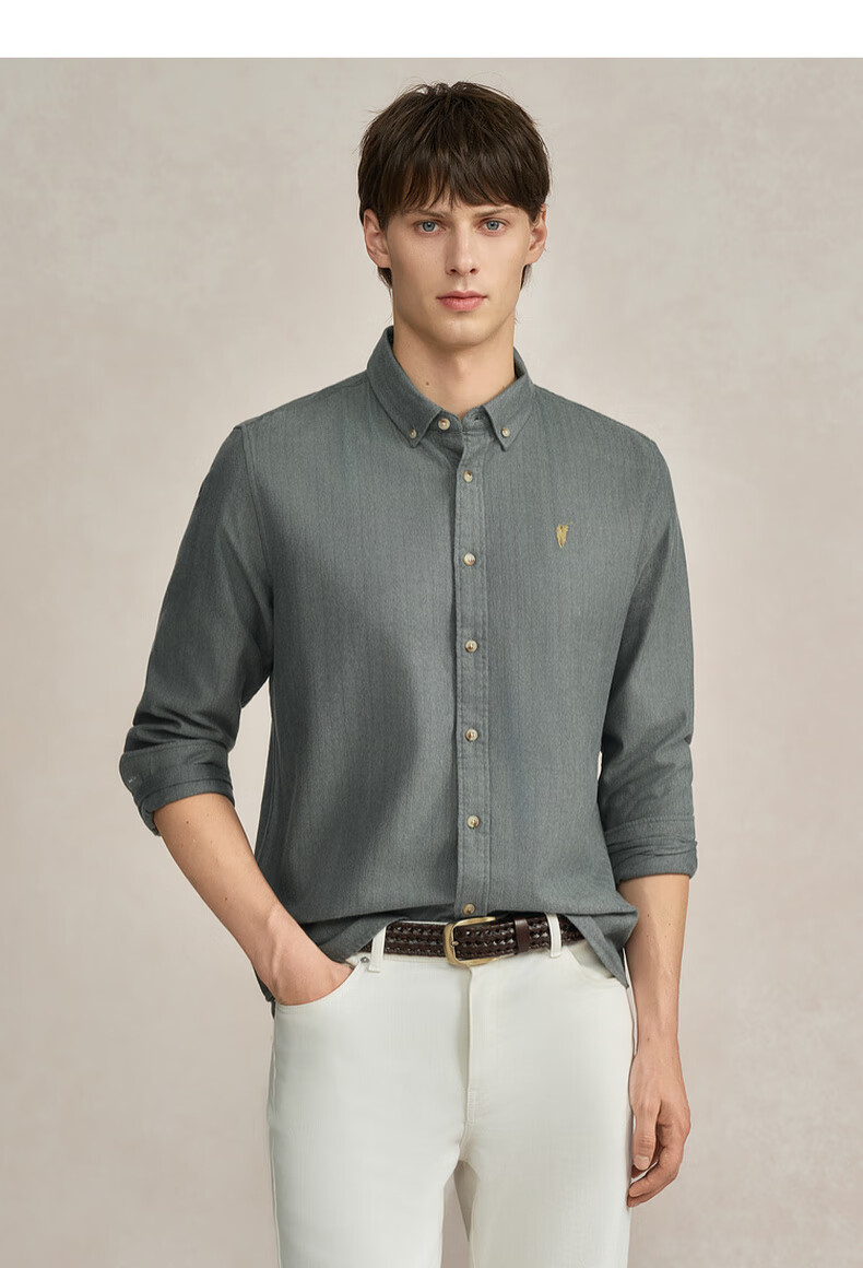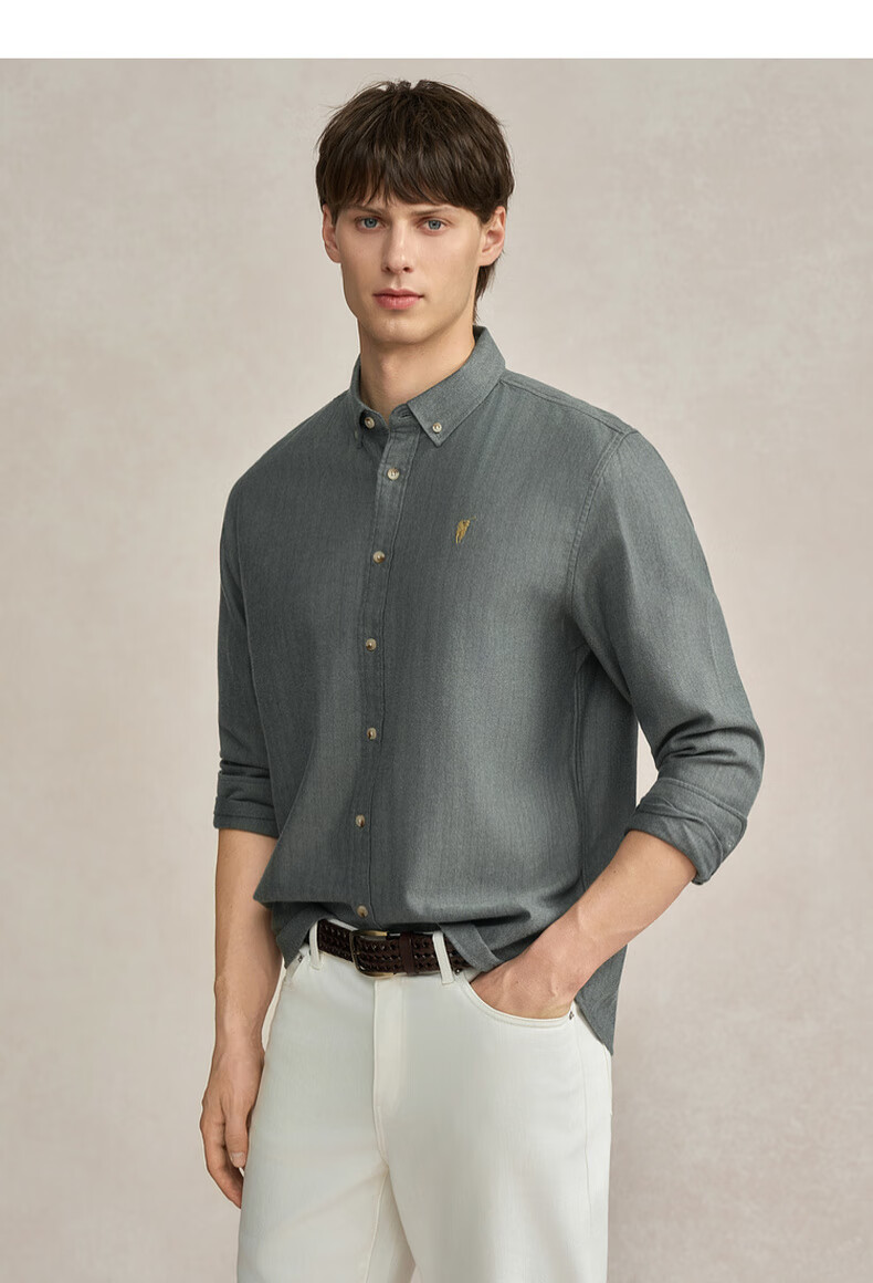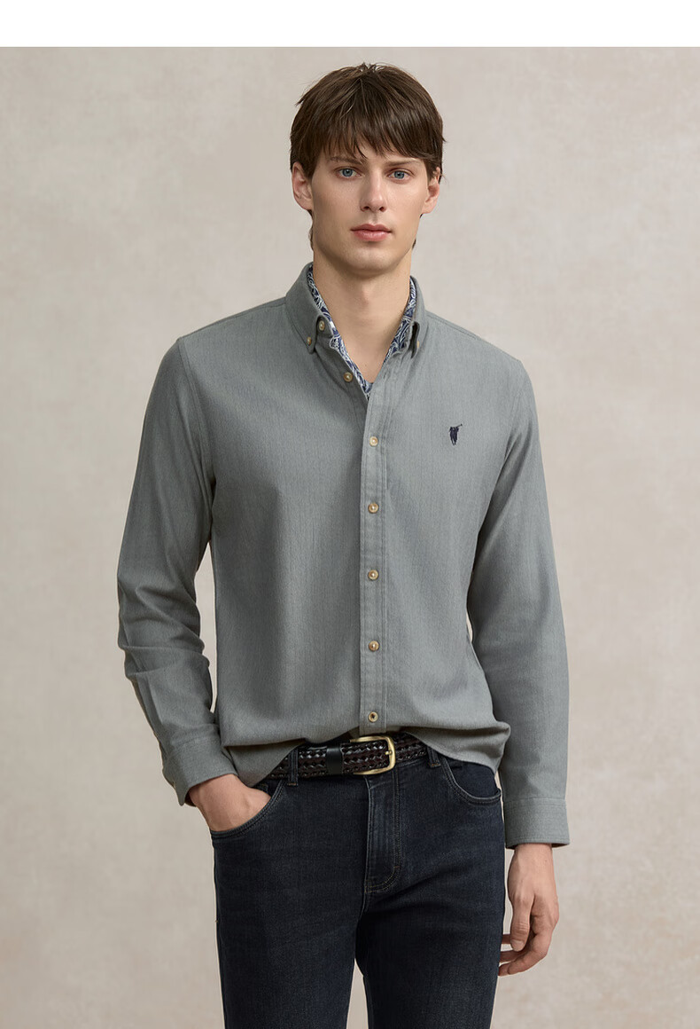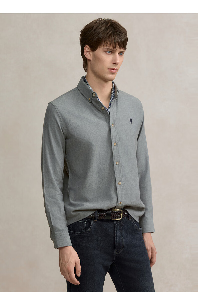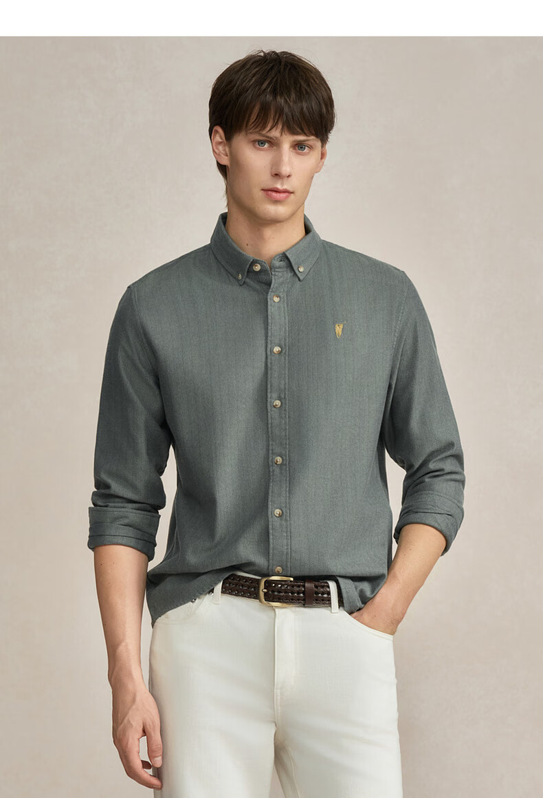 POLOWALK男装2025冬季新品男式长袖衬衫商务休闲职场男士上衣长衬 绿色 M