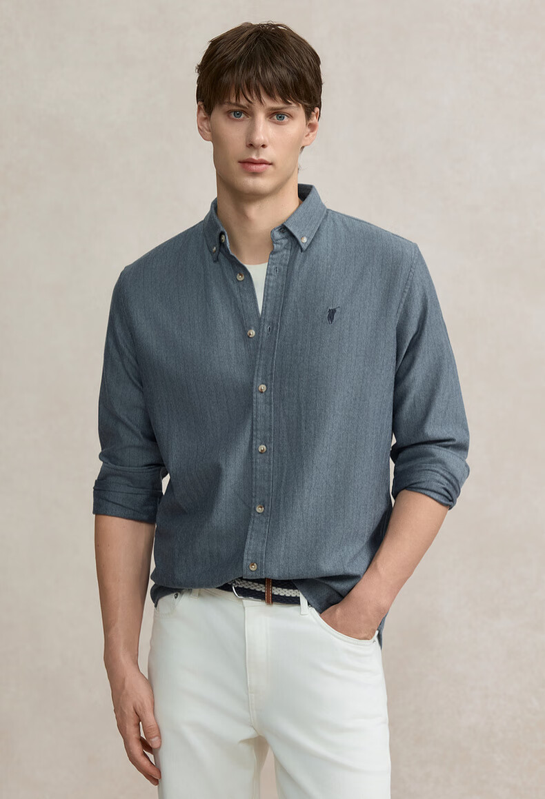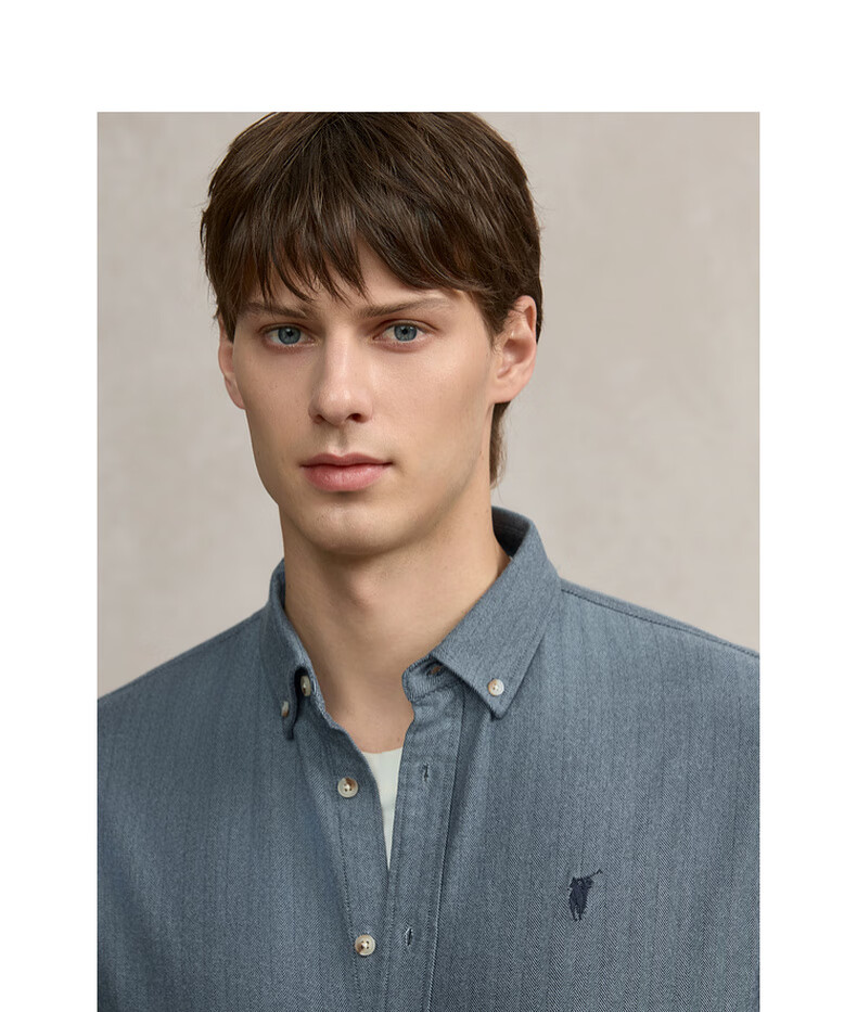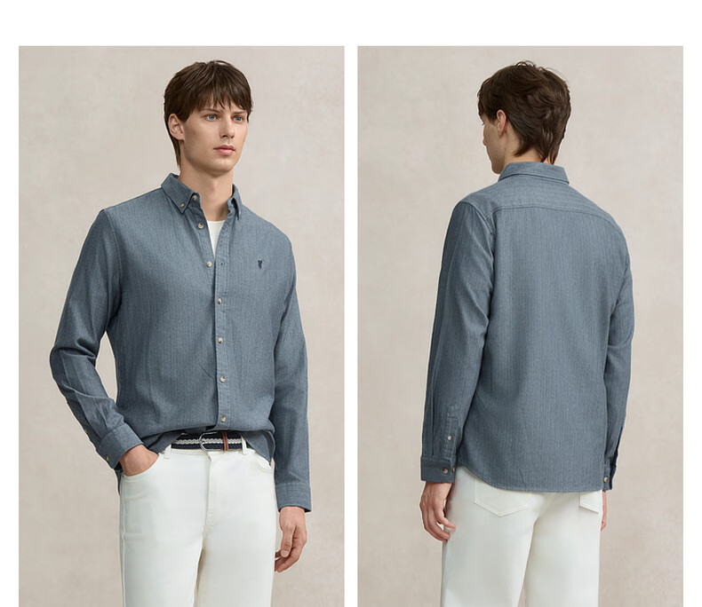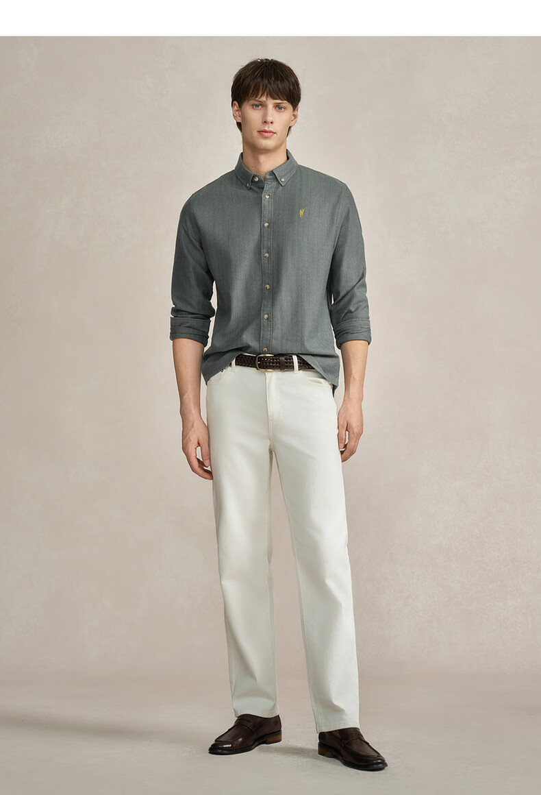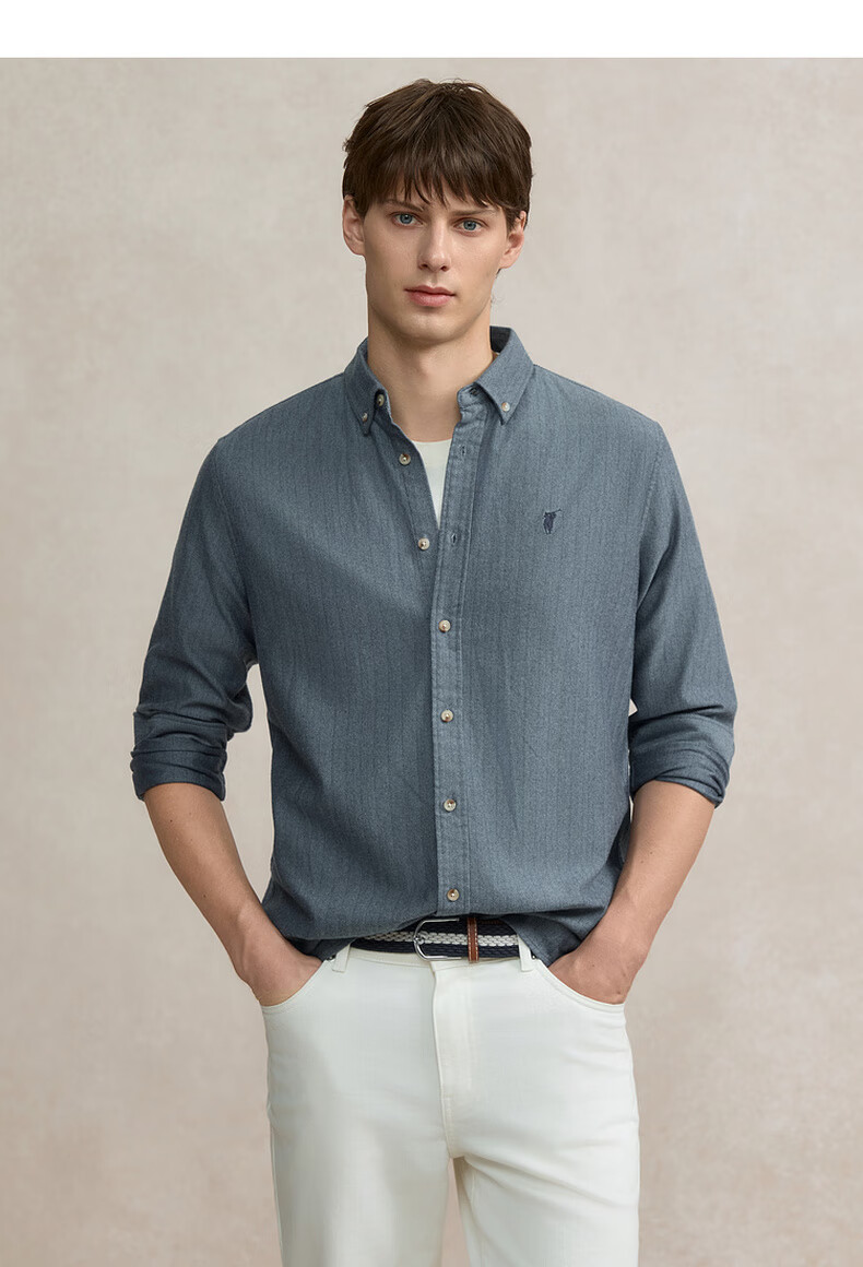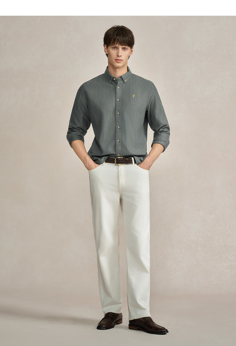 POLOWALK男装2025冬季新品男式长袖衬衫商务休闲职场男士上衣长衬 绿色 M