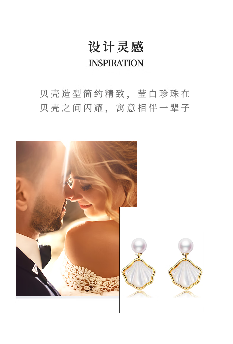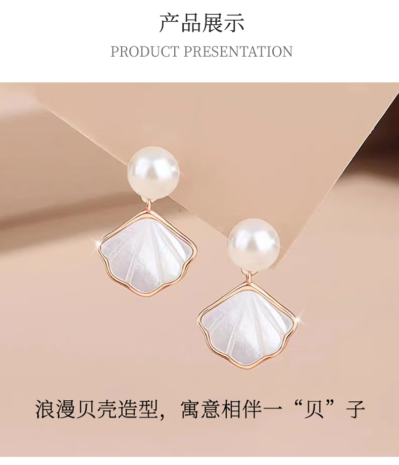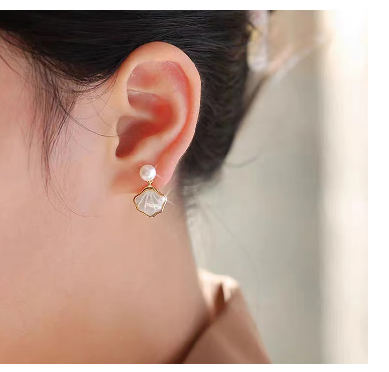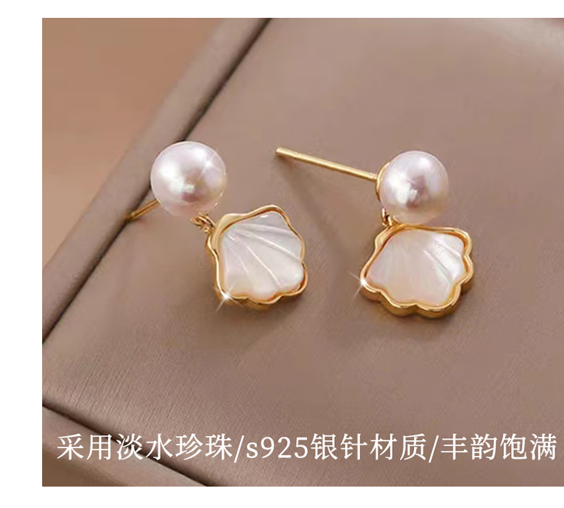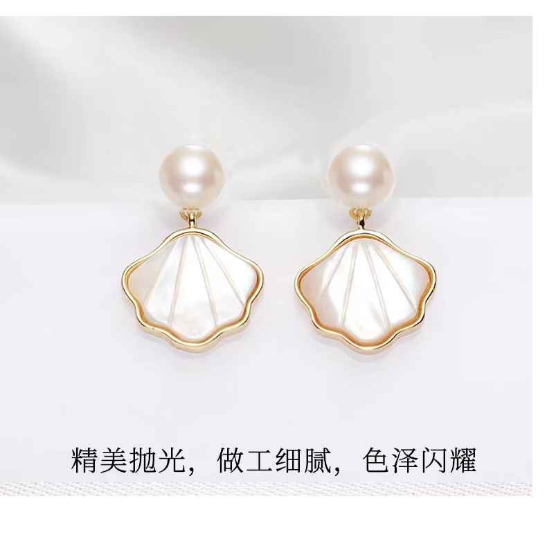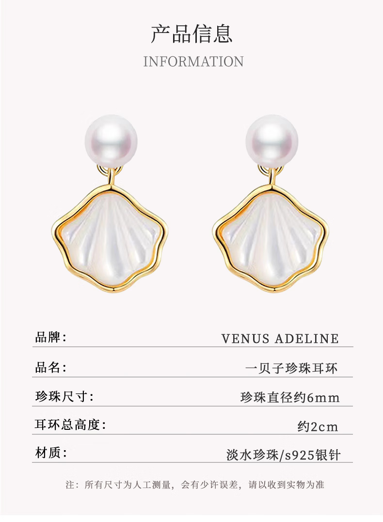 VENUS ADELINE扇形贝壳耳钉女淡水珍珠耳环贝母一贝子学生耳饰女友七夕生日礼物 金色送女友老婆妈妈闺蜜实用礼物