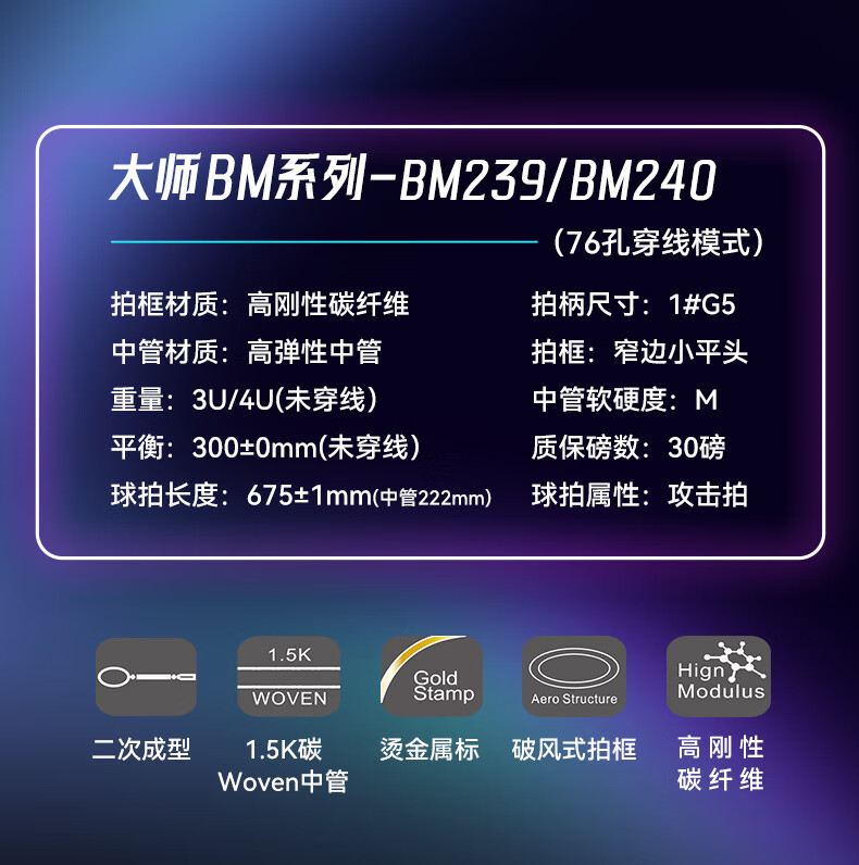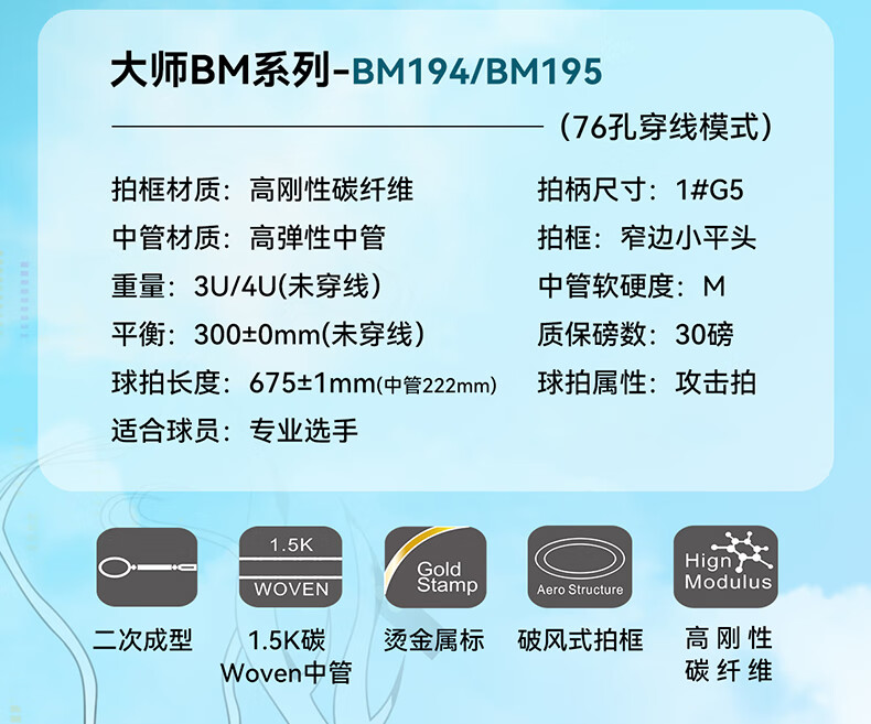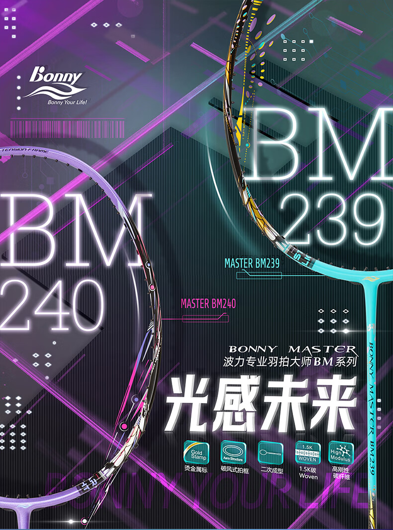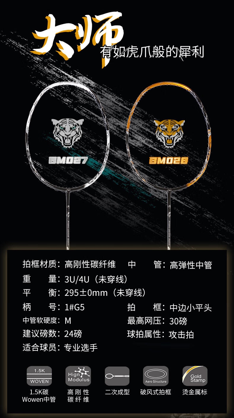 波力(Bonny)大师BM027-028青龙白龙全碳素进攻破风高弹中管进阶高手羽毛球拍 BM195/2BD2161040E 要空拍请留言 3U