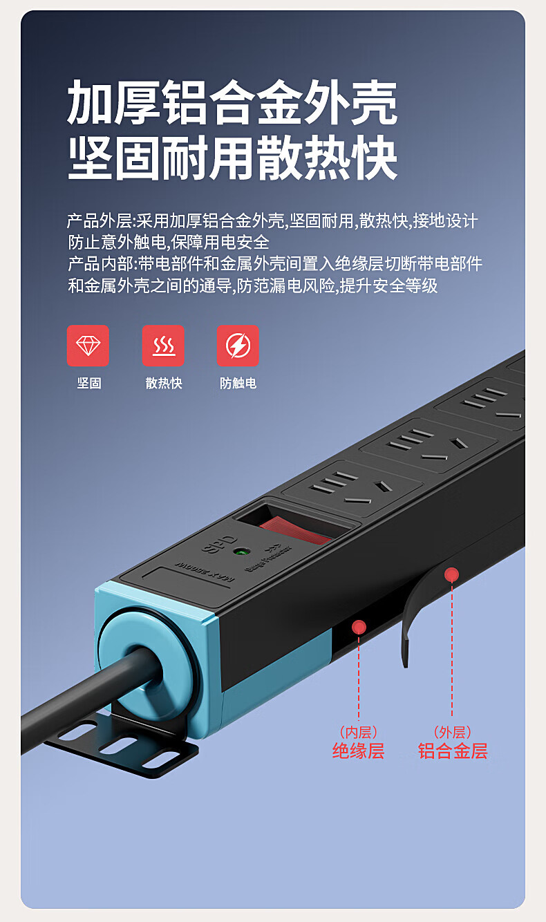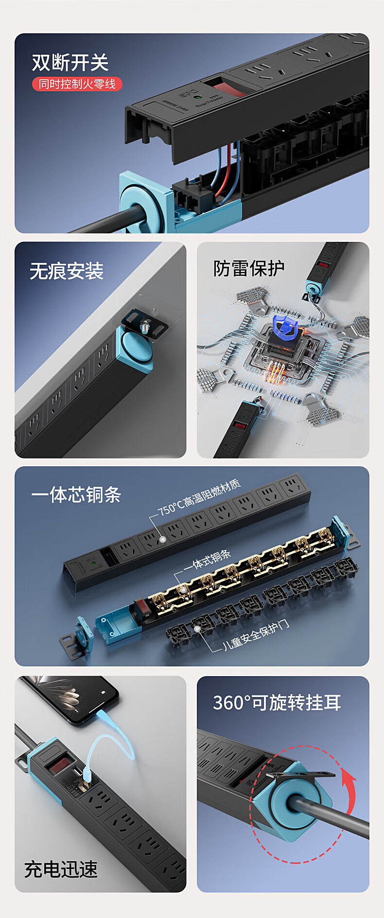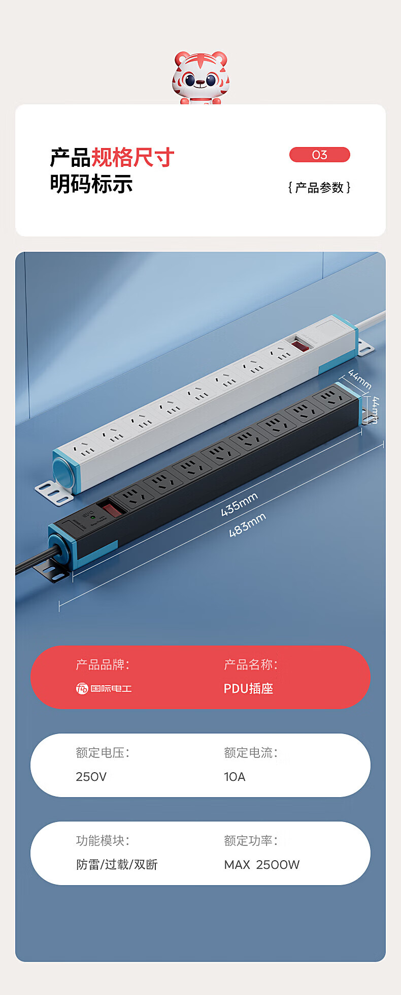 国际电工桌面PDU插座机柜电竞插排过载保护八位五孔电源插线板家用桌下带线插板 【普通单段】八位总控-1平方1.8米线(黑色)
