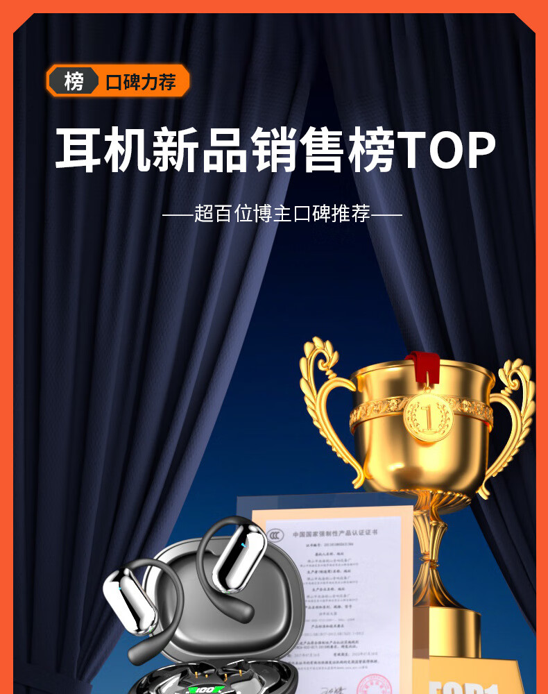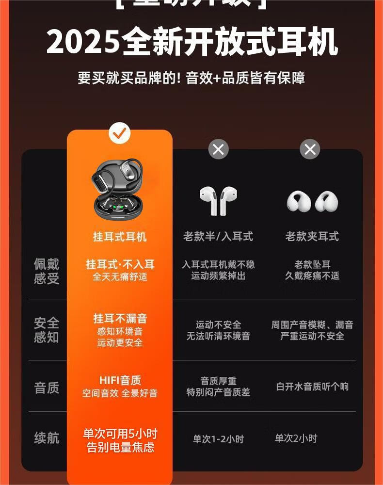 炽垚【柏林之声 | 新款顶配】真无线蓝牙耳机挂耳式2025最新款超长续航骨传导降噪不入耳开放运动跑步 【金牌续航】 【杜比全景音效 | 通话降噪】