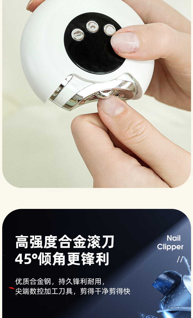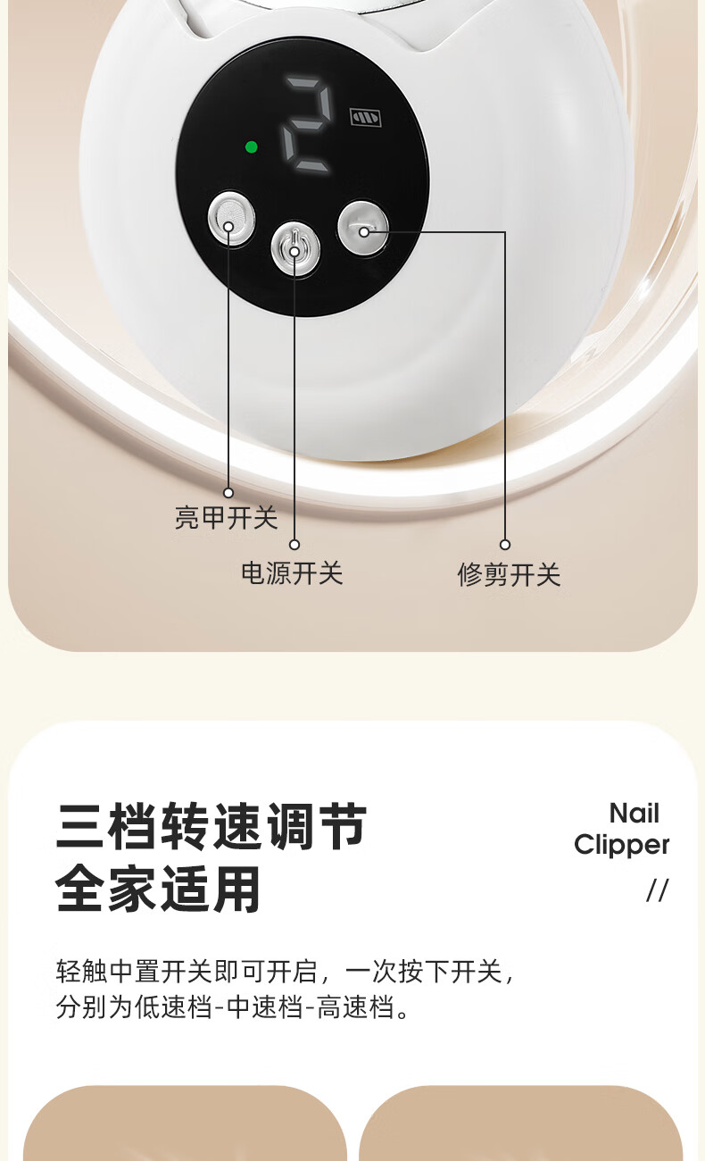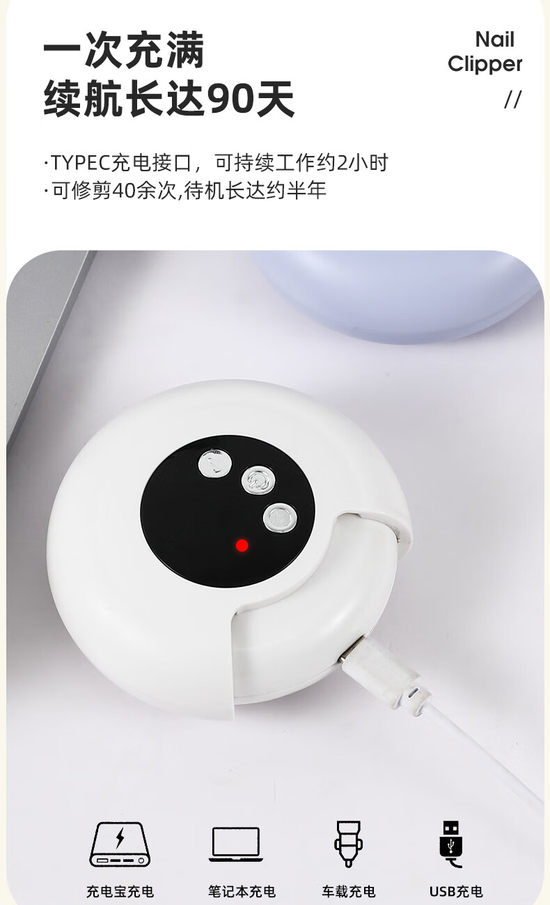 品质电动指甲刀磨甲器家用全自动剪指甲器便携打磨抛光亮甲美甲仪工具 丁香紫(升级三挡+2个备用美甲头)