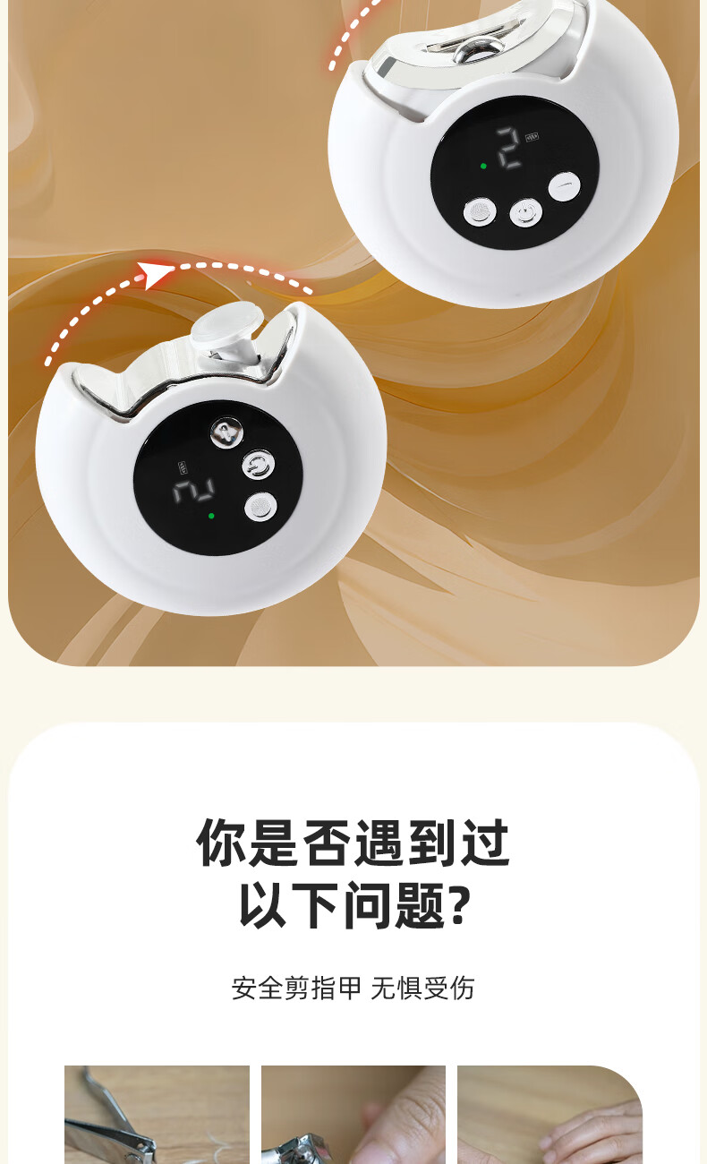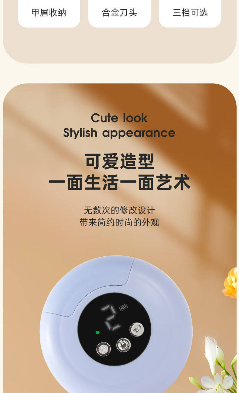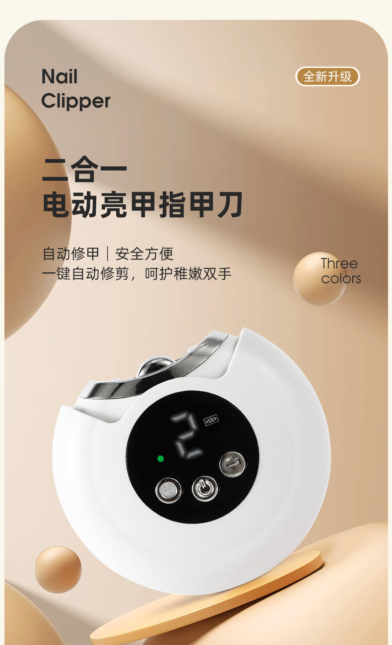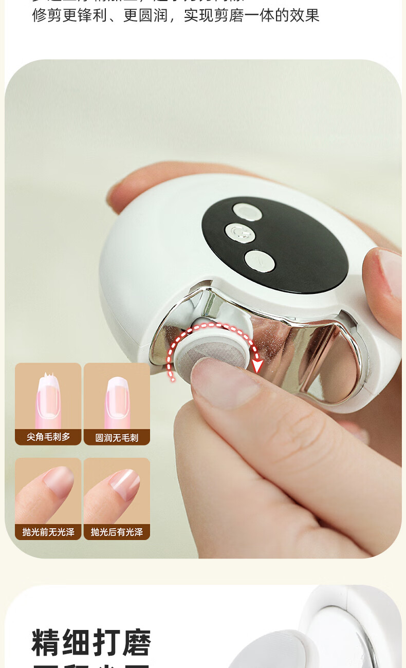 品质电动指甲刀磨甲器家用全自动剪指甲器便携打磨抛光亮甲美甲仪工具 丁香紫(升级三挡+2个备用美甲头)