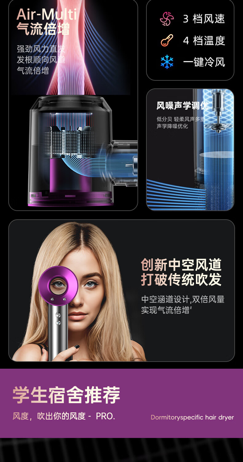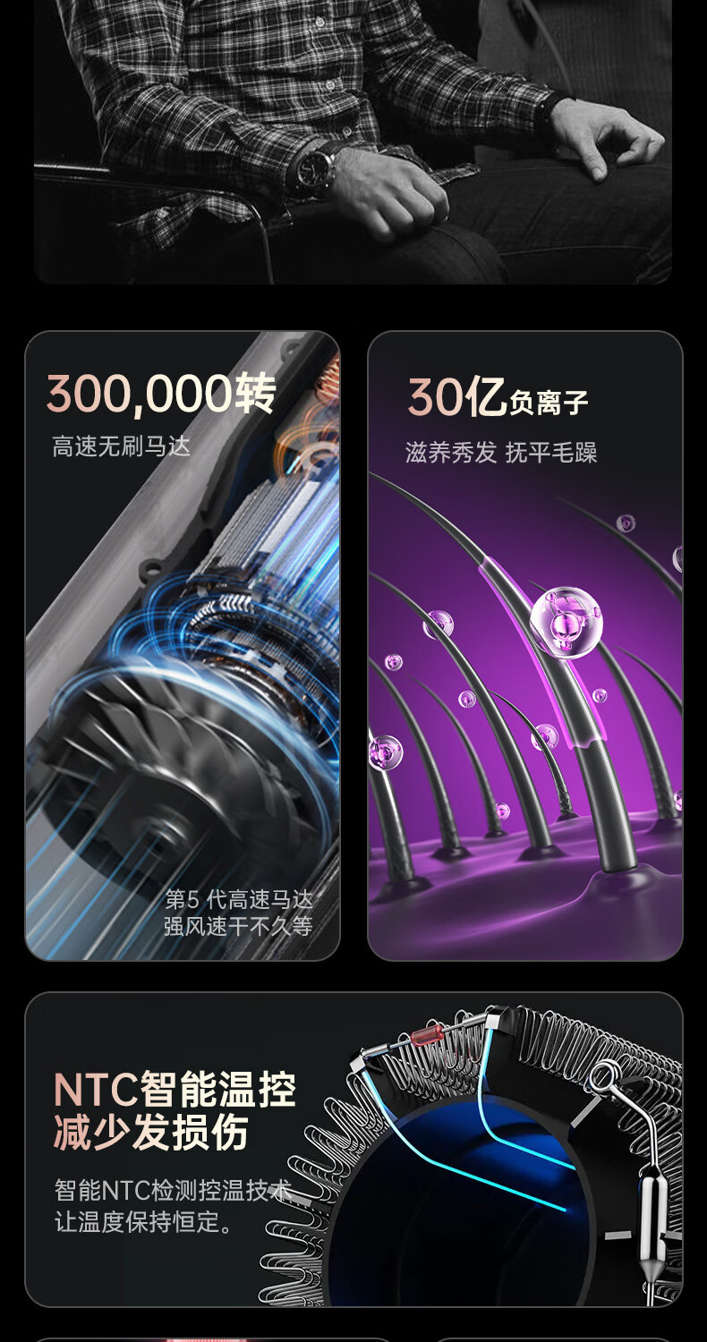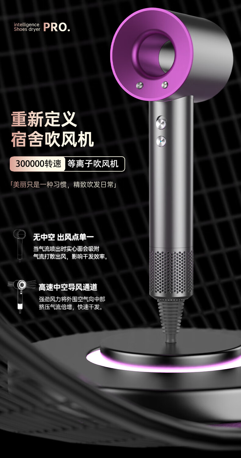 华强北高速吹风机800w宿舍大风力负离子护发速干大学生家用电吹风 高冷灰-30万转速-30亿负离子-五风嘴+支架 800w(宿舍专用