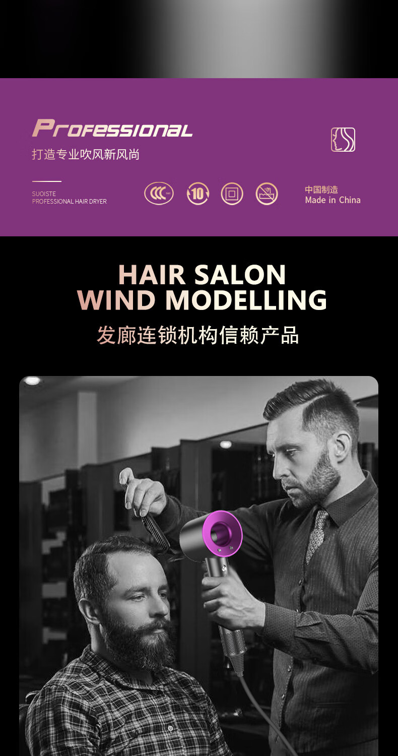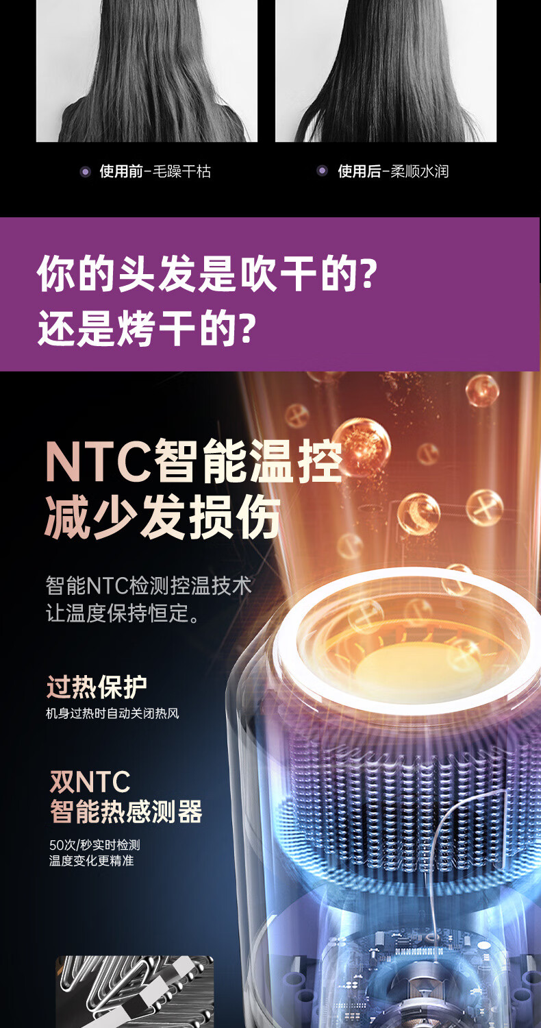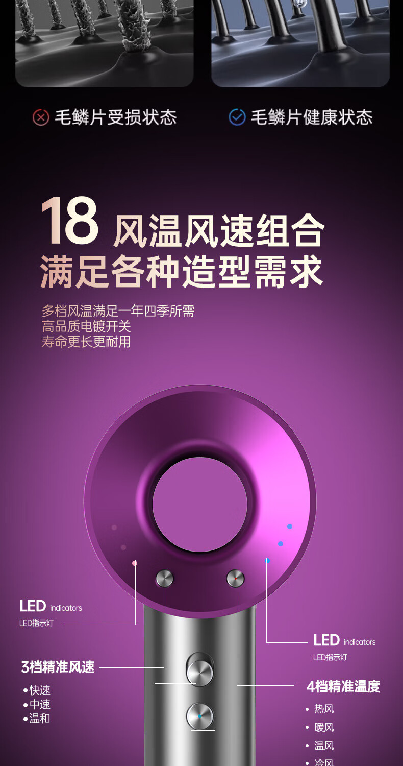 华强北高速吹风机800w宿舍大风力负离子护发速干大学生家用电吹风 高冷灰-30万转速-30亿负离子-五风嘴+支架 800w(宿舍专用